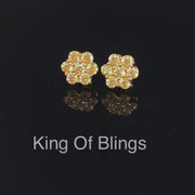 King of Bling's 4.12ct Cubic Zirconia 925 Yellow Silver Women's & Men's Hip Hop Flower Earrings
