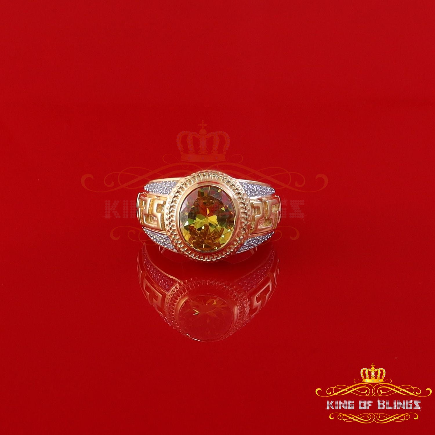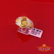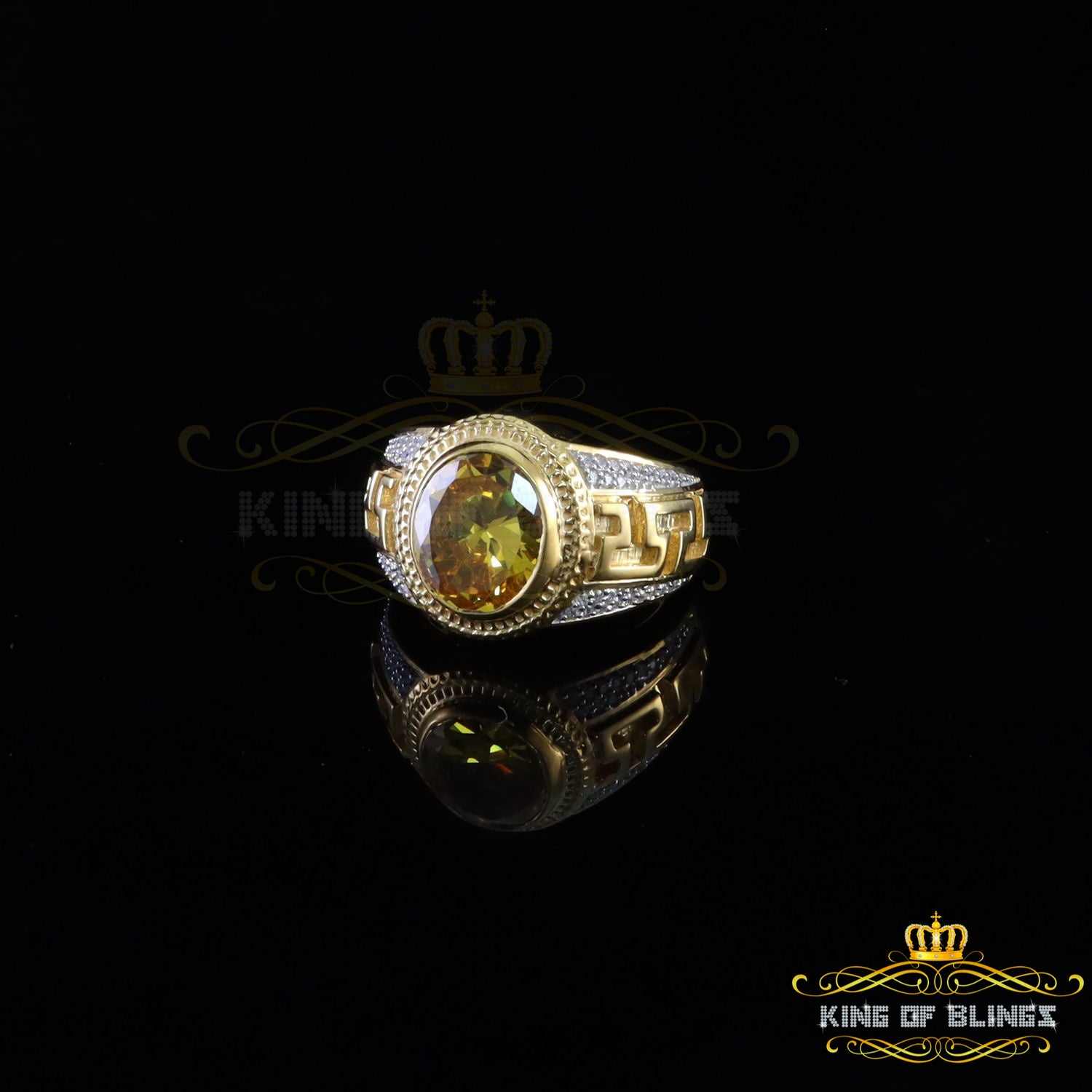 King Of Bling's 8.10ct Yellow Silver Oval Cubic Zirconia Men's Adjustable Ring From SZ 9 to 10