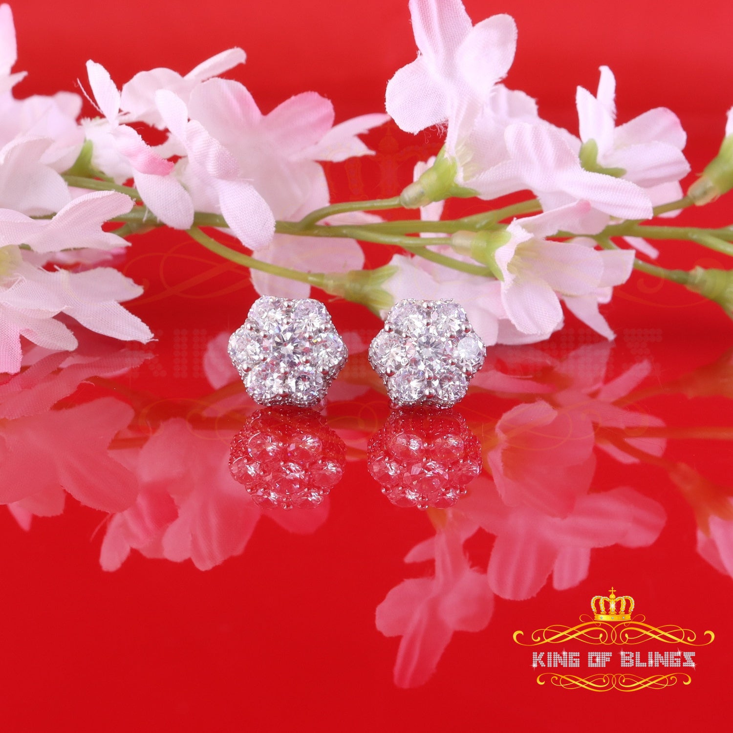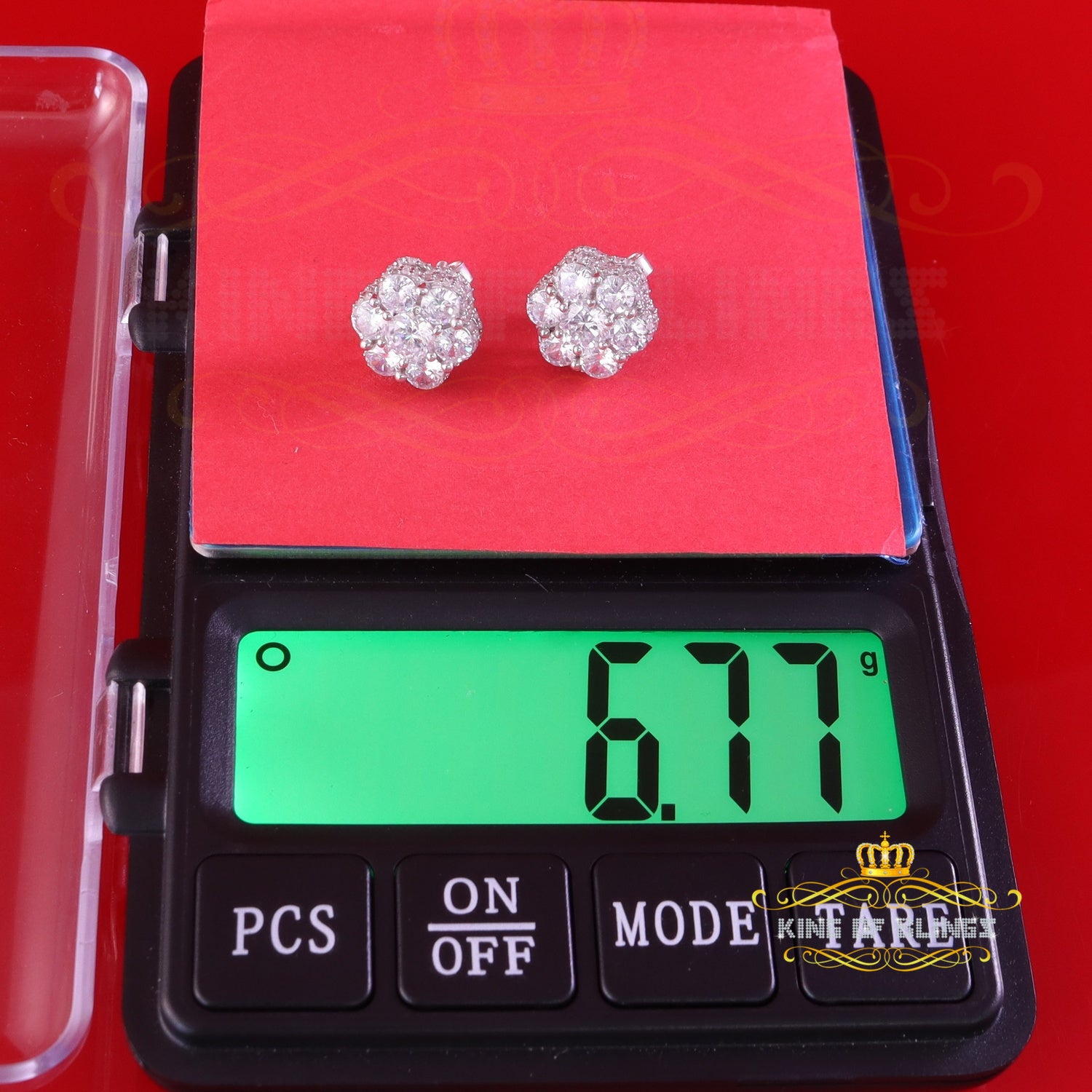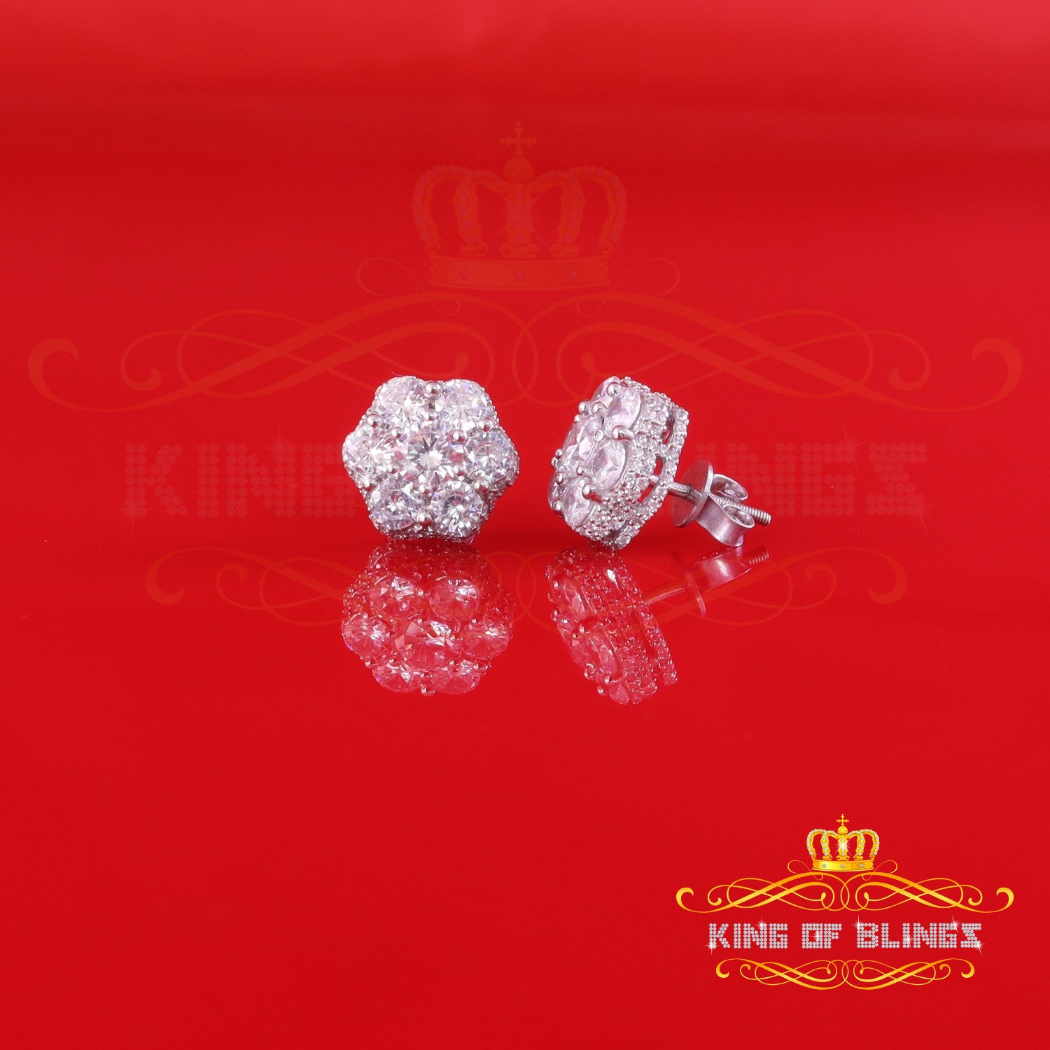 King of Bling's 8.72ct Cubic Zirconia 925 White Silver Sterling Hip Hop Floral Women's Earrings