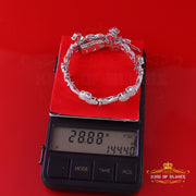 Introducing King Of Blings exquisite Silver White Moissanite Bracelete, This new Cross Bracelete is a stylish unisex piece made of Silve White Moissanite Bracelete with 28.88gm With timeless beauty and exceptional quality, these bracelete captivate hearts. The glistening Moissanite stones of ct & Clarity & Color emit a radiant sparkle. Nickel-free and rhodium-plated for durability, they are perfect for all genders and ages. Symbolizing April's birthstone, they make a meaningful gift. Versatile for any occasion, they arrive brand new in original packaging, promising an enchanting experience.