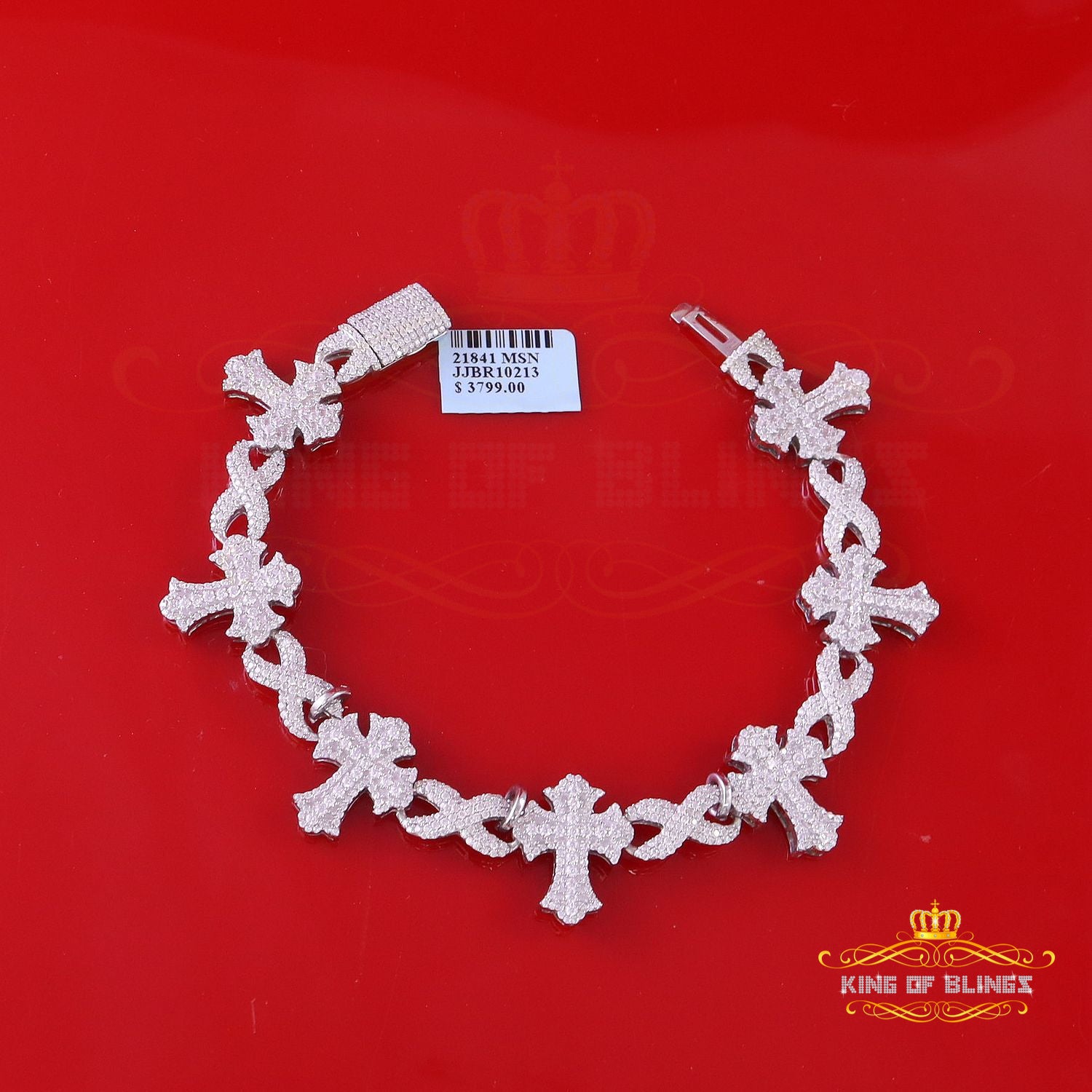 King Of Bling's 925 D'Moissanite Silver 8.00CT White Victoria Cross Infinity Bracelet Men/Women