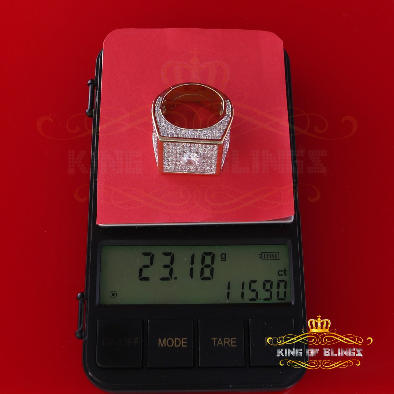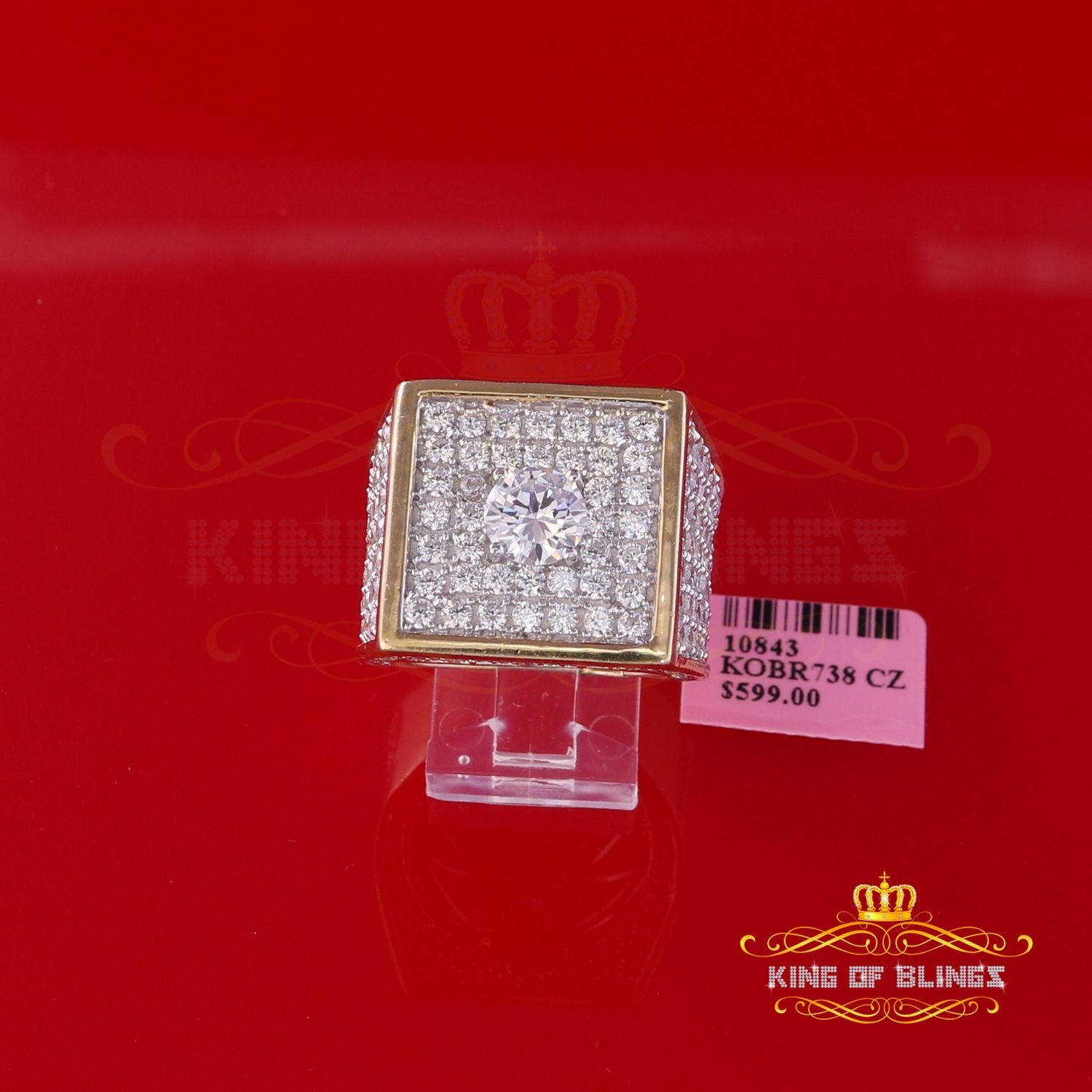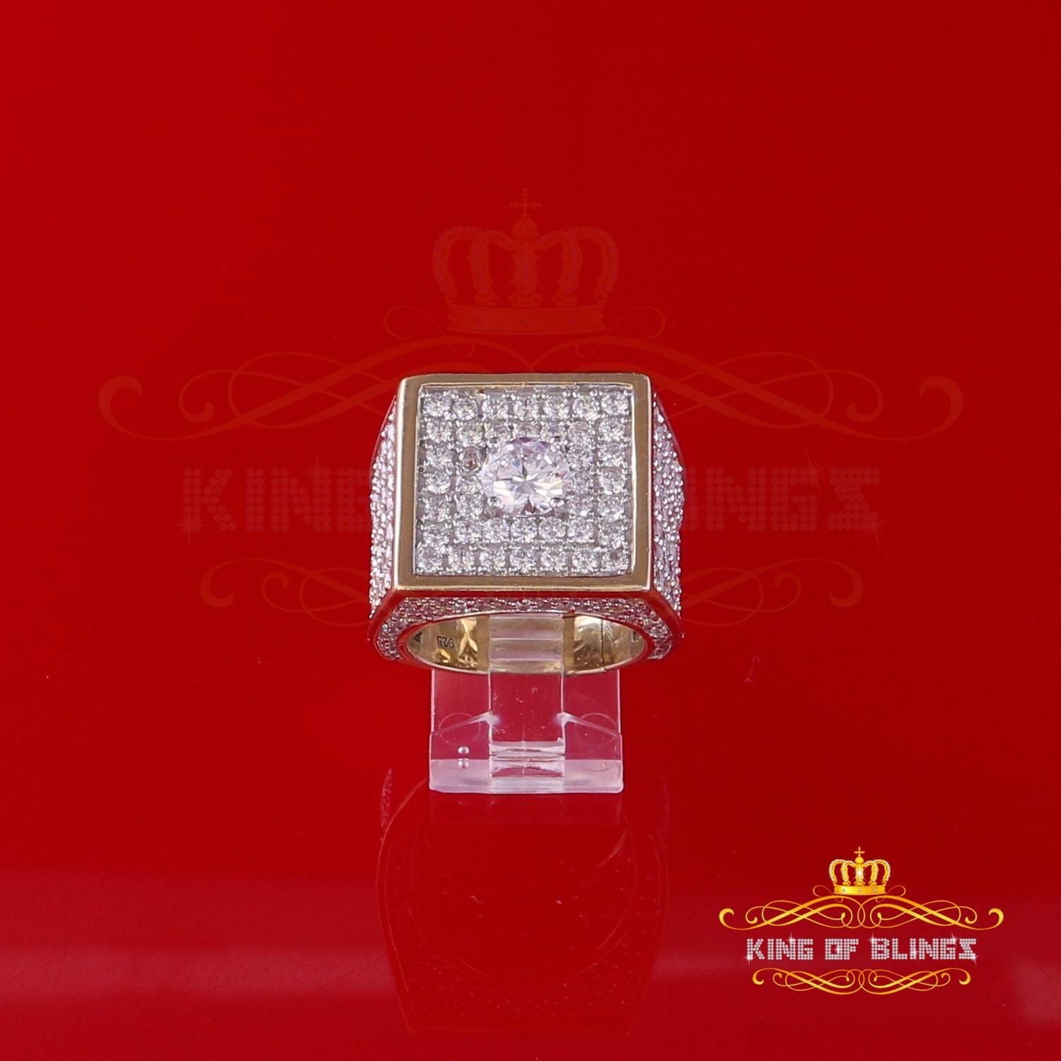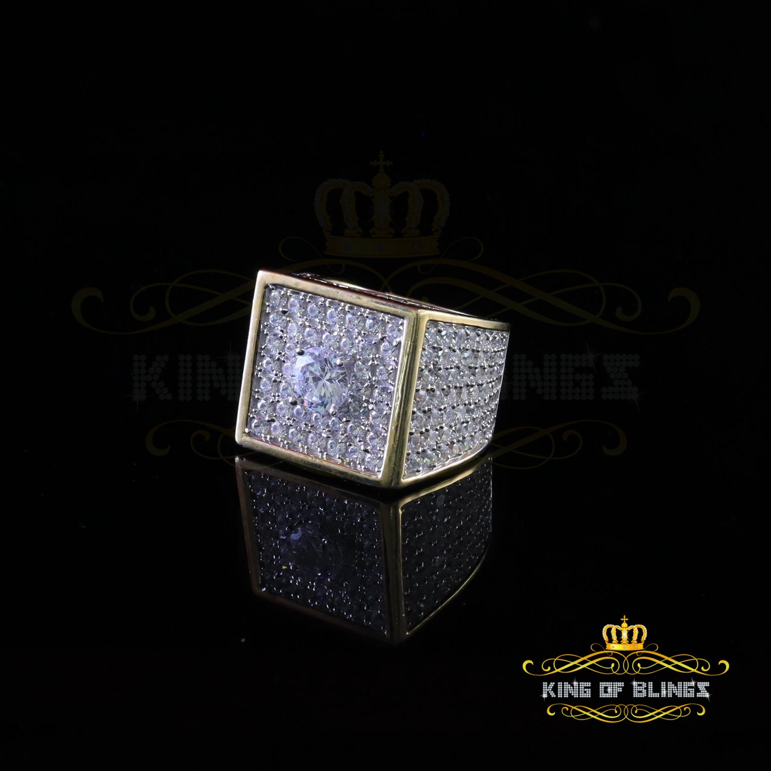King Of Bling's 925 Silver 19.00ct Yellow Cubic Zirconia Men's Adjustable Ring From SZ 8 to 10