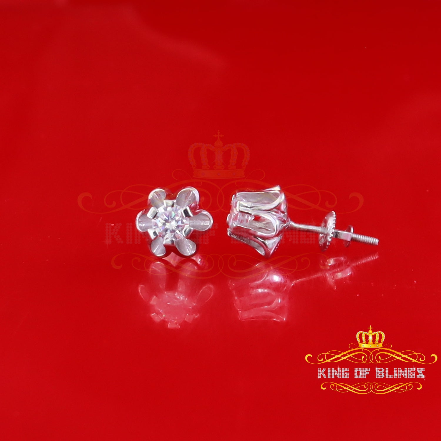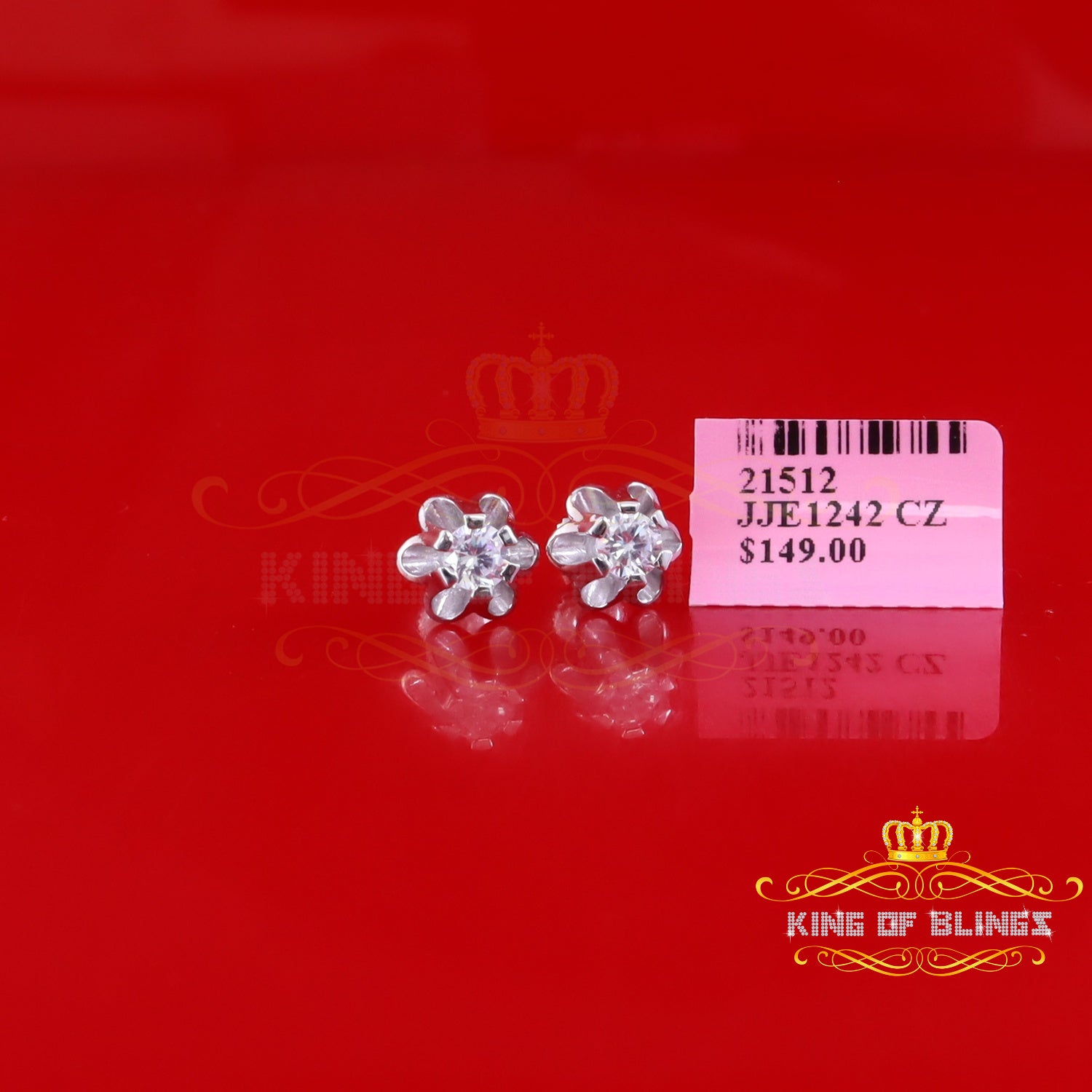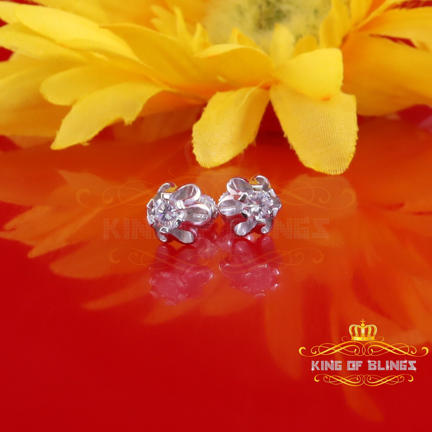 King of Bling's 925 Silver Cubic Zirconia White Round Shape Buttercup Stud 0.50ct Earrings Women