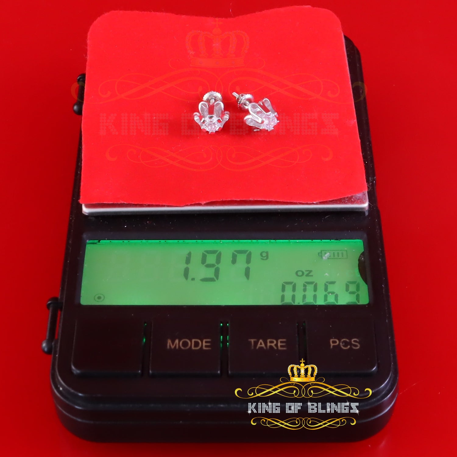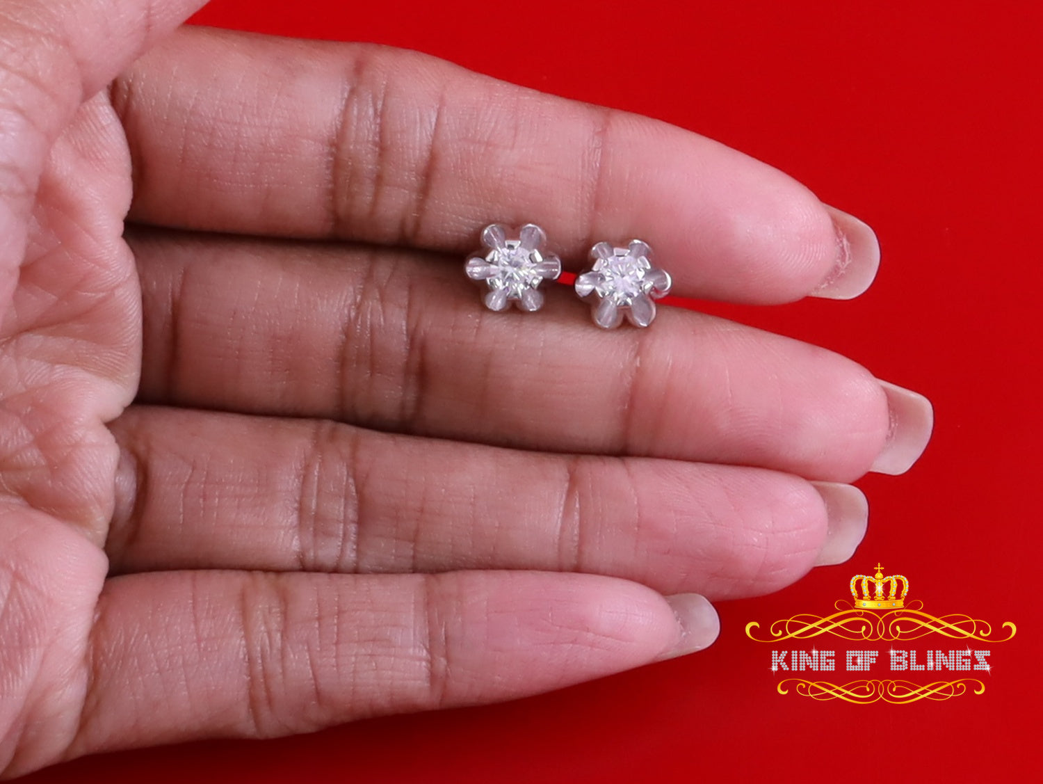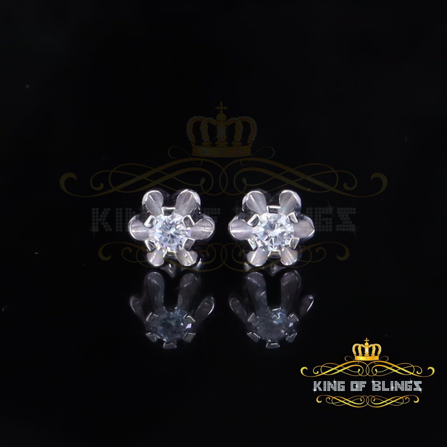King of Bling's 925 Silver Cubic Zirconia White Round Shape Buttercup Stud 0.50ct Earrings Women