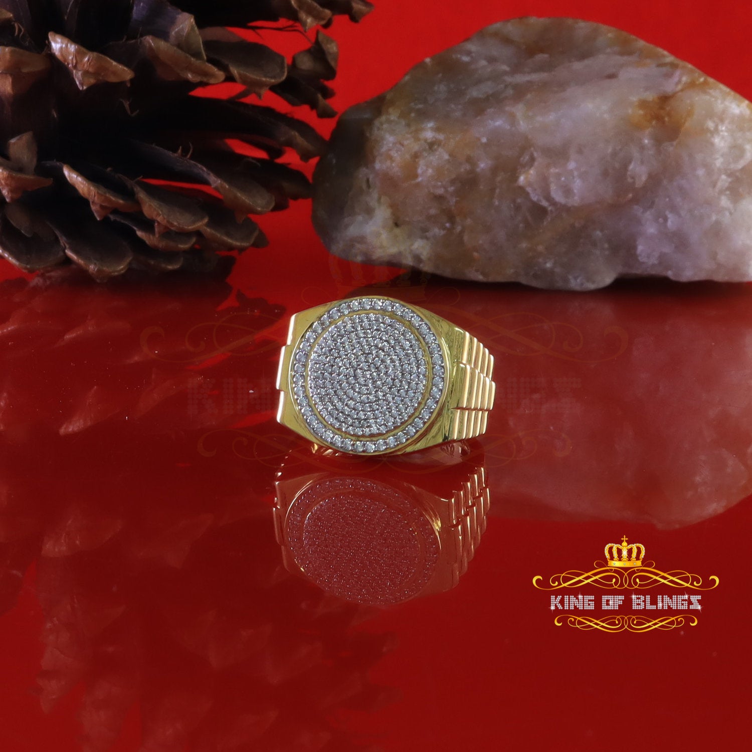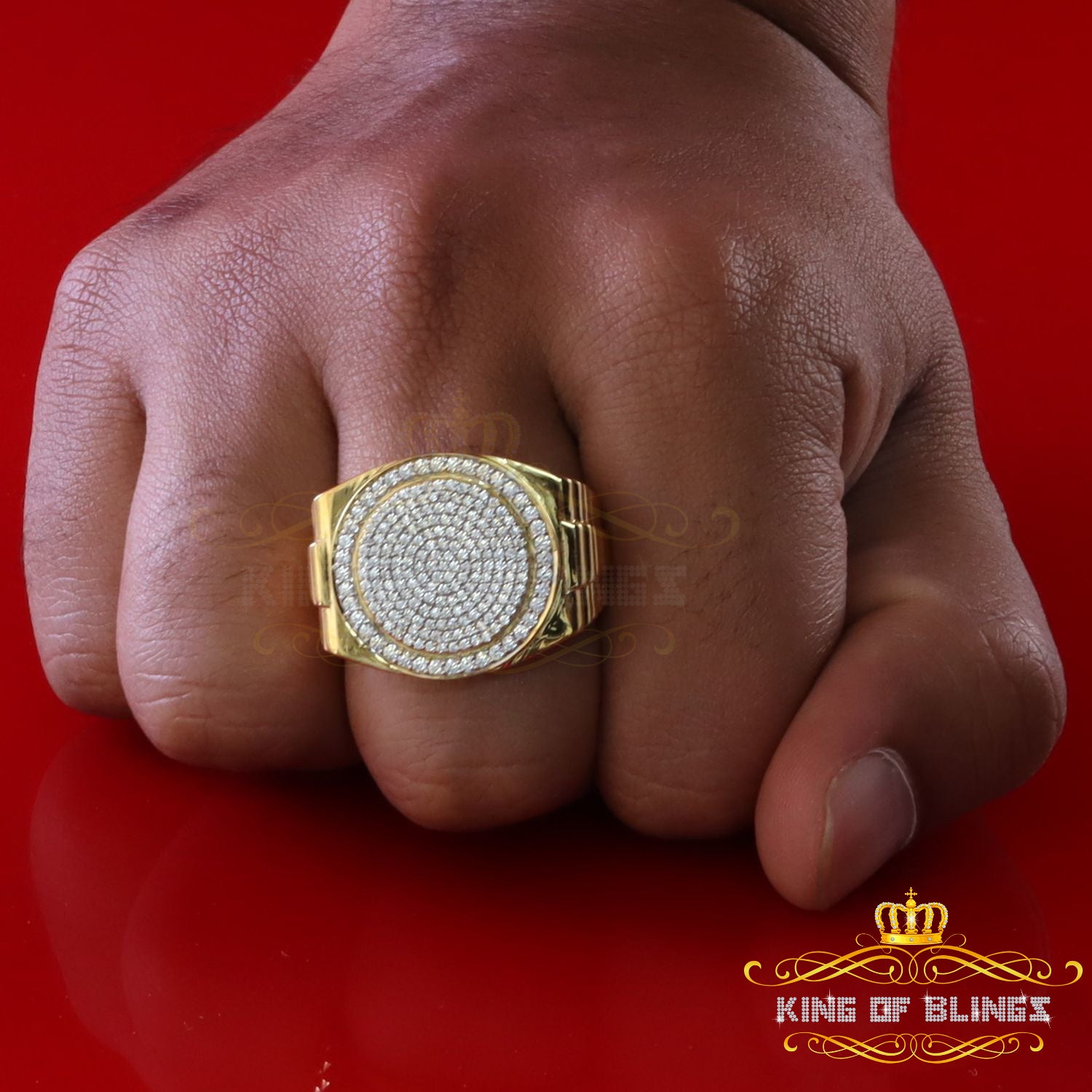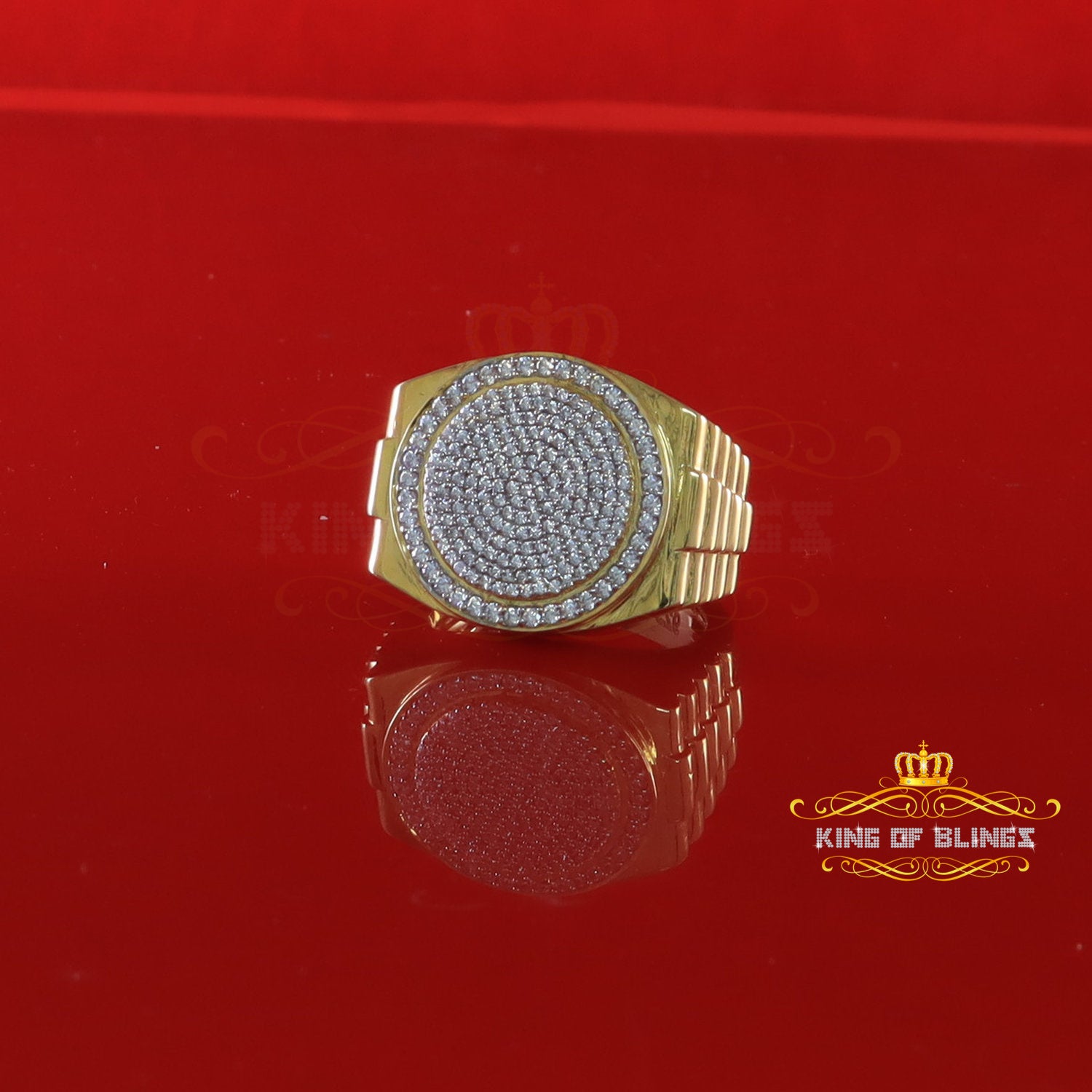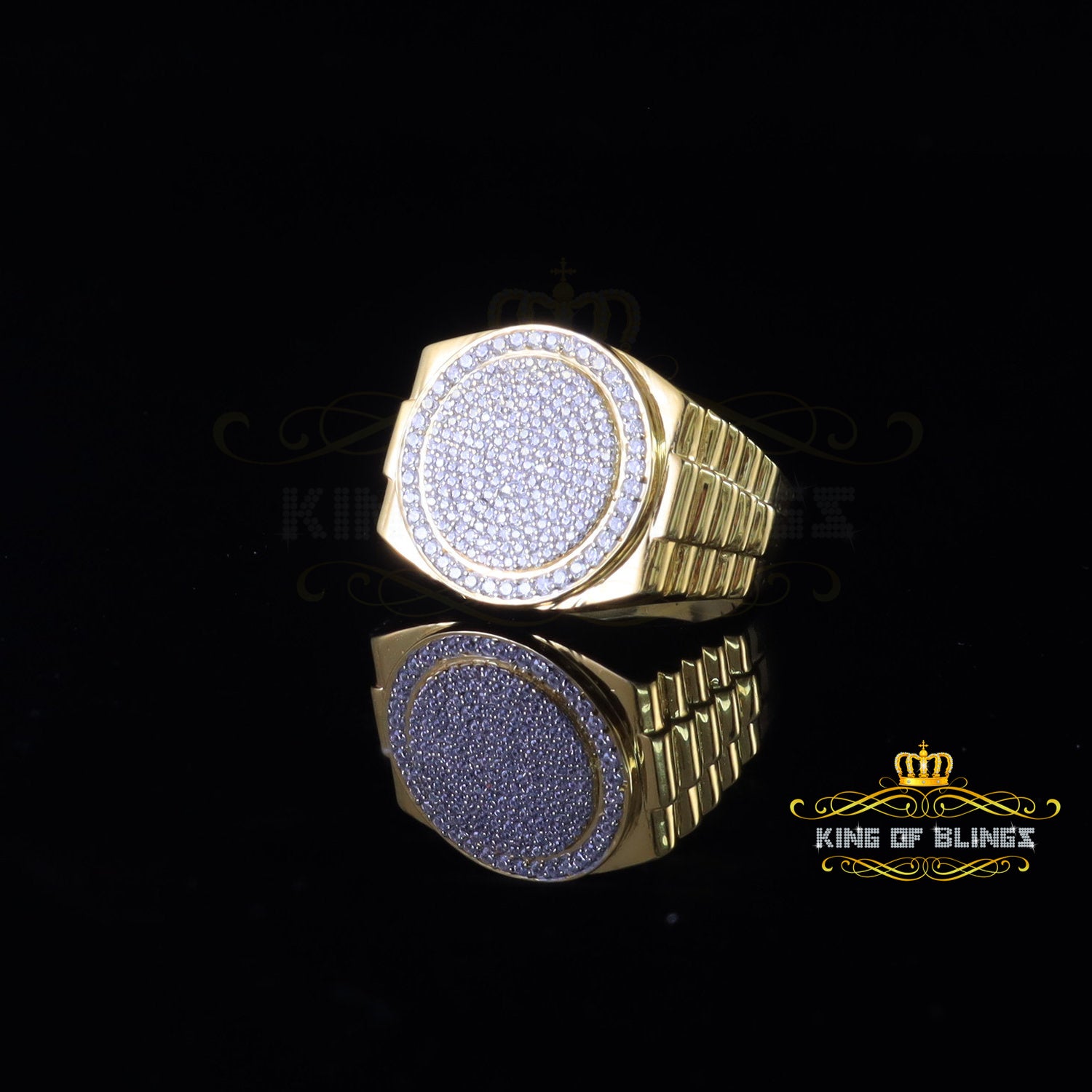 King Of Bling's 925 silver Jewelry yellow 2.50CT CZ Wide Round Men Adjustable Ring Size 11 to 13