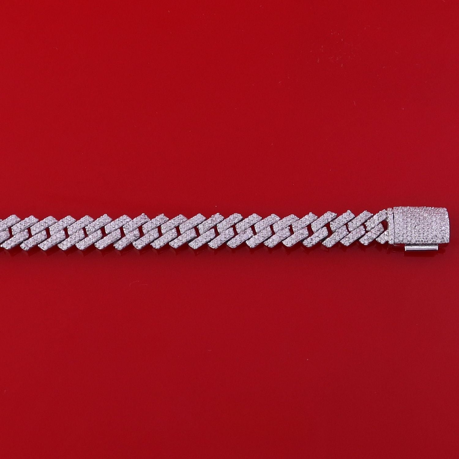 Introducing King Of Blings exquisite Silver White Moissanite Bracelete, This new Cuban Bracelete is a stylish unisex piece made of Silve White Moissanite Bracelete with 16.86gm With timeless beauty and exceptional quality, these bracelete captivate hearts. The glistening Moissanite stones of ct & Clarity & Color emit a radiant sparkle. Nickel-free and rhodium-plated for durability, they are perfect for all genders and ages. Symbolizing April's birthstone, they make a meaningful gift. Versatile for any occasion, they arrive brand new in original packaging, promising an enchanting experience.