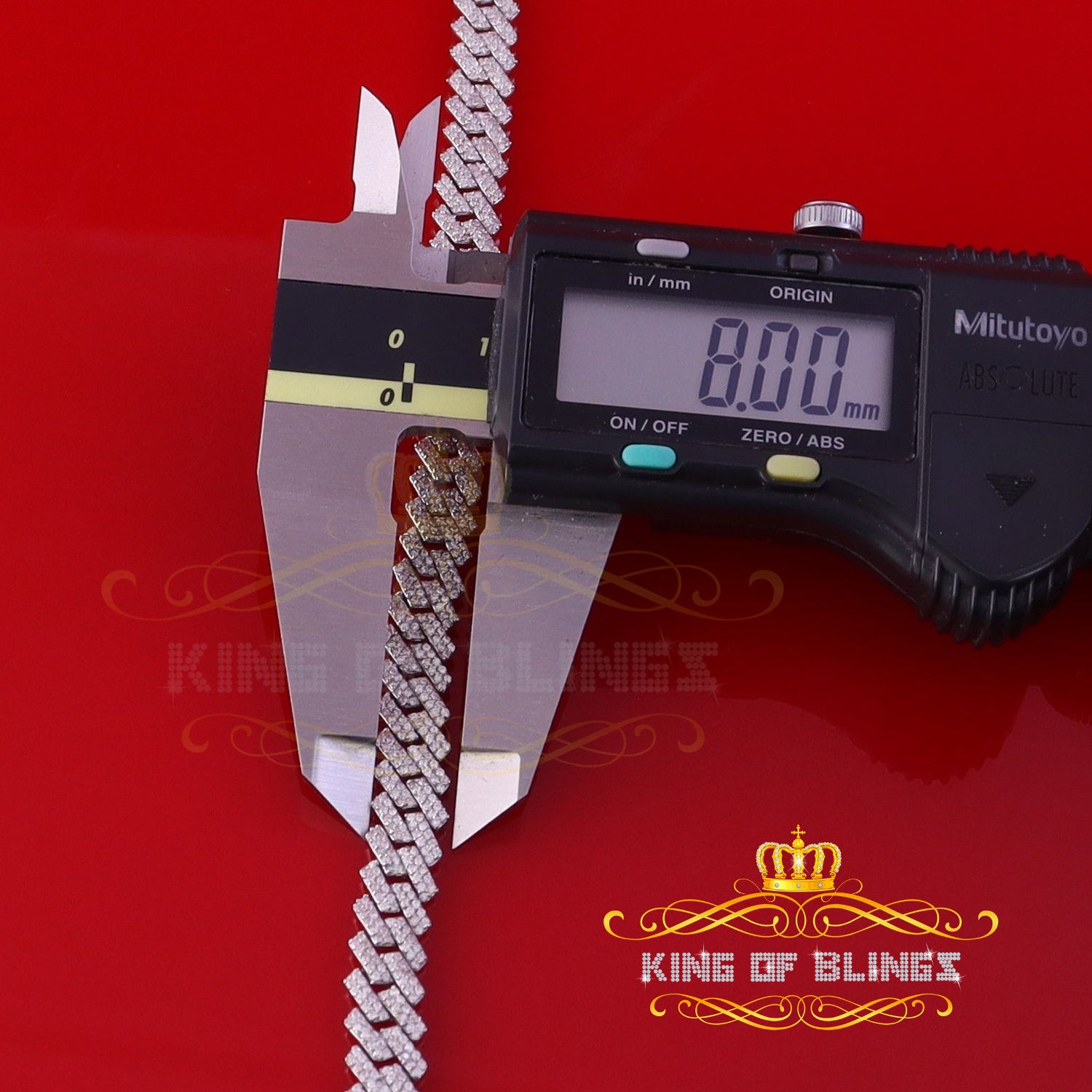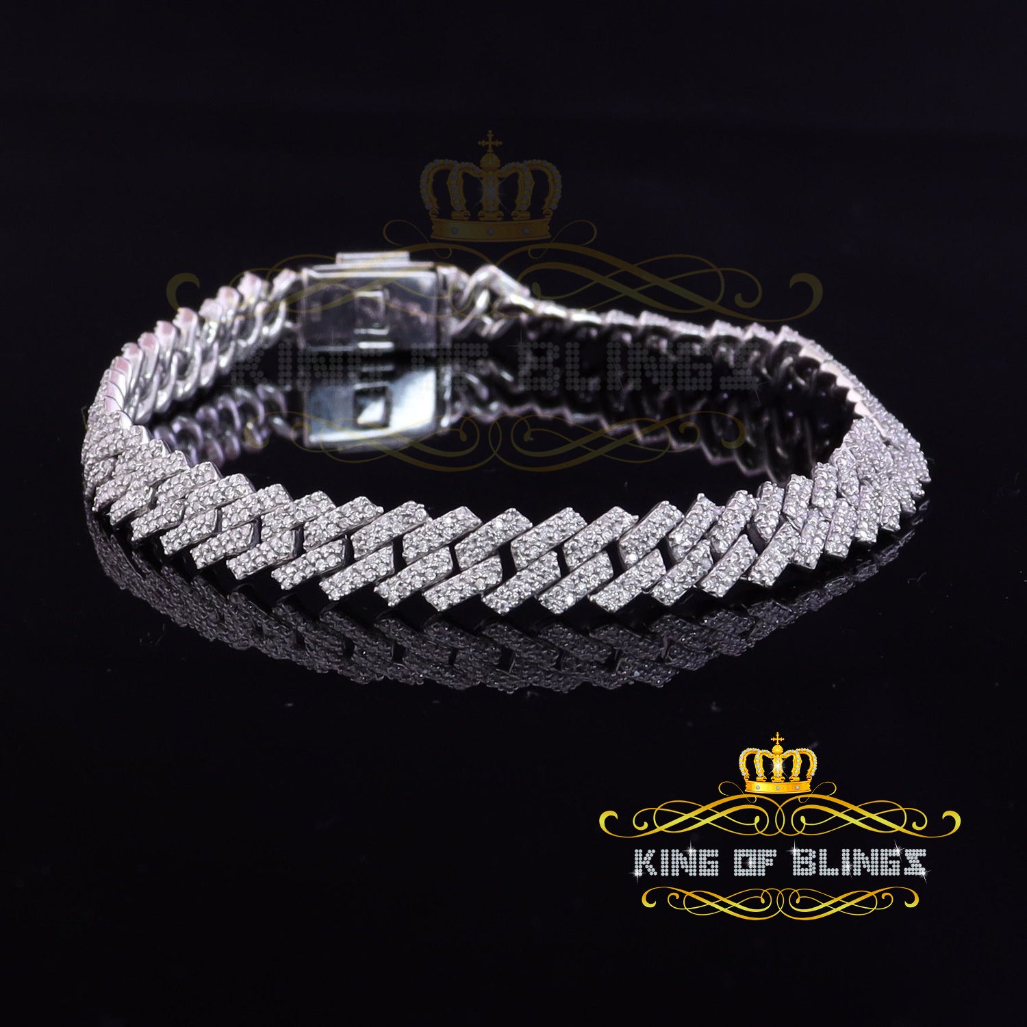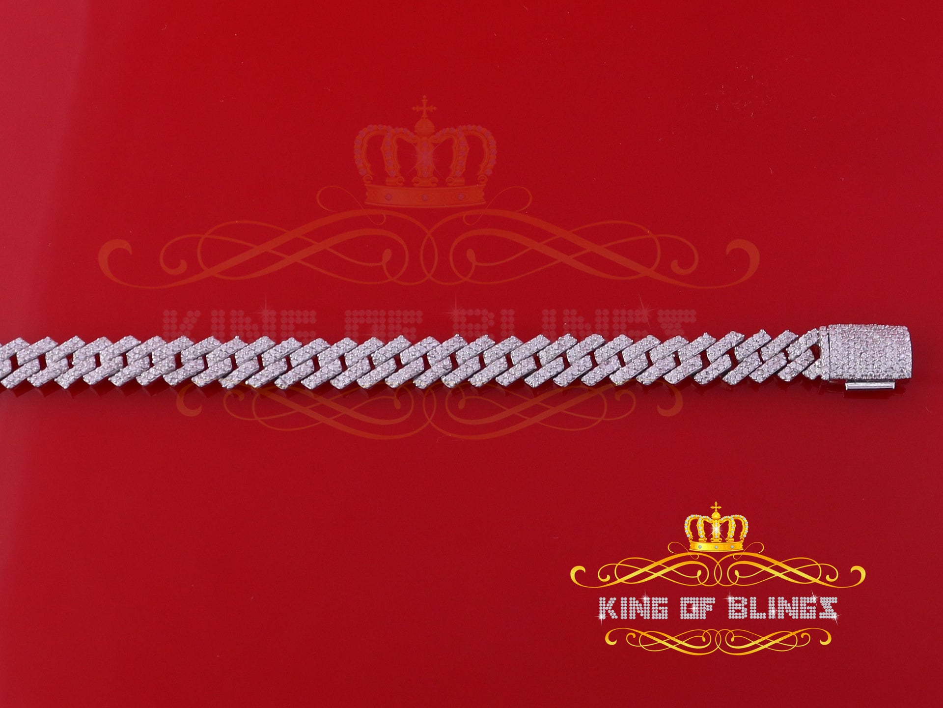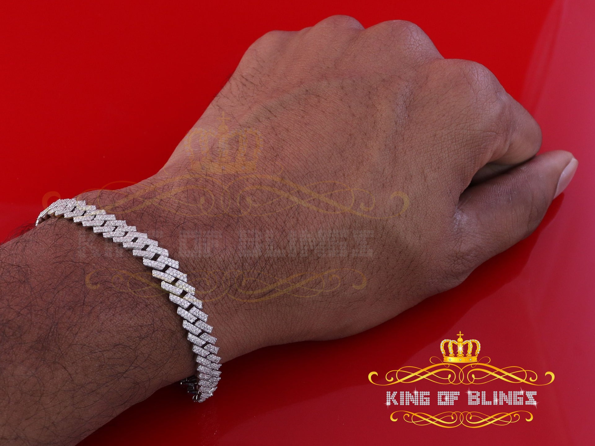 King Of Bling's 925 Silver White Cuban Moissanite Men's Bracelet Wdth 8mm Length SZ 8.5inch Long