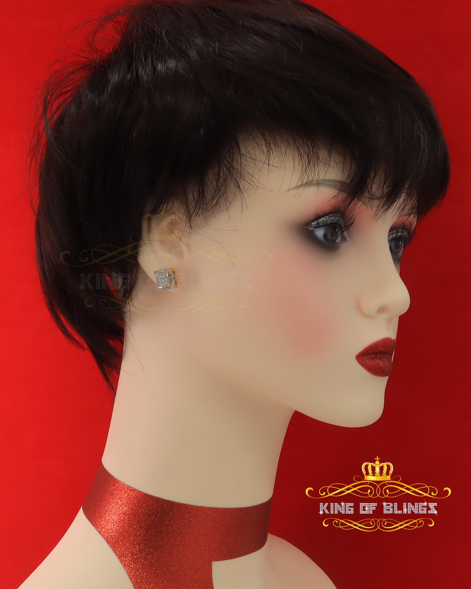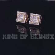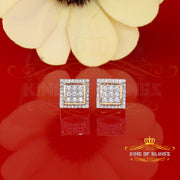 King of Bling's 925 Silver Yellow Elegant Square Screw Back 0.99ct Cubic Zirconia Women Earrings