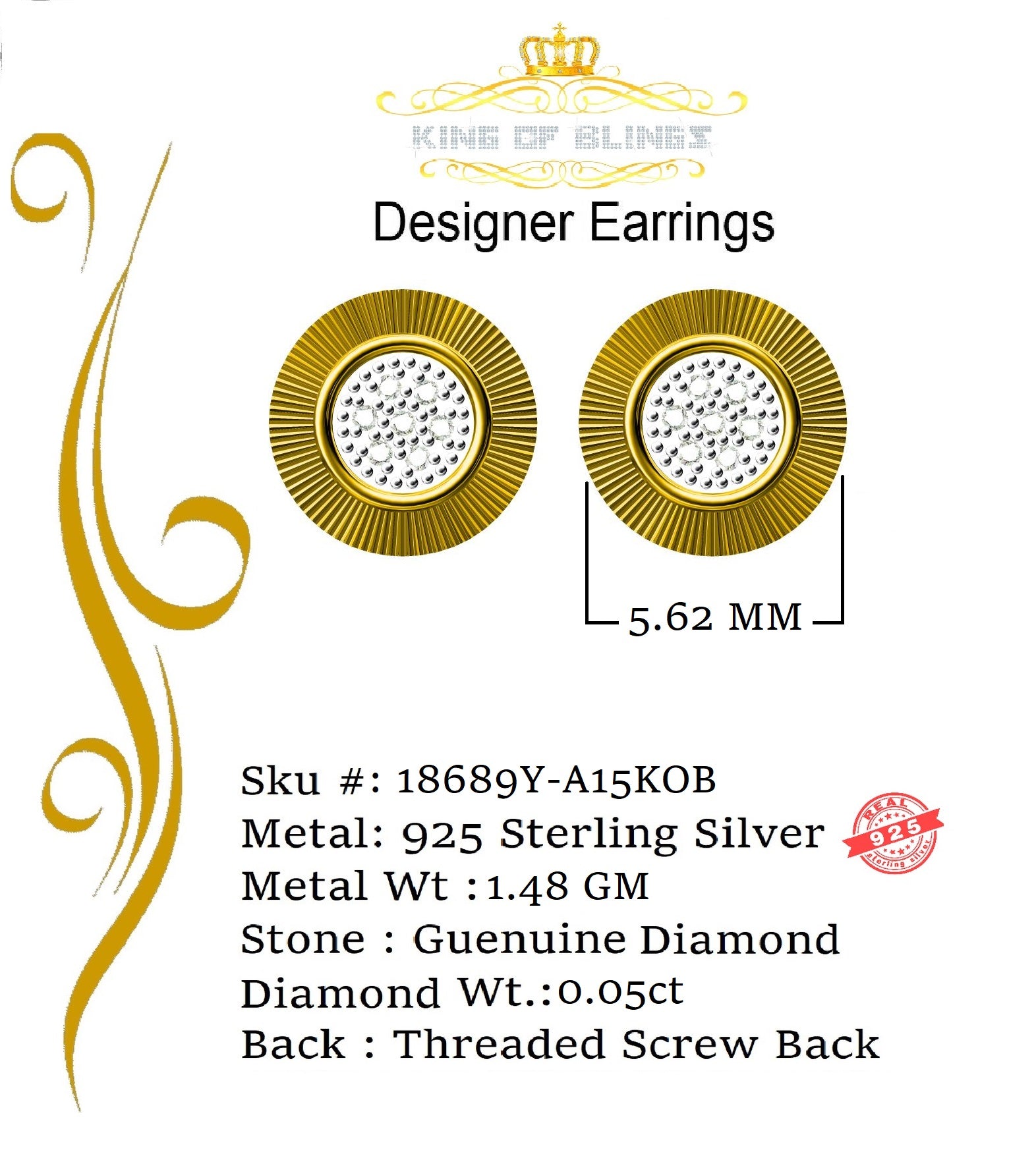 King of Blings-925 Sterling Silver 0.05ct Diamond For Women's/ Men's Yellow Stud Round Earrings