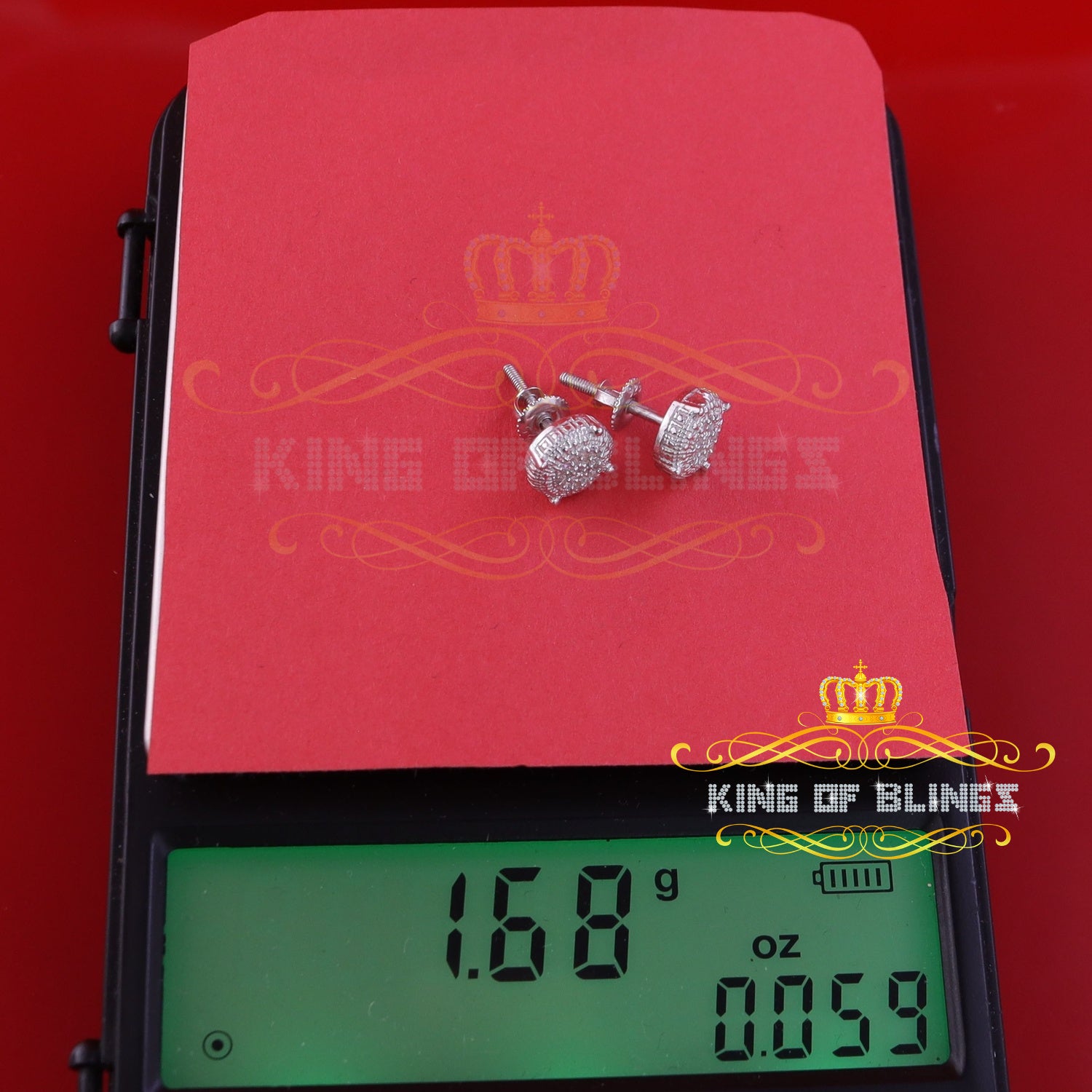 Presented as new with tags in the original packaging, these Silver Diamond earrings are ready to add a touch of sophistication to any outfit, making them a perfect choice for those seeking a combination of style and quality appealing to both men and women with their captivating sparkle. rest assured that the "King Of Blings" brand guarantees exceptional craftsmanship and materials. these womens stud earrings make a perfect gift or a stylish addition to your own jewelry collection,