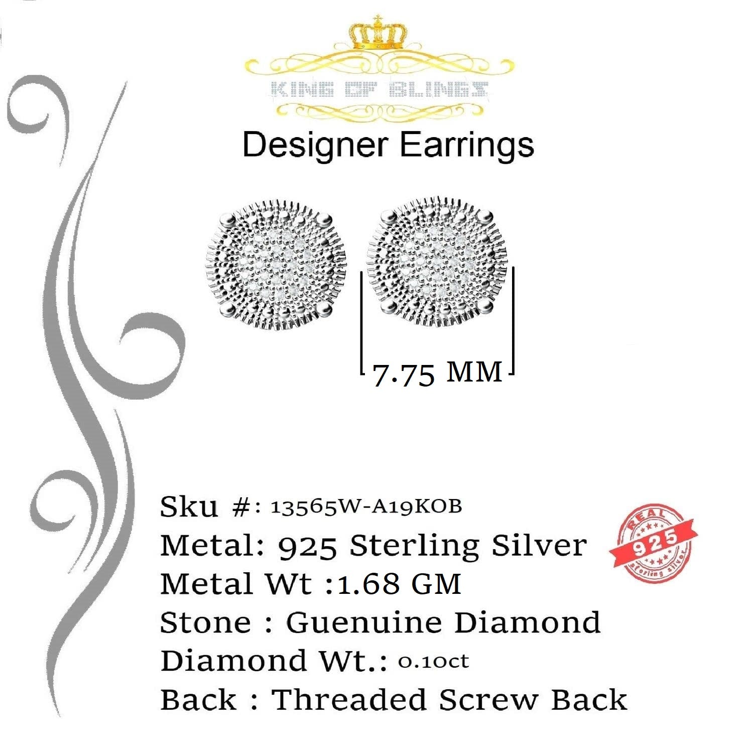 King Of Bling's 925 Sterling Silver 0.10ct Diamond For Women's & Men's White Stud Round Earring