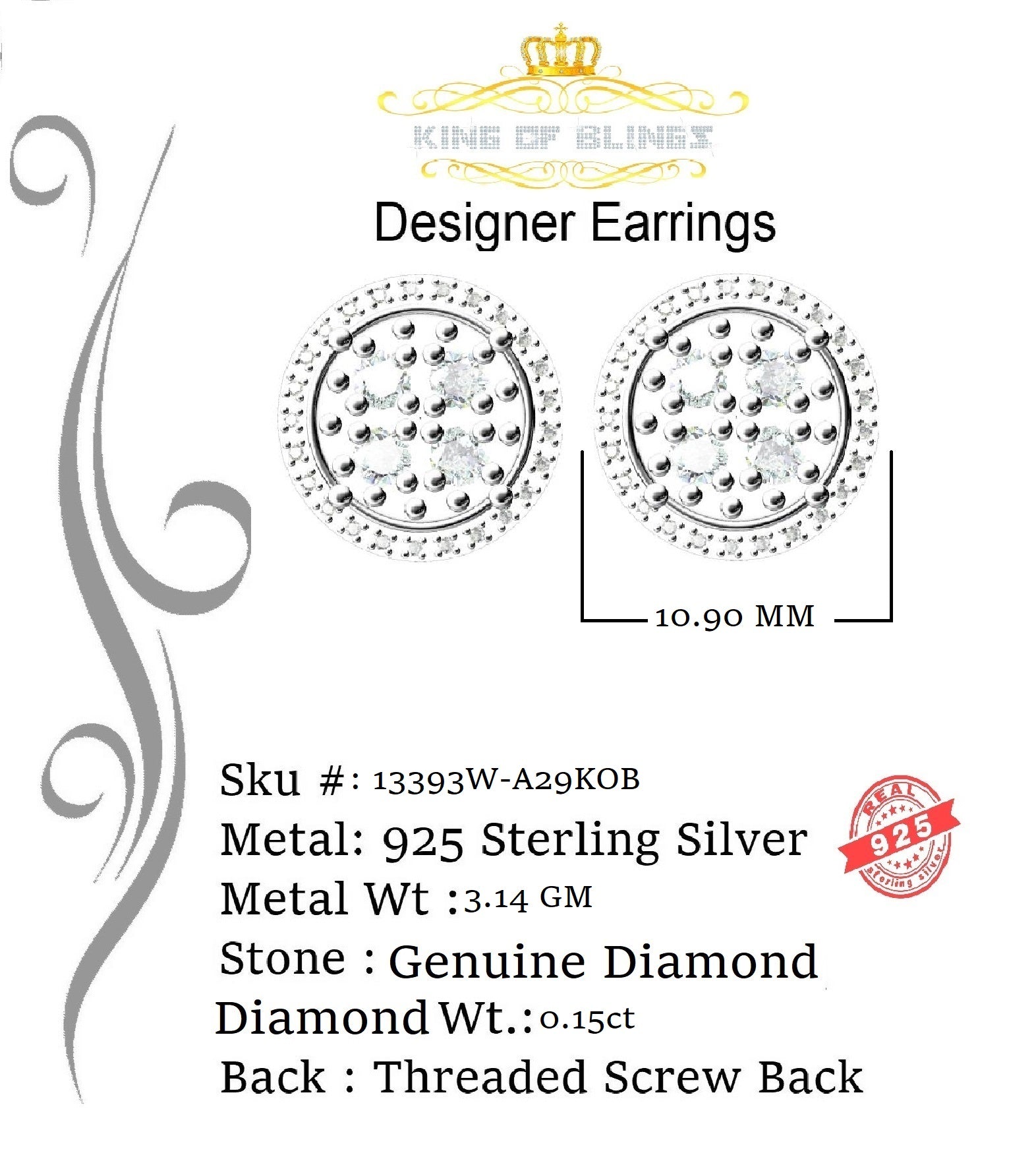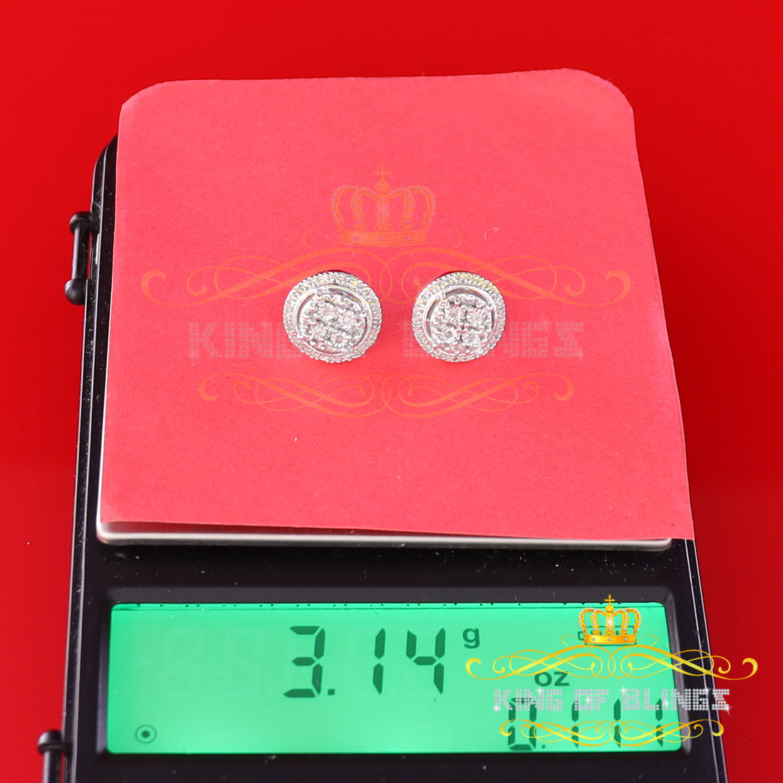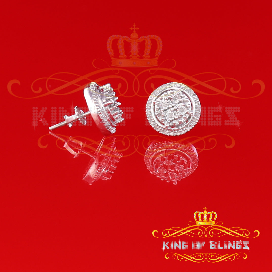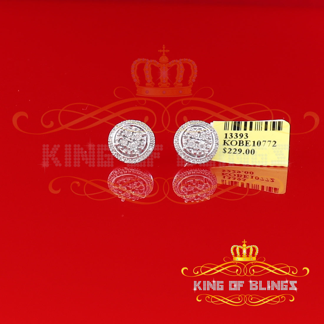 Presented as new with tags in the original packaging, these Silver Diamond earrings are ready to add a touch of sophistication to any outfit, making them a perfect choice for those seeking a combination of style and quality appealing to both men and women with their captivating sparkle. rest assured that the "King Of Blings" brand guarantees exceptional craftsmanship and materials. these womens stud earrings make a perfect gift or a stylish addition to your own jewelry collection,