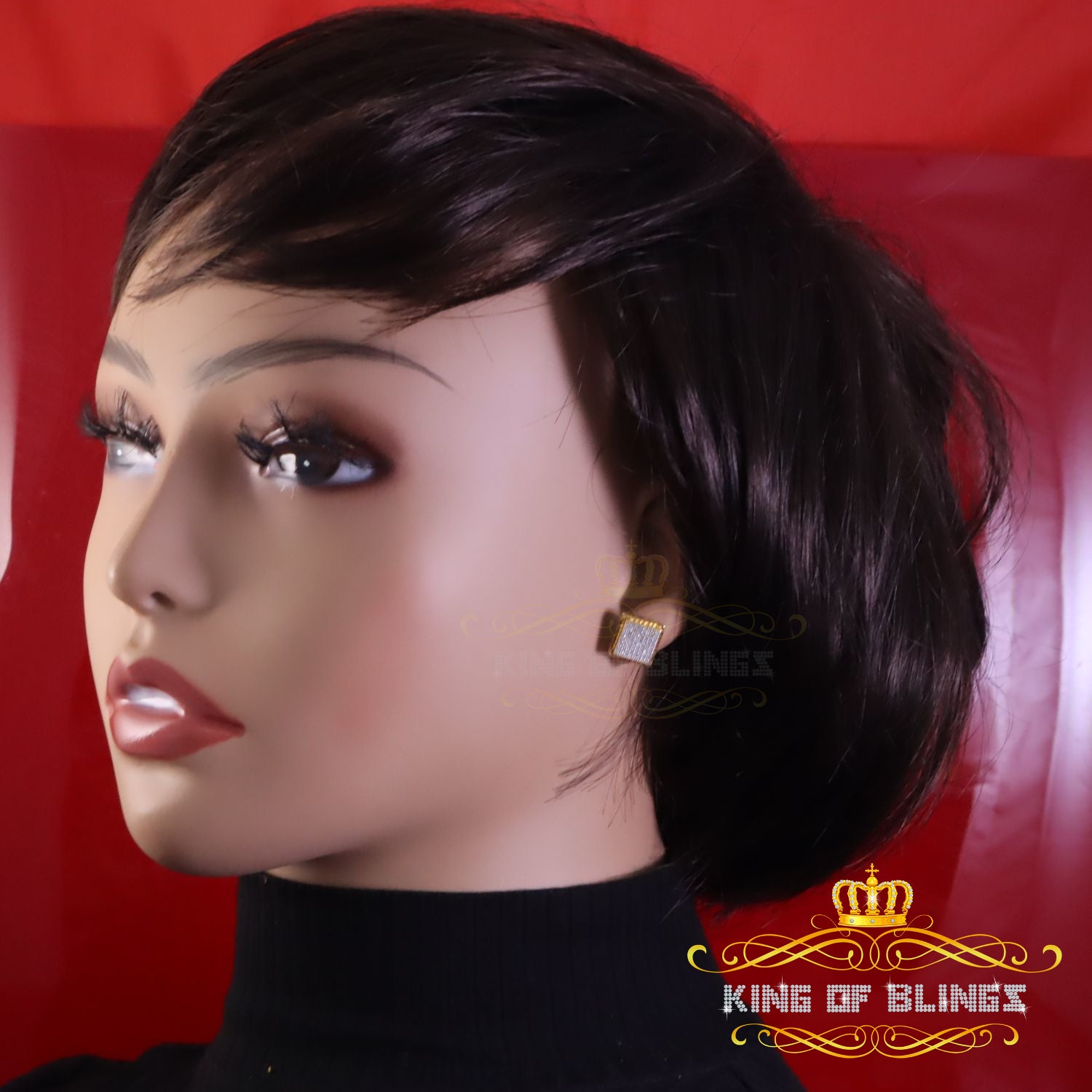 King of Blings-925 Sterling Silver 0.33ct Real Diamond For Women's & Men's Yellow Stud Earrings