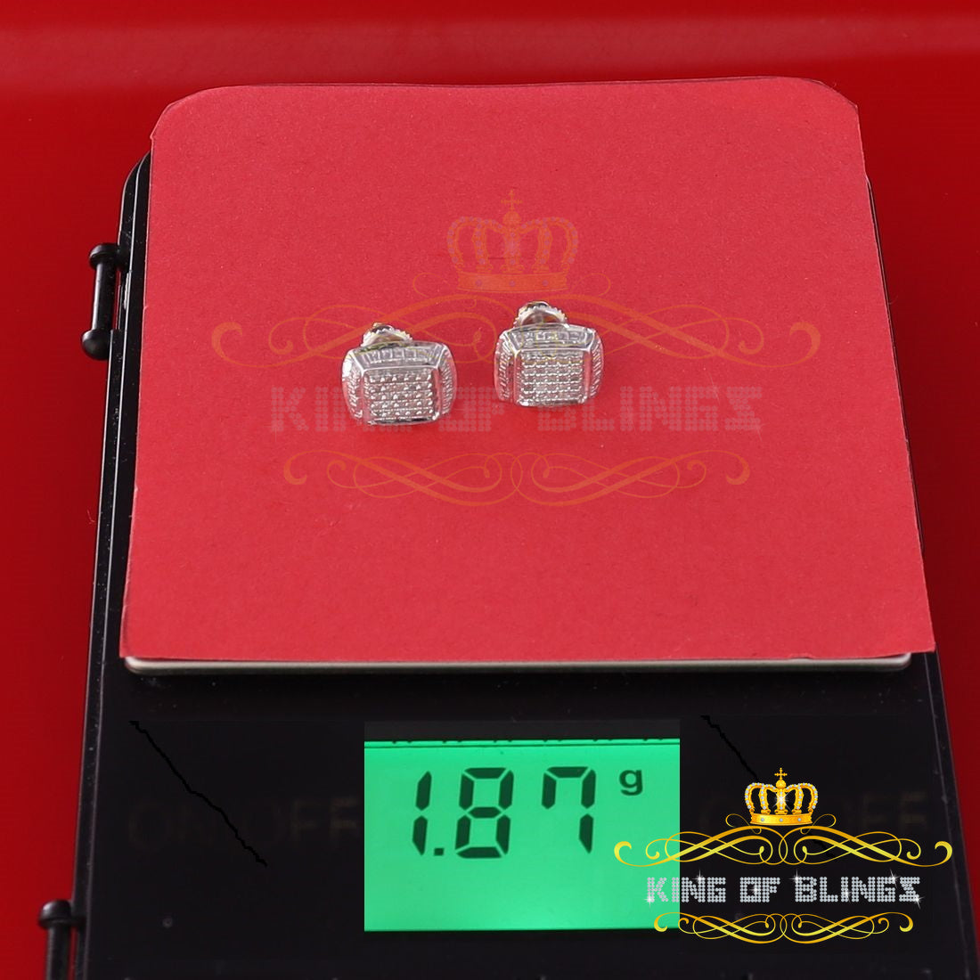 Presented as new with tags in the original packaging, these Silver Diamond earrings are ready to add a touch of sophistication to any outfit, making them a perfect choice for those seeking a combination of style and quality appealing to both men and women with their captivating sparkle. rest assured that the "King Of Blings" brand guarantees exceptional craftsmanship and materials. these womens stud earrings make a perfect gift or a stylish addition to your own jewelry collection,