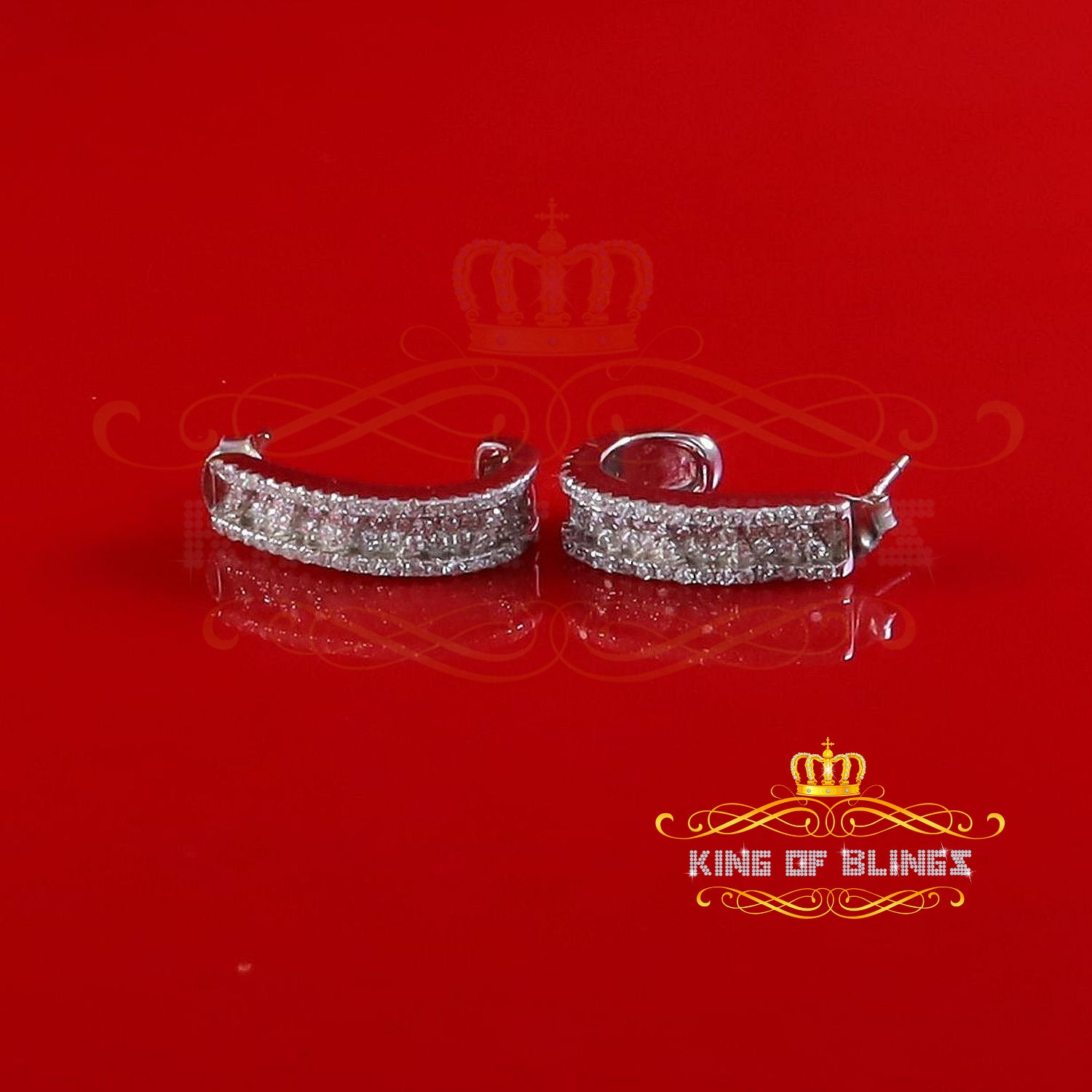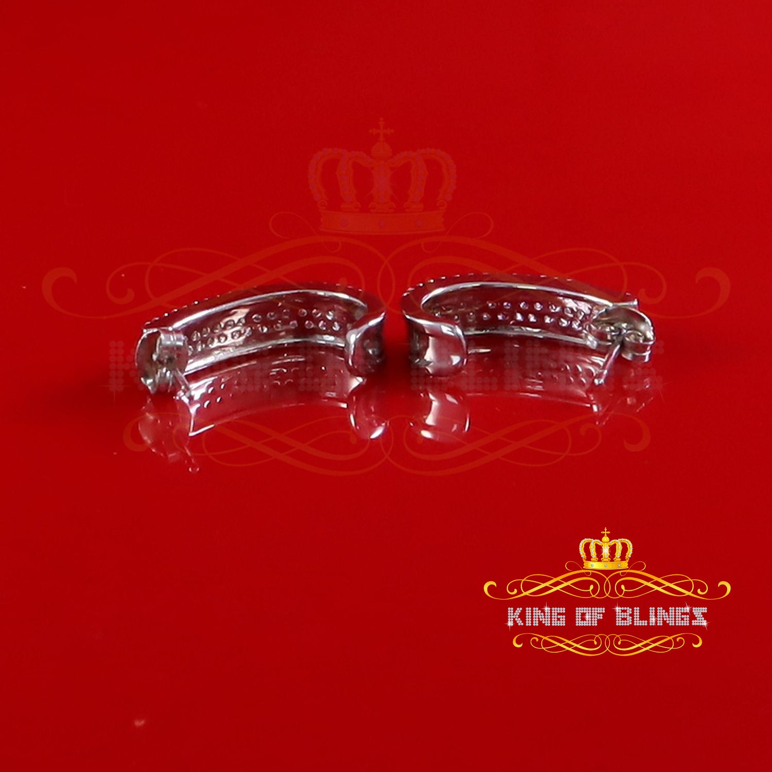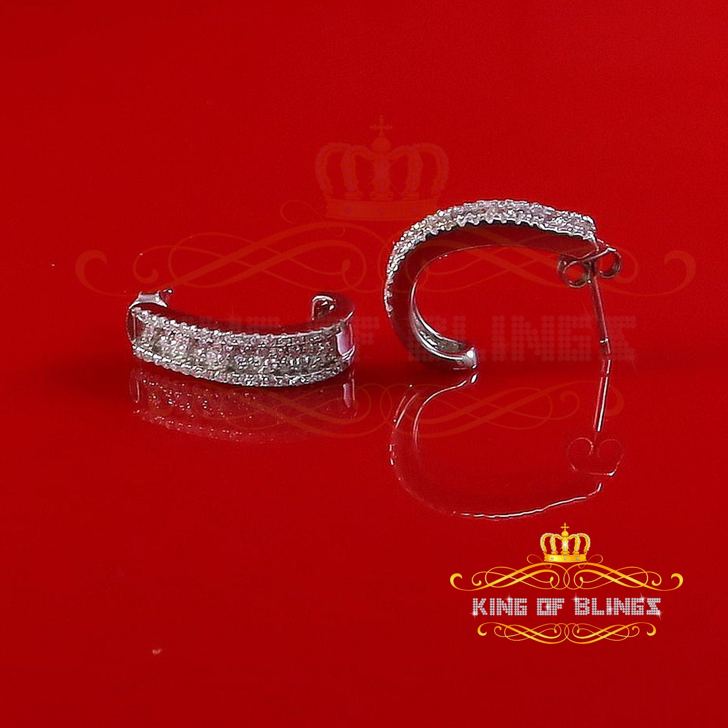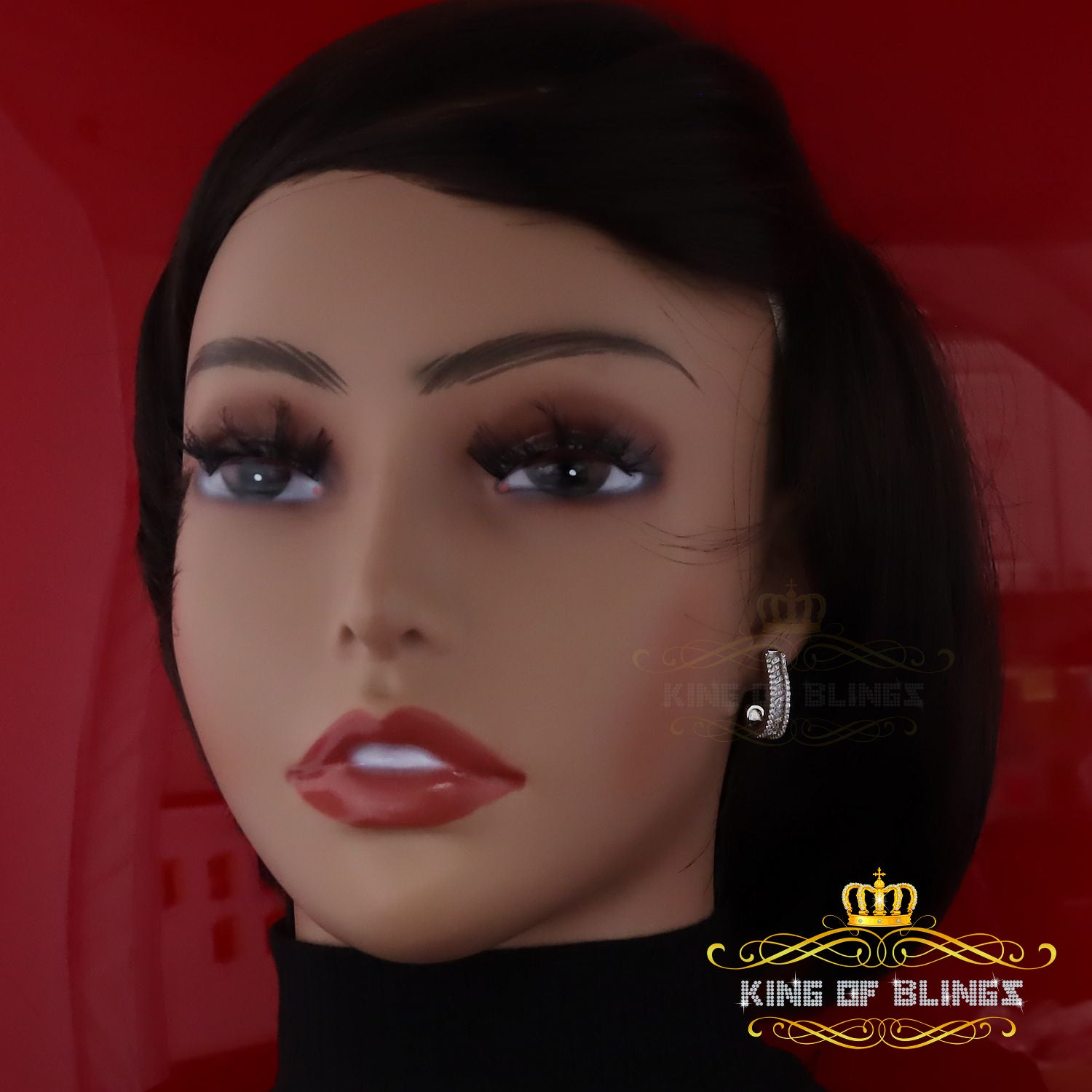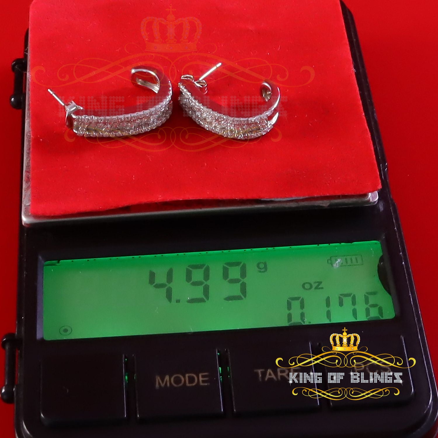 King of Bling's 925 Sterling Silver Mens hip hop white Gold Iced 3 row Huggie Hoop earrings