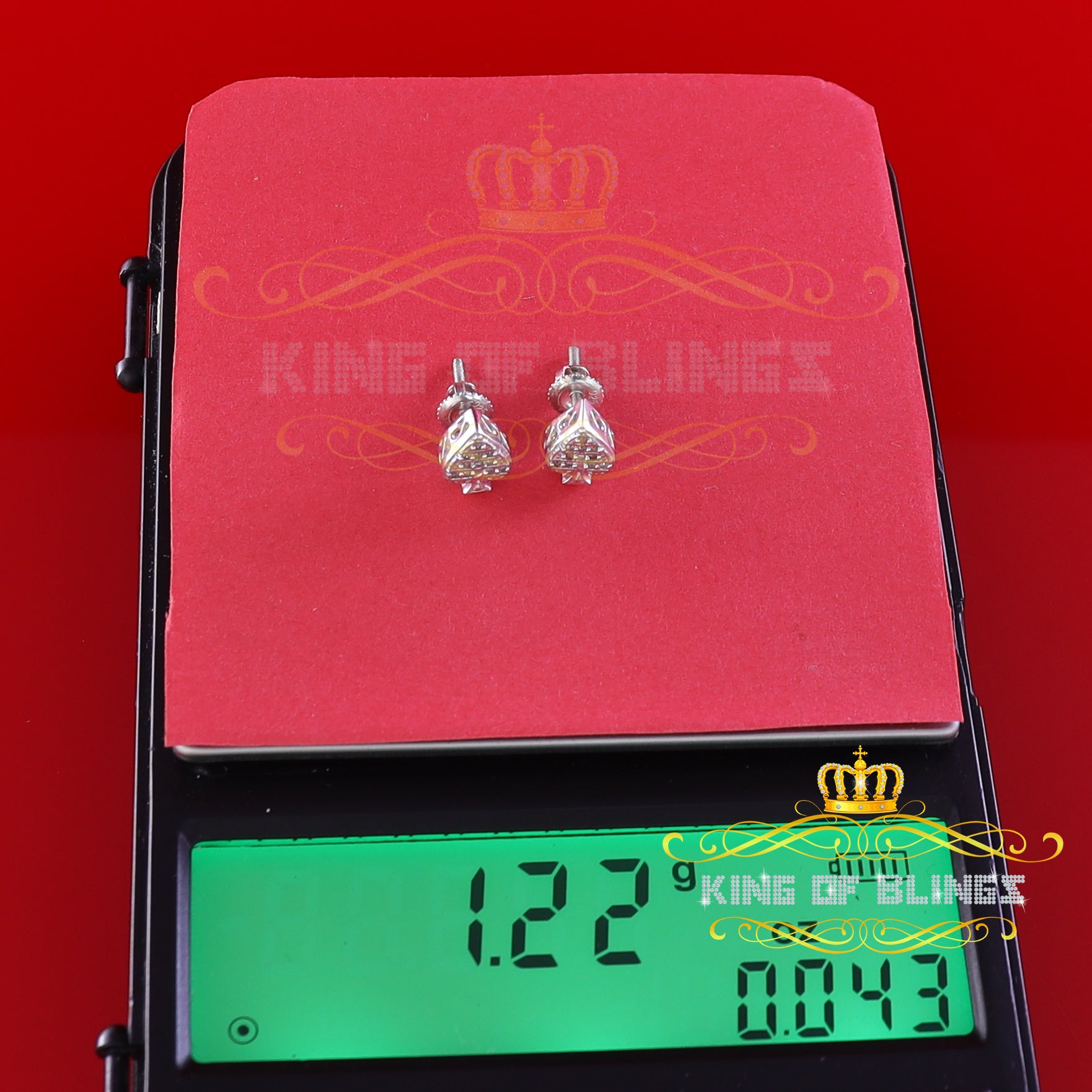 Presented as new with tags in the original packaging, these Silver Diamond earrings are ready to add a touch of sophistication to any outfit, making them a perfect choice for those seeking a combination of style and quality appealing to both men and women with their captivating sparkle. rest assured that the "King Of Blings" brand guarantees exceptional craftsmanship and materials. these womens stud earrings make a perfect gift or a stylish addition to your own jewelry collection,