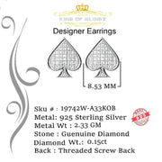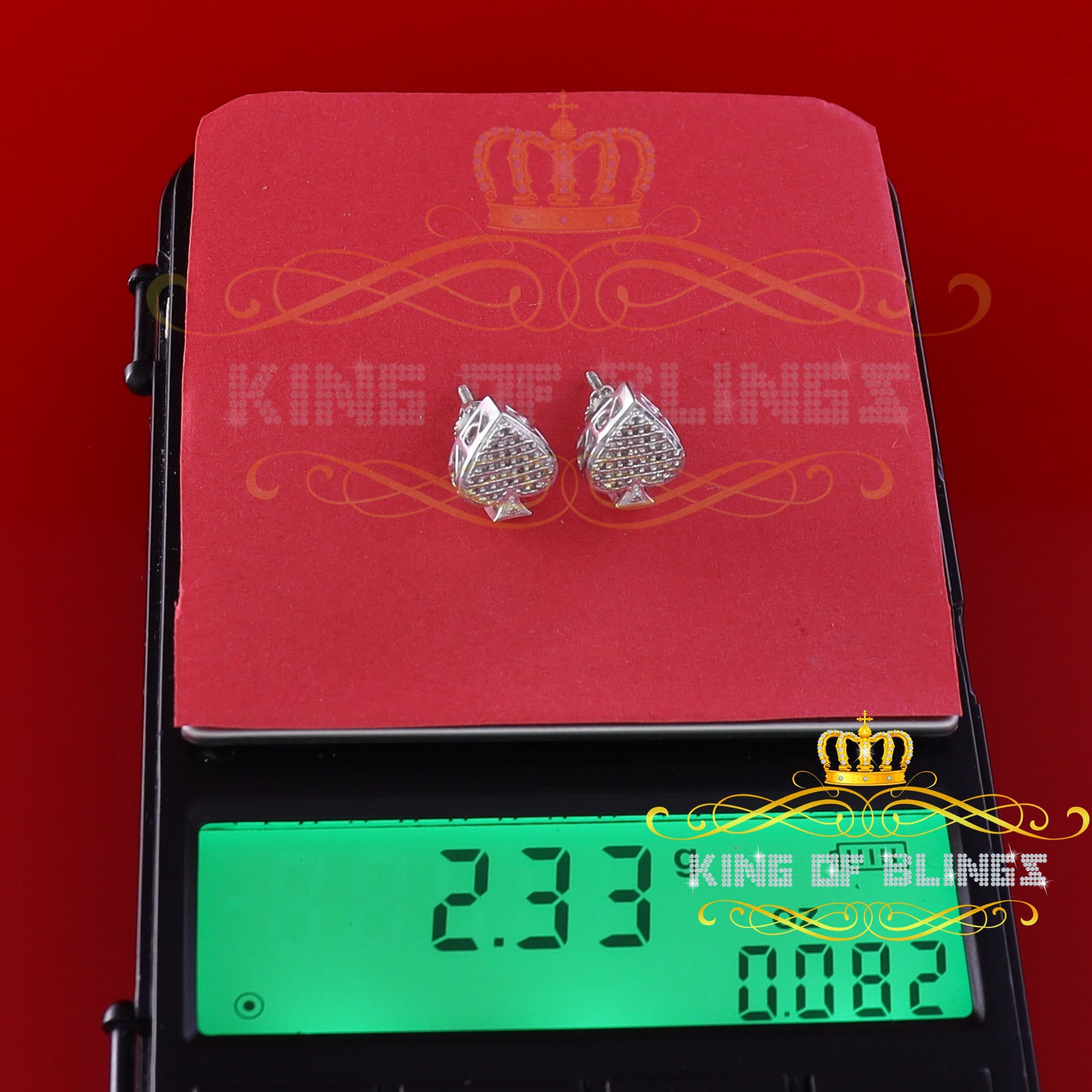 Presented as new with tags in the original packaging, these Silver Diamond earrings are ready to add a touch of sophistication to any outfit, making them a perfect choice for those seeking a combination of style and quality appealing to both men and women with their captivating sparkle. rest assured that the "King Of Blings" brand guarantees exceptional craftsmanship and materials. these womens stud earrings make a perfect gift or a stylish addition to your own jewelry collection,