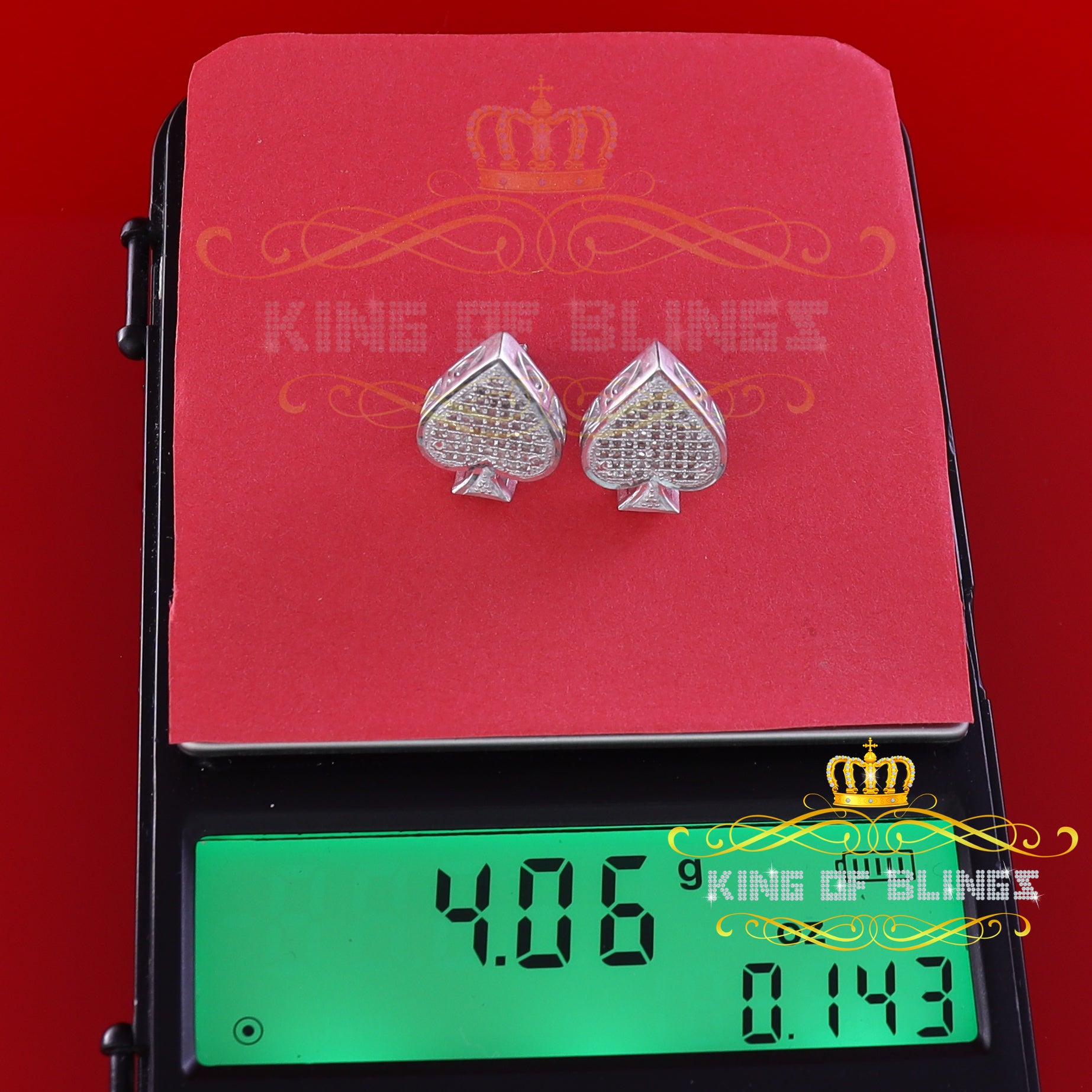 Presented as new with tags in the original packaging, these Silver Diamond earrings are ready to add a touch of sophistication to any outfit, making them a perfect choice for those seeking a combination of style and quality appealing to both men and women with their captivating sparkle. rest assured that the "King Of Blings" brand guarantees exceptional craftsmanship and materials. these womens stud earrings make a perfect gift or a stylish addition to your own jewelry collection,