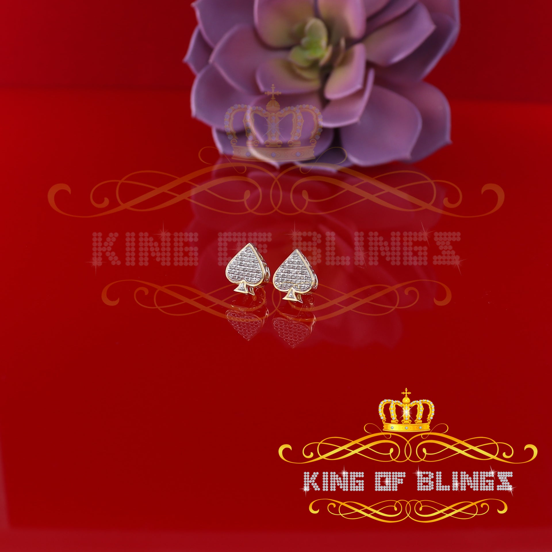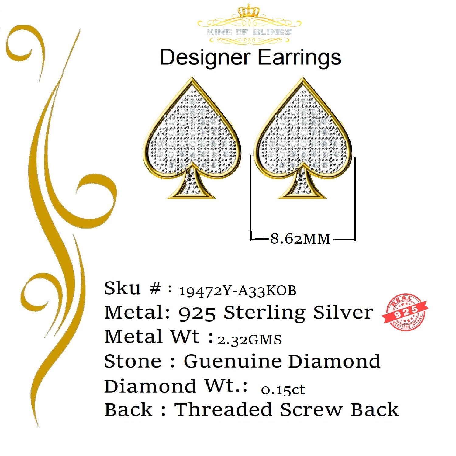 King of Blings-925 Sterling Silver Yellow 0.15ct Real Diamond For Women's / Men's Heart Earring