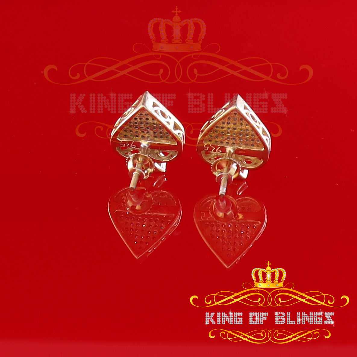 King of Blings-925 Sterling Silver Yellow 0.25ct Diamond For Women's / Men's Stud Heart Earring