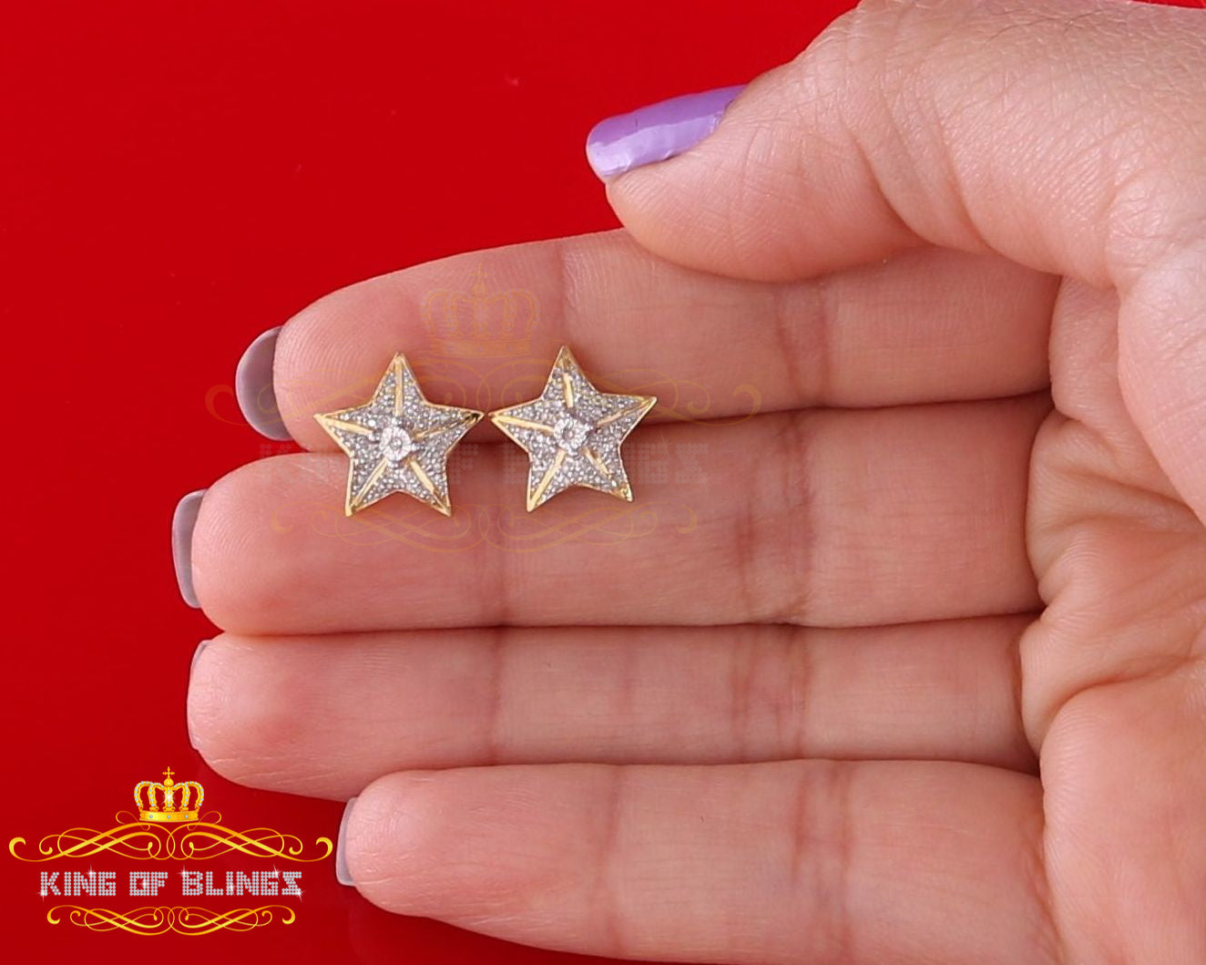 King of Blings-925 Sterling Silver Yellow 0.25ct Diamond For Women's / Men's Stud Star Earrings