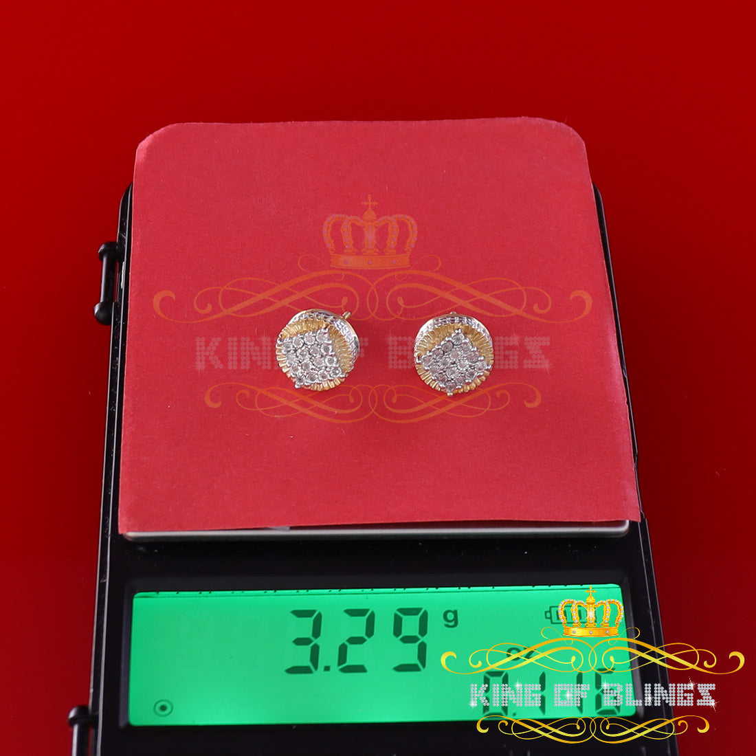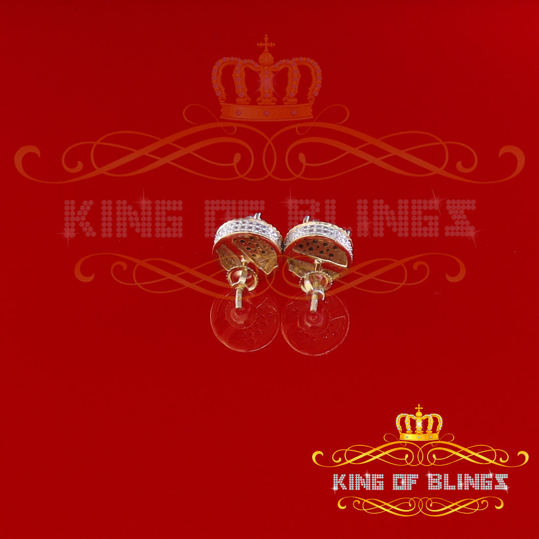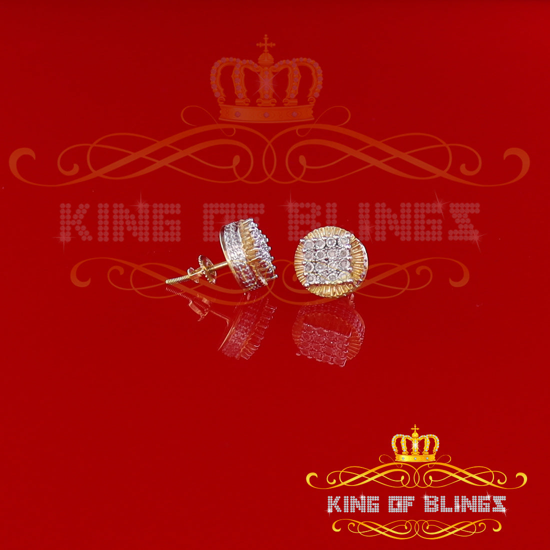 King of Blings-925 Sterling Silver Yellow Hip Hop 0.15ct Diamond Men's & Women's Round Earrings