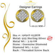 The Stud earrings feature a classic stud Earring comes with threaded screw backs, ensuring a secure and comfortable fit. Crafted from 925 sterling silver, these Men's earrings boast a lustrous yellow metal color , enhancing the overall elegance.The main attraction lies in the real diamonds that adorn these earrings, bringing a sense of luxury and brilliance to the wearer. While specific details such as the diamond weight 0.05ctct and 3.29gm