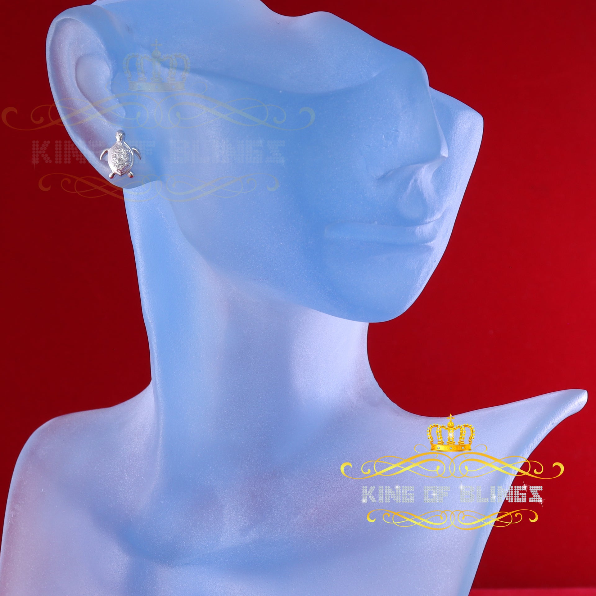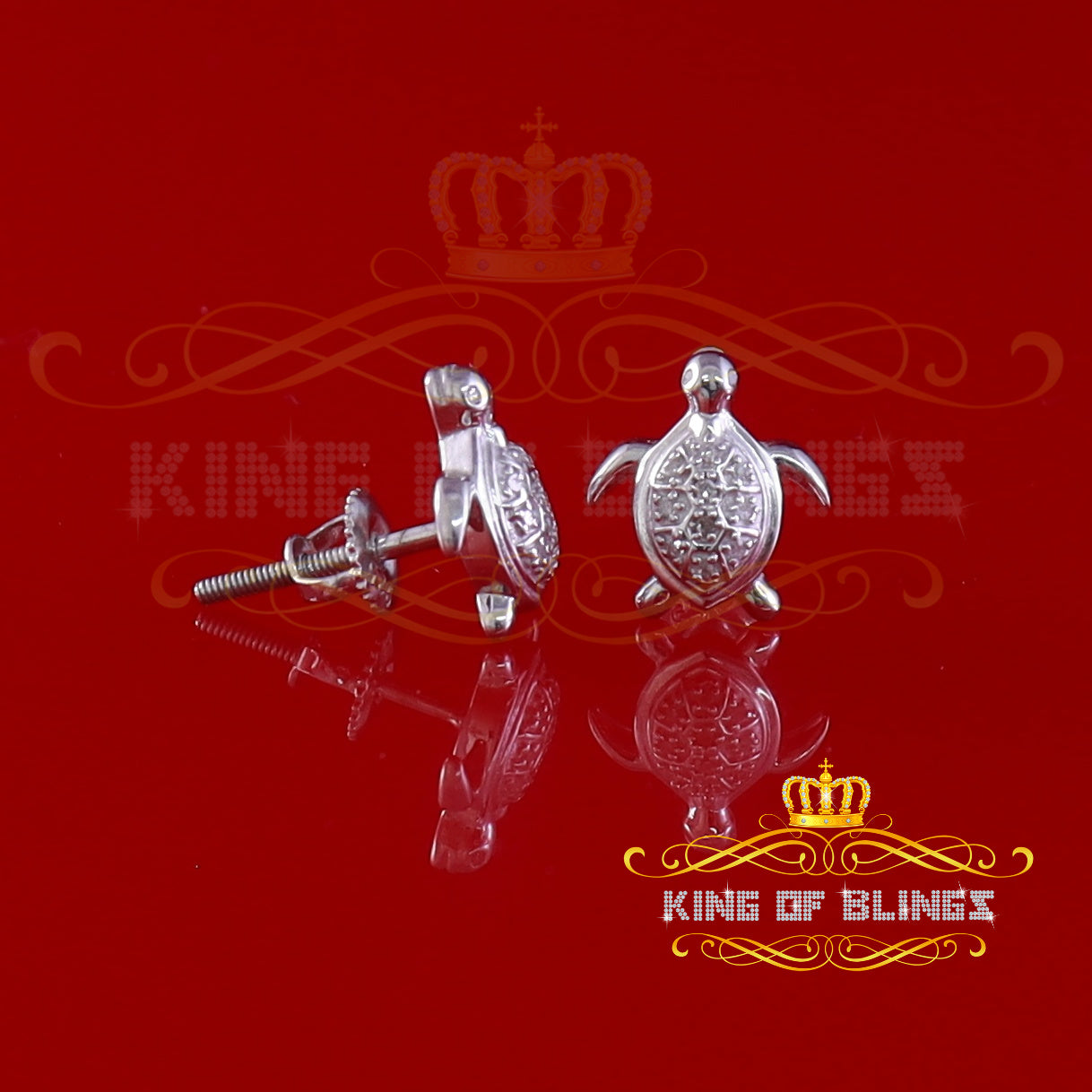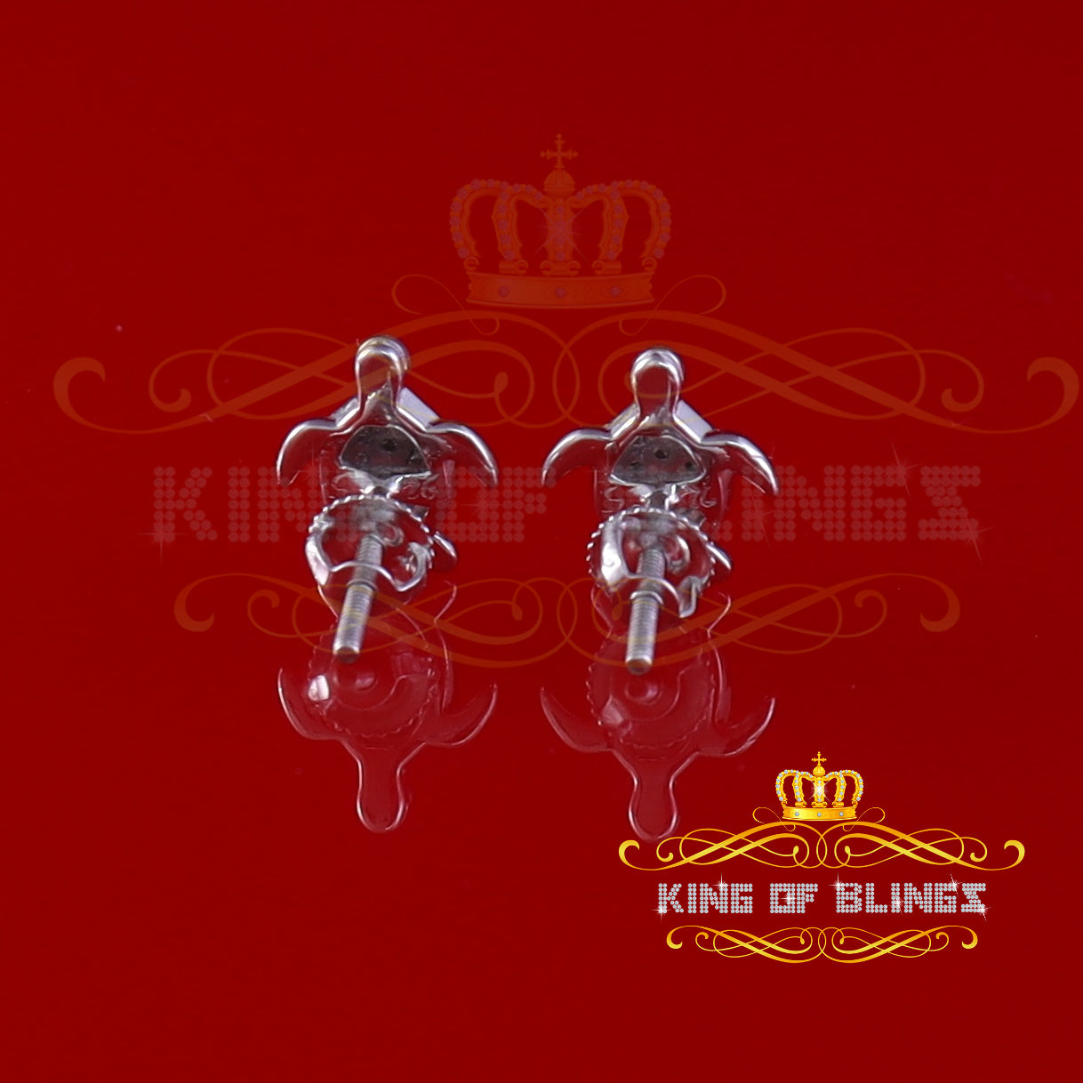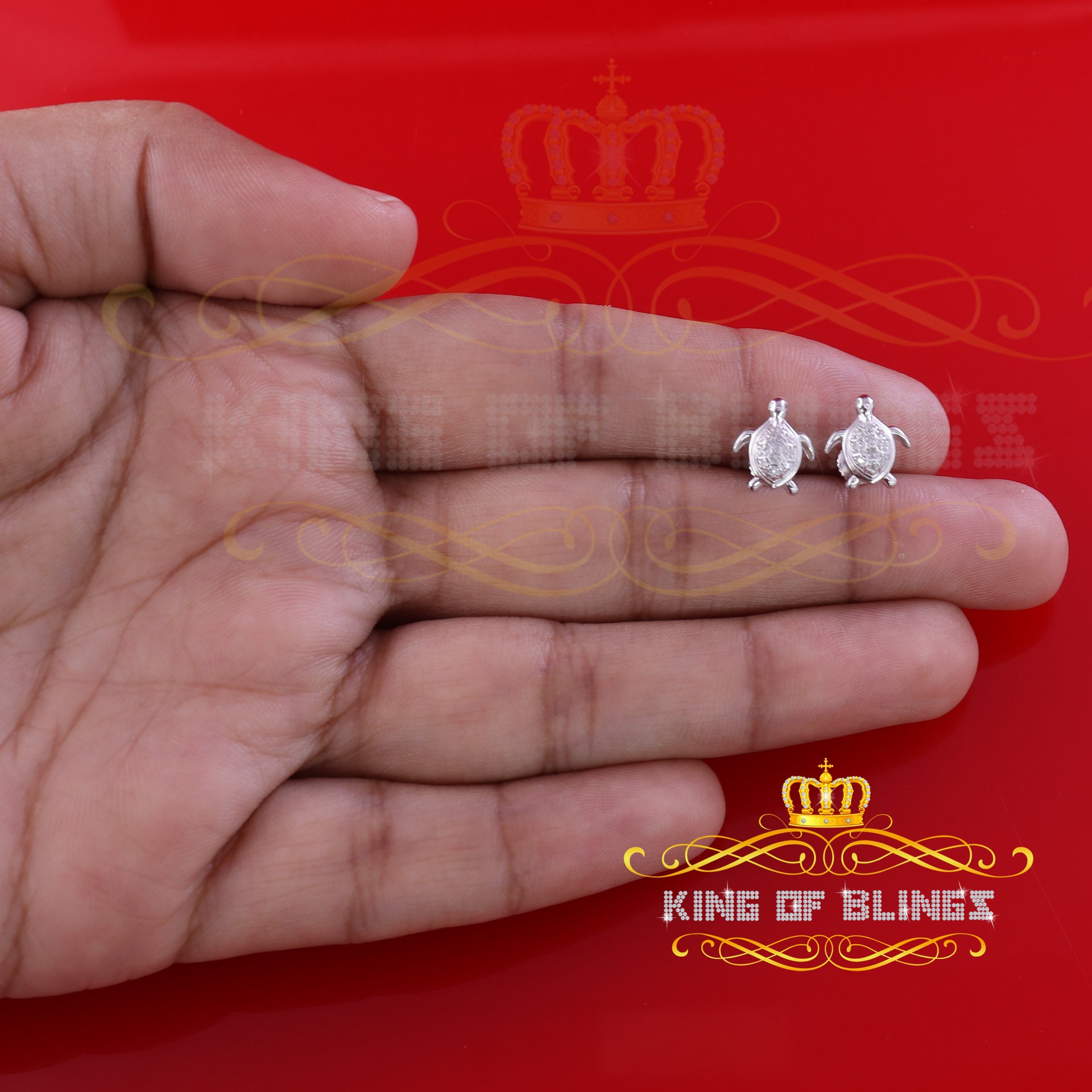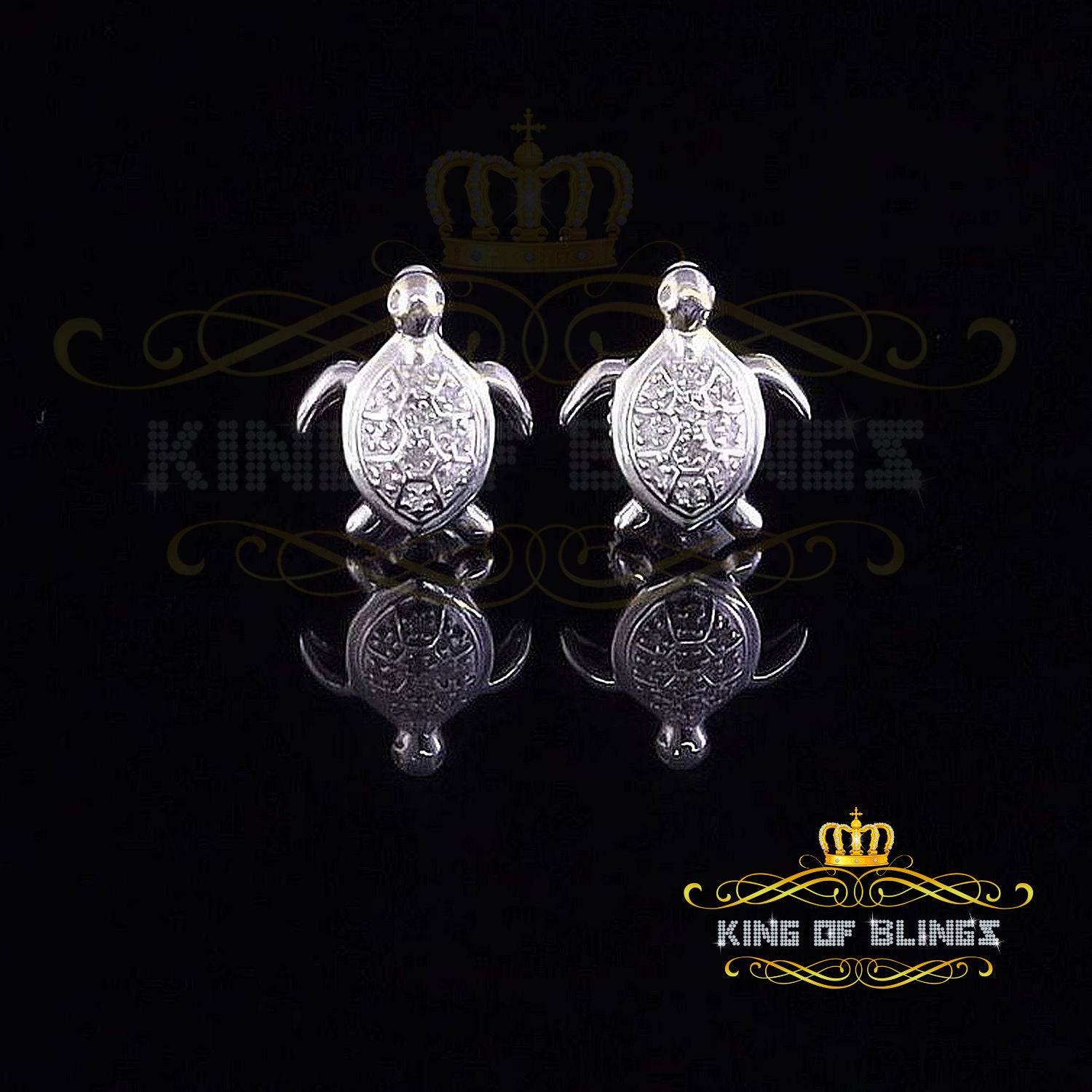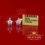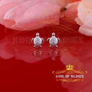 King Of Bling's 925 Sterling White Silver 0.10ct Diamond Turtle Earrings For Women's & Men's