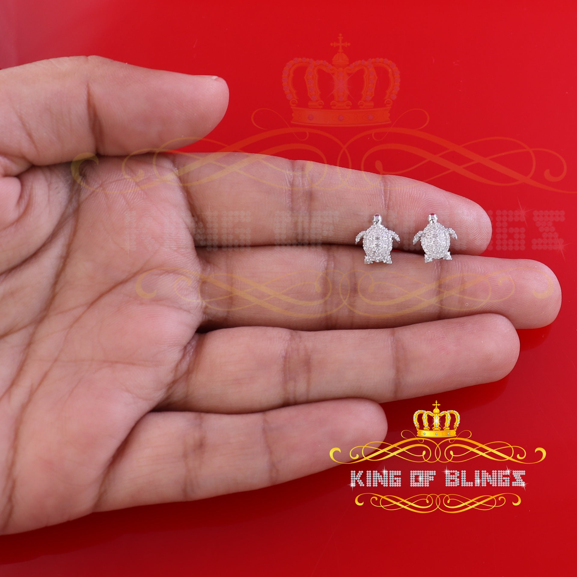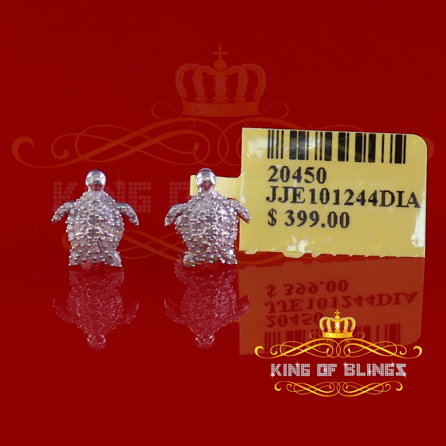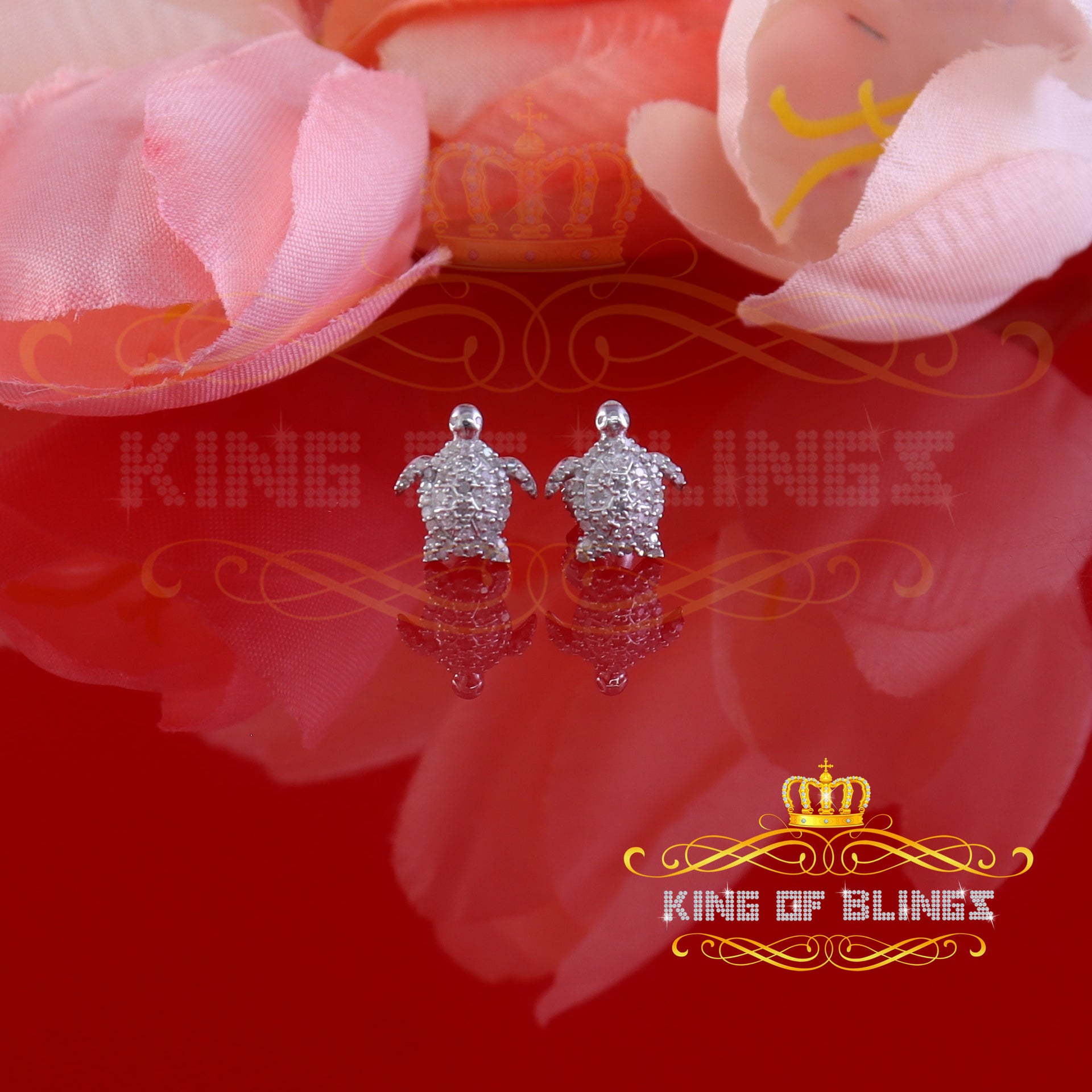 King Of Bling's 925 Sterling White Silver 0.25ct Diamond Turtle Earrings For Women's & Men's