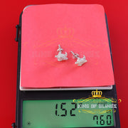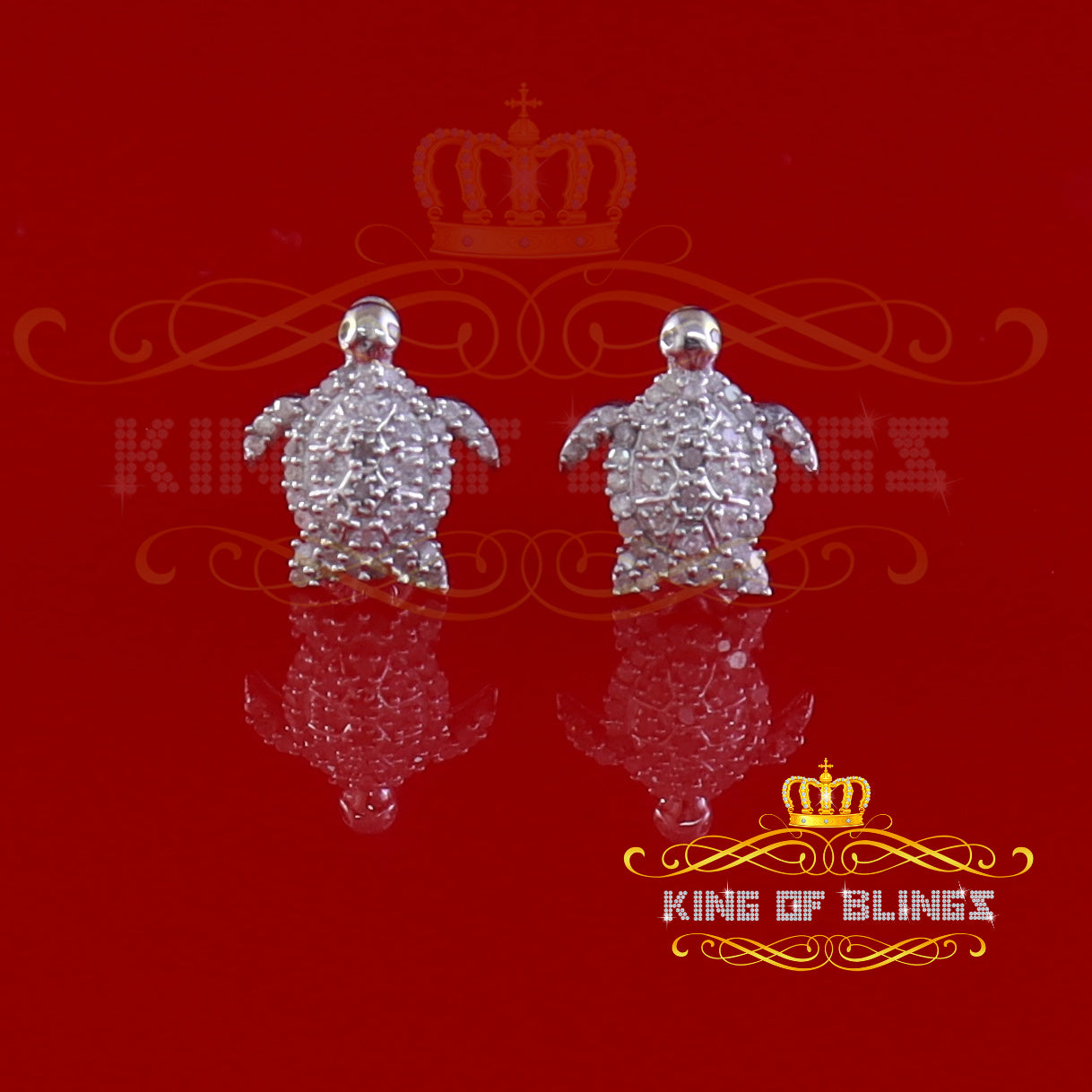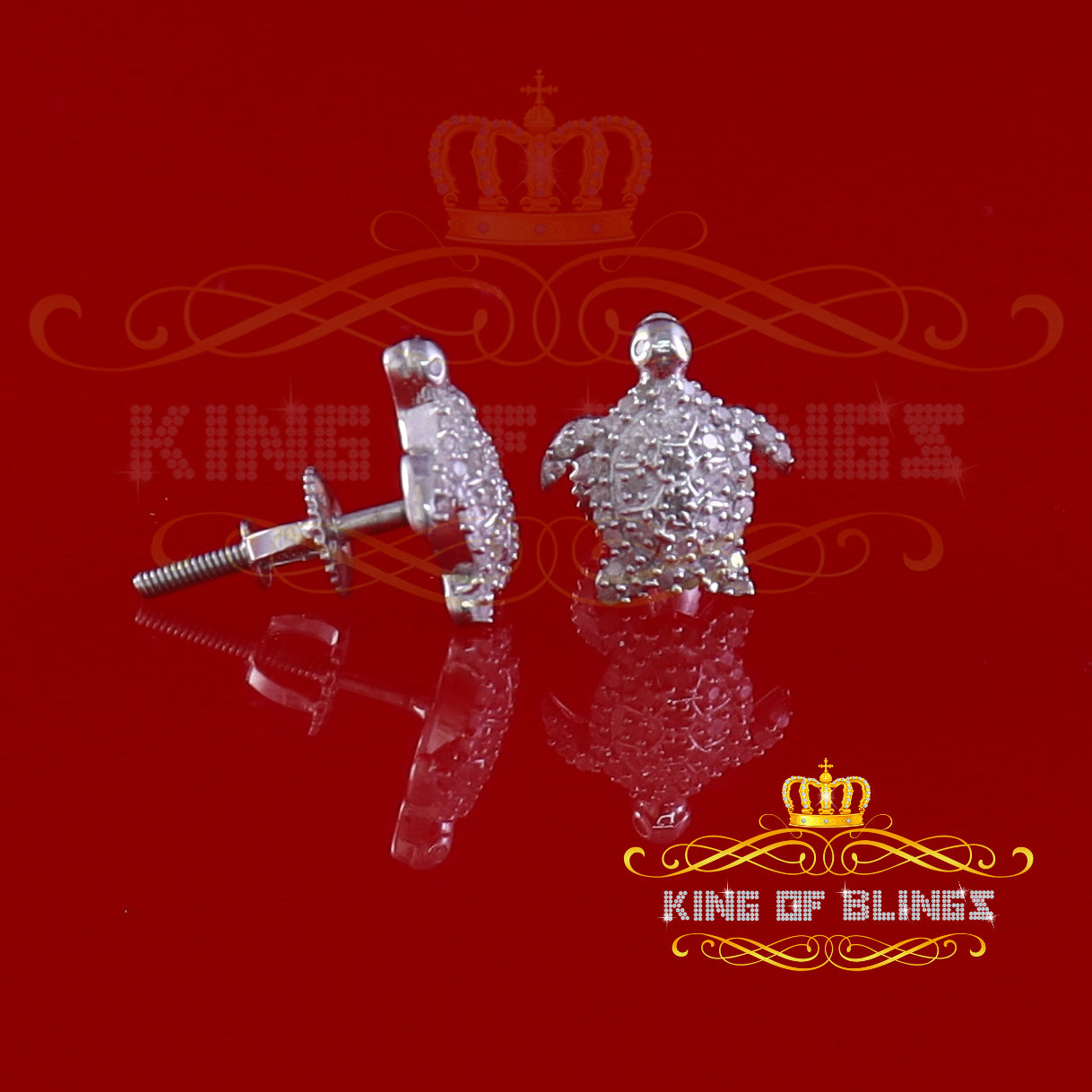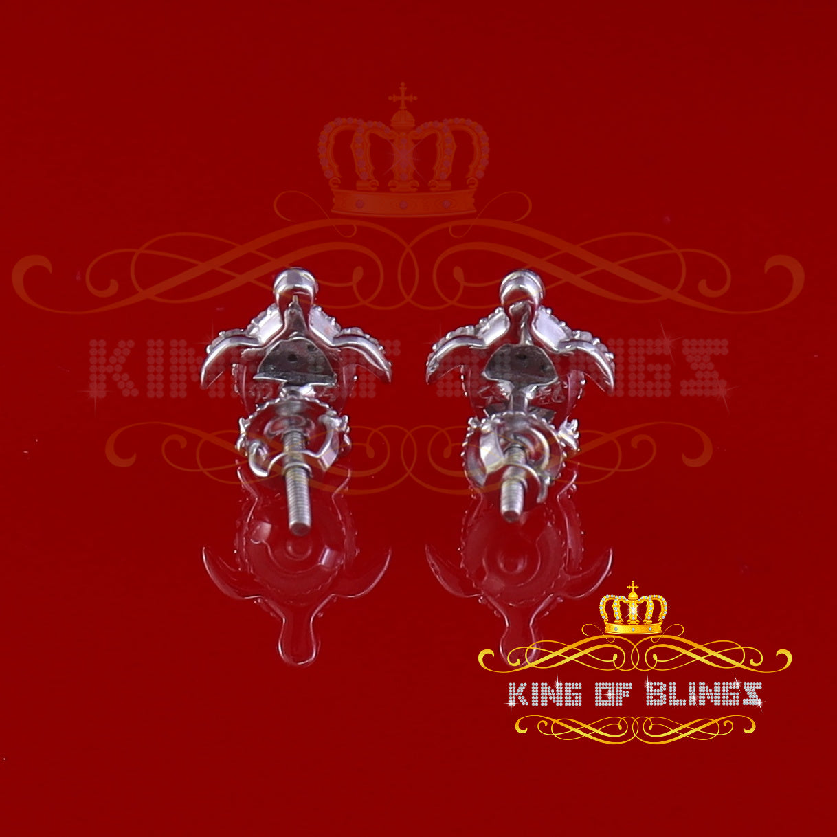 King Of Bling's 925 Sterling White Silver 0.25ct Diamond Turtle Earrings For Women's & Men's