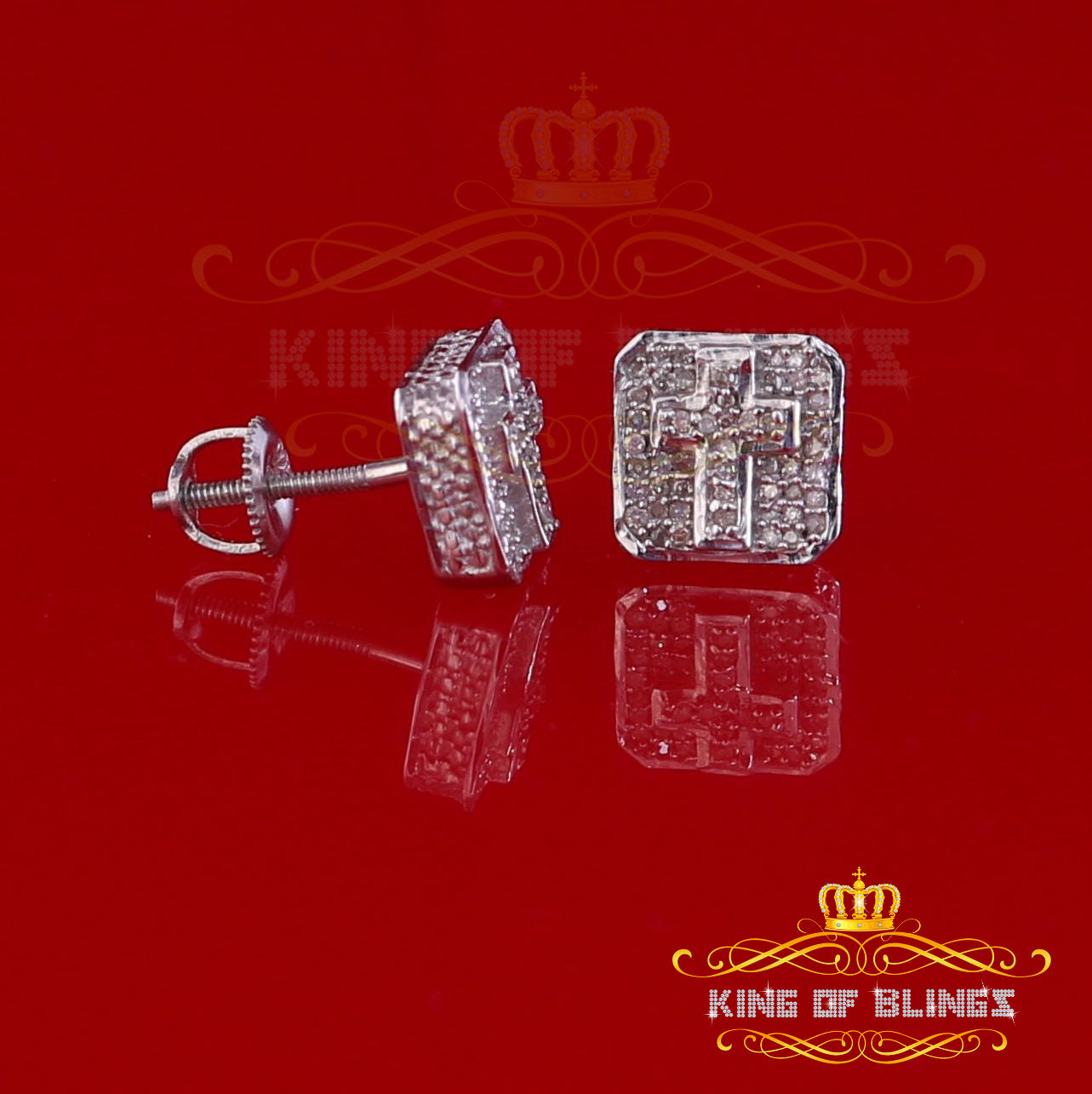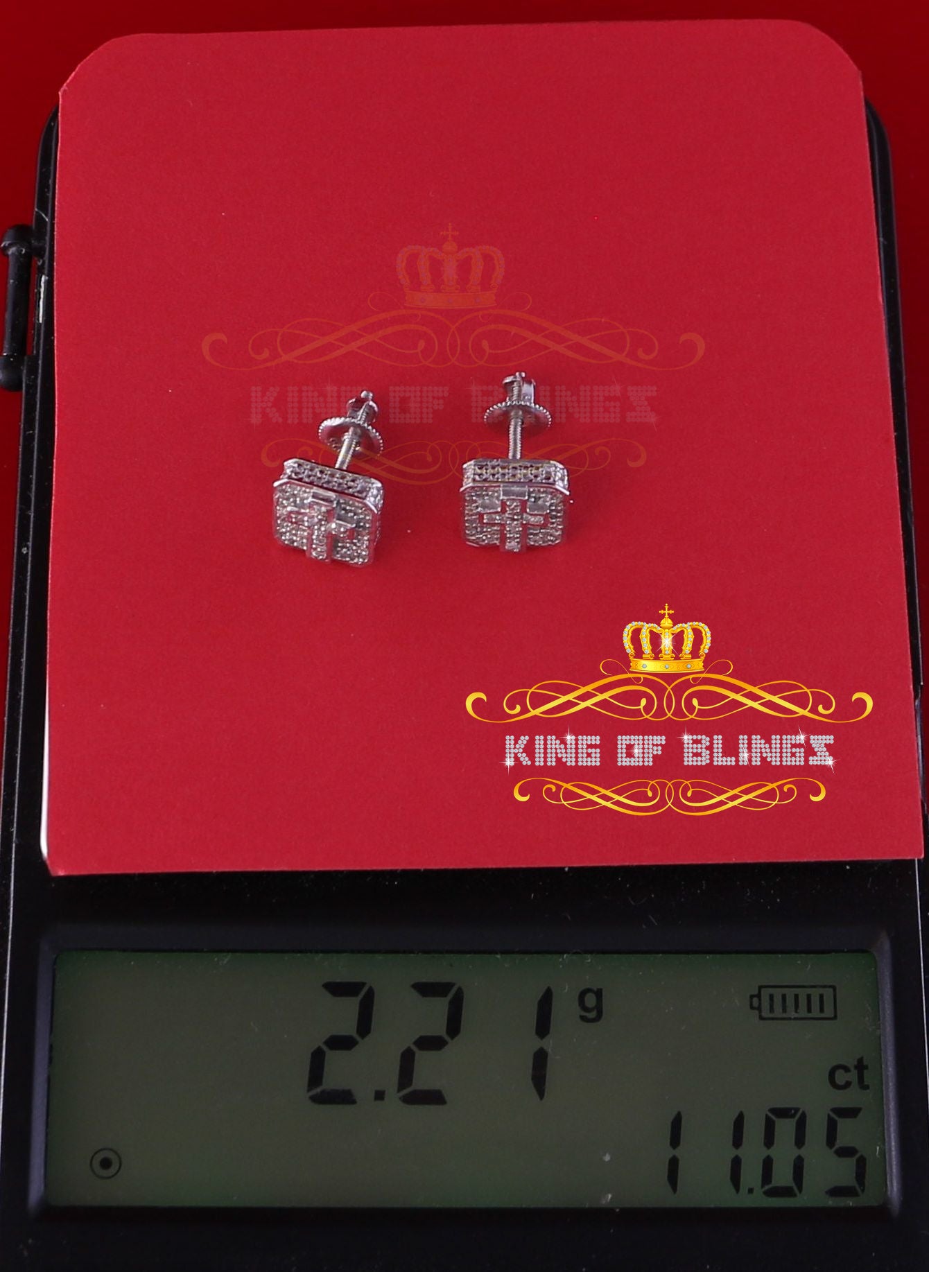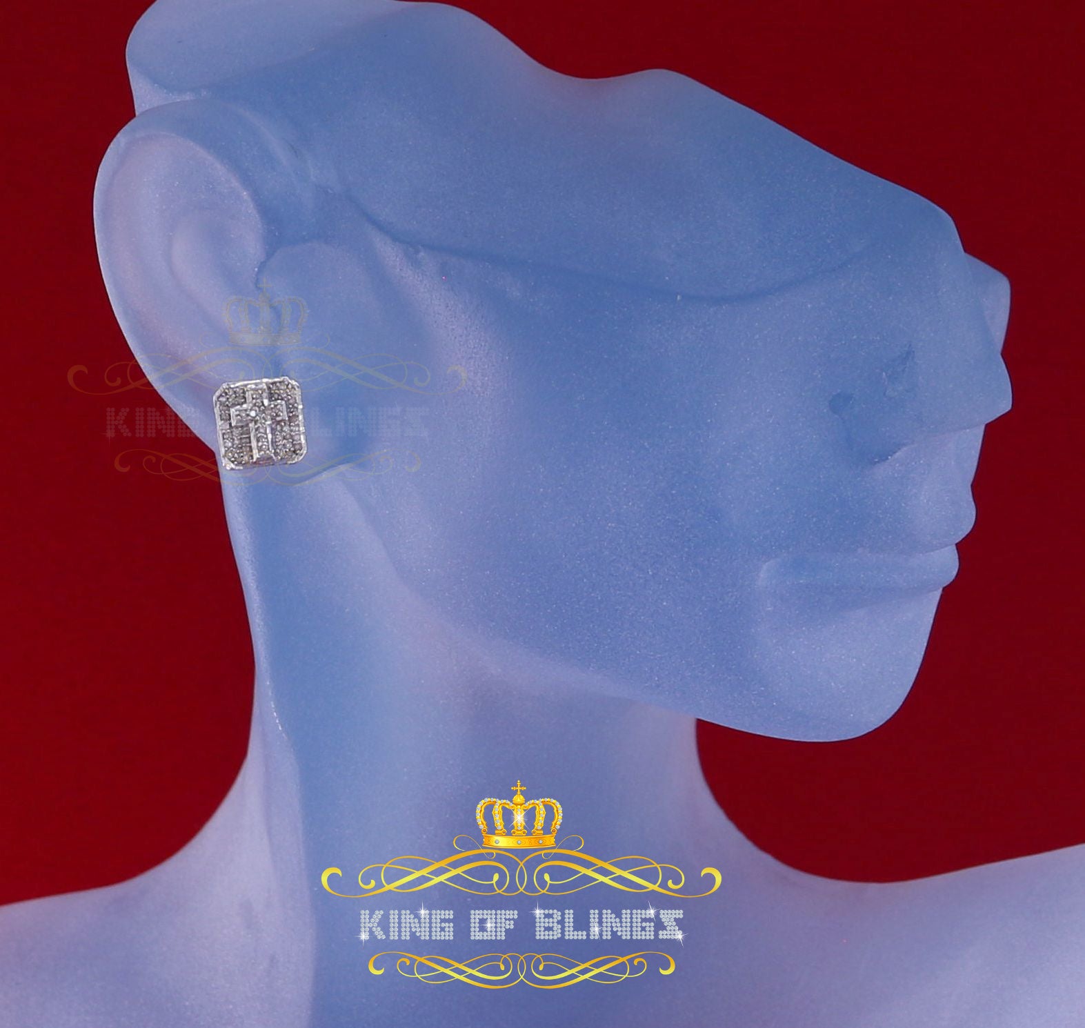 Presented as new with tags in the original packaging, these Silver Diamond earrings are ready to add a touch of sophistication to any outfit, making them a perfect choice for those seeking a combination of style and quality appealing to both men and women with their captivating sparkle. rest assured that the "King Of Blings" brand guarantees exceptional craftsmanship and materials. these womens stud earrings make a perfect gift or a stylish addition to your own jewelry collection,