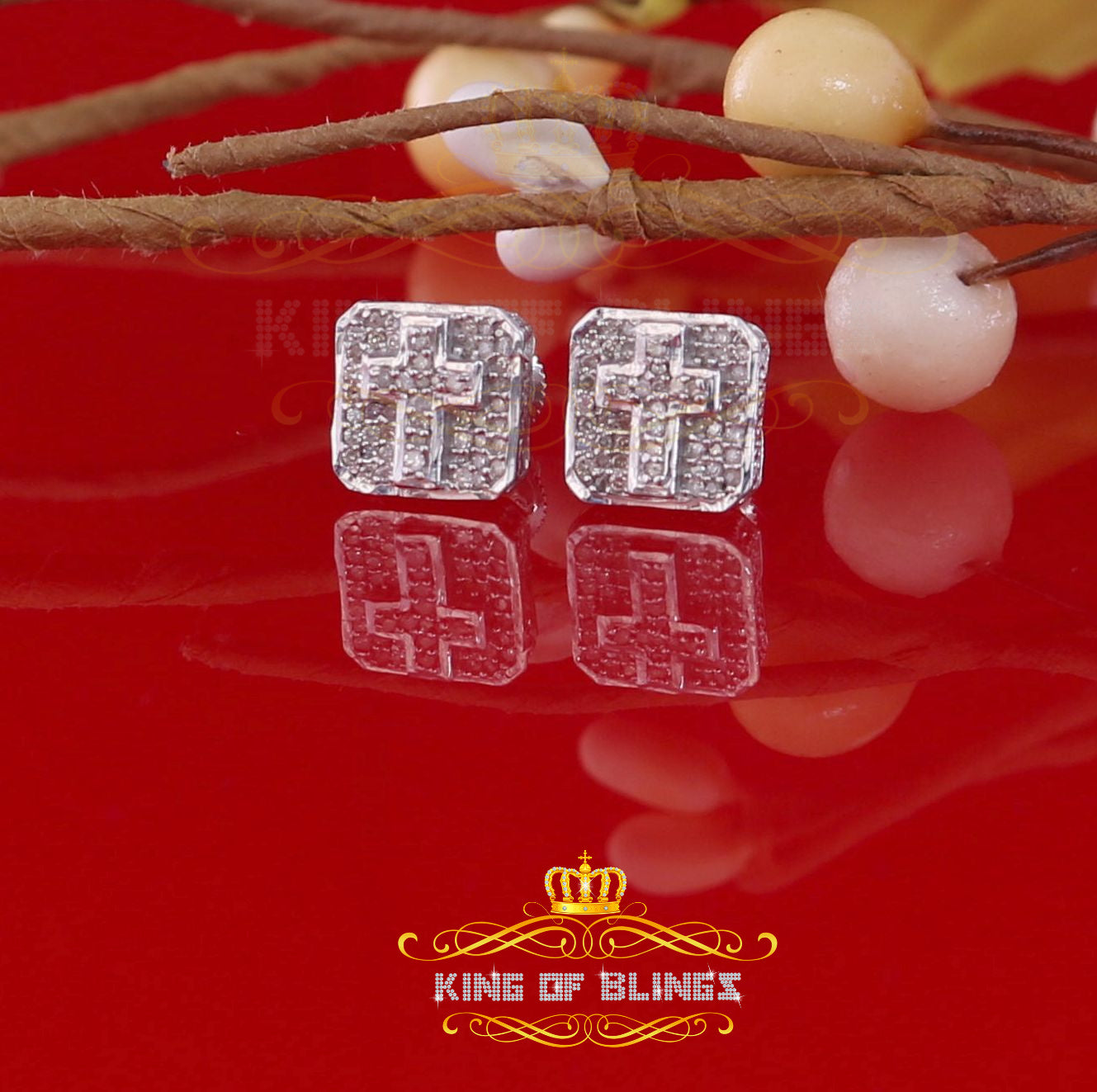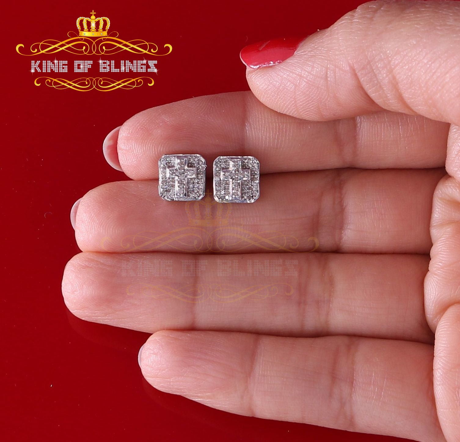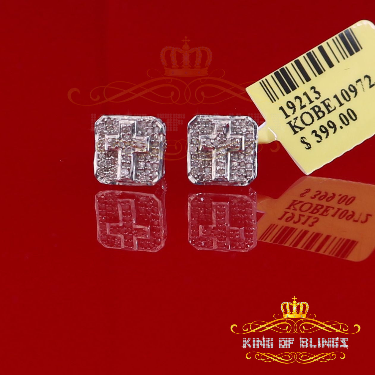 Presented as new with tags in the original packaging, these Silver Diamond earrings are ready to add a touch of sophistication to any outfit, making them a perfect choice for those seeking a combination of style and quality appealing to both men and women with their captivating sparkle. rest assured that the "King Of Blings" brand guarantees exceptional craftsmanship and materials. these womens stud earrings make a perfect gift or a stylish addition to your own jewelry collection,