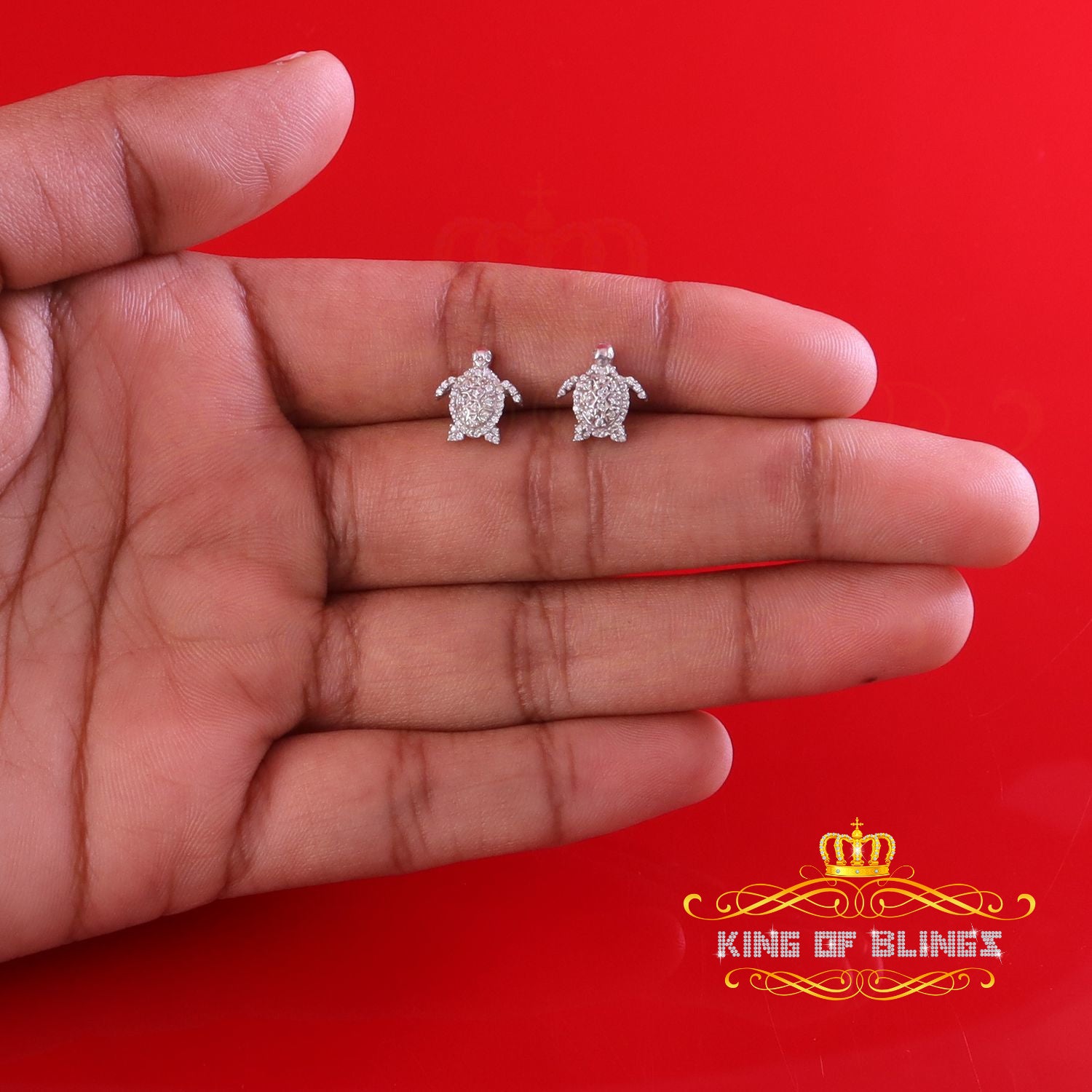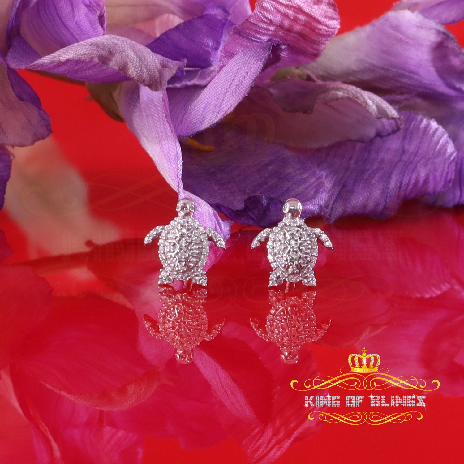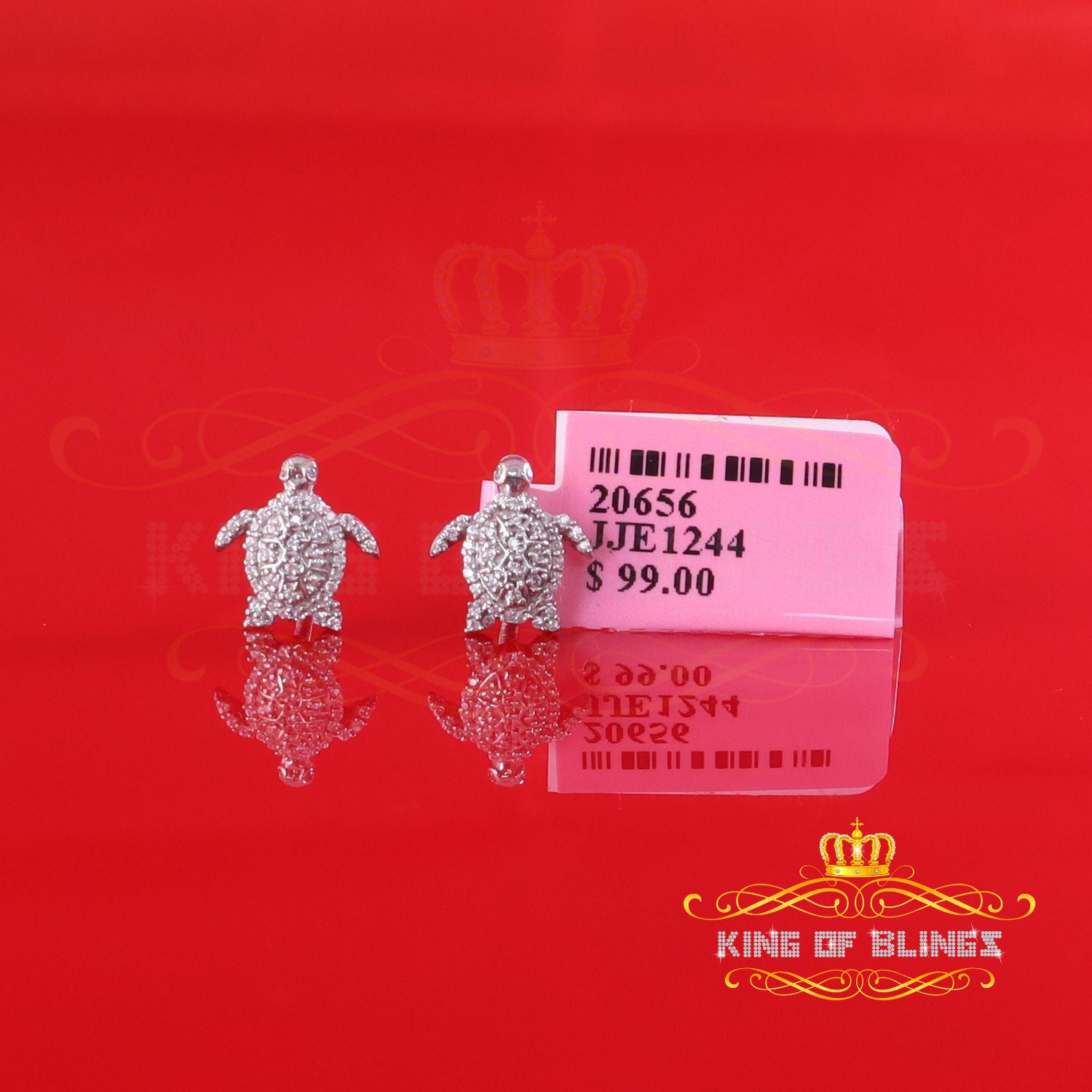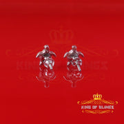 King of Bling's 925 Sterling White Silver 0.50ct Cubic Zirconia Turtle Earrings Women & Men's