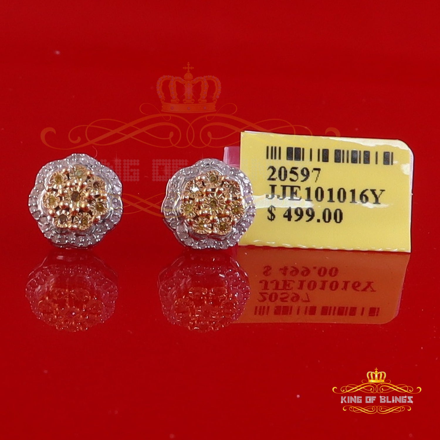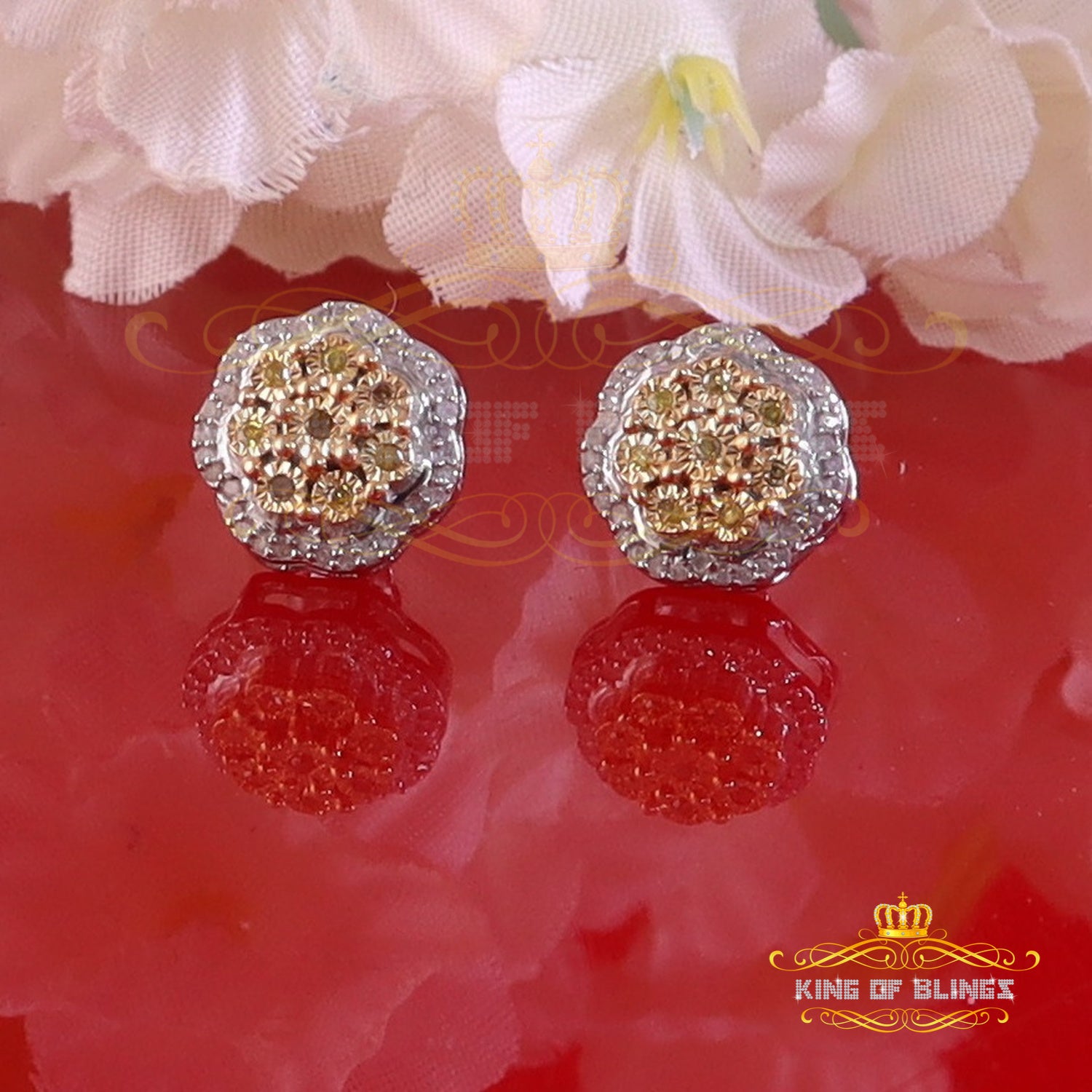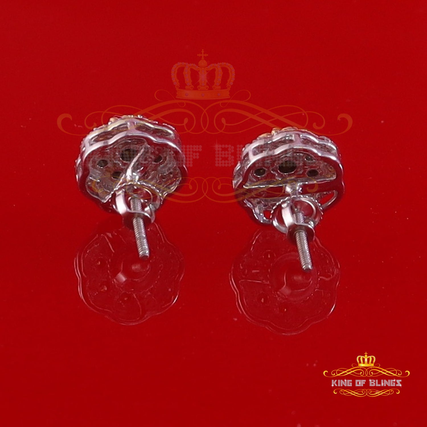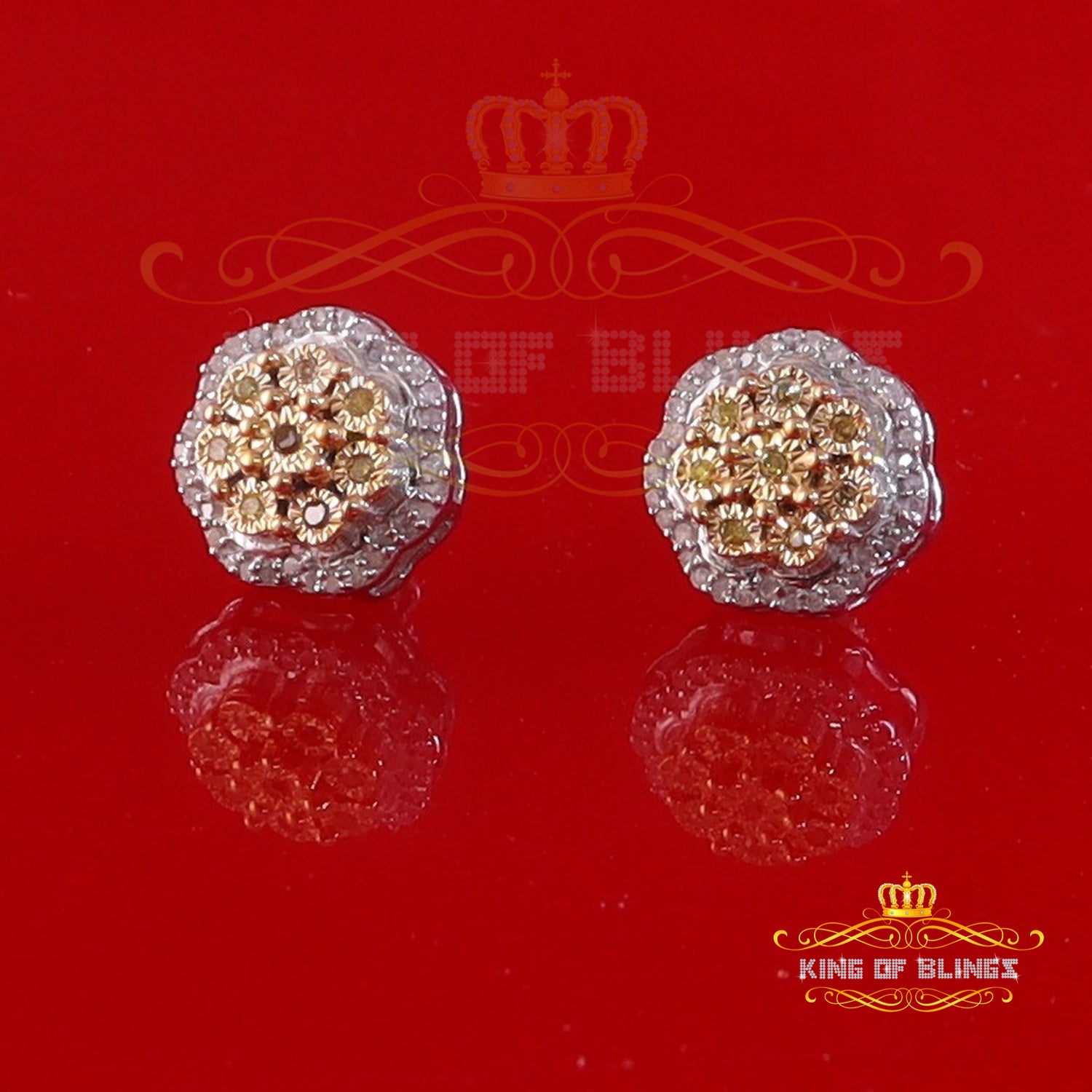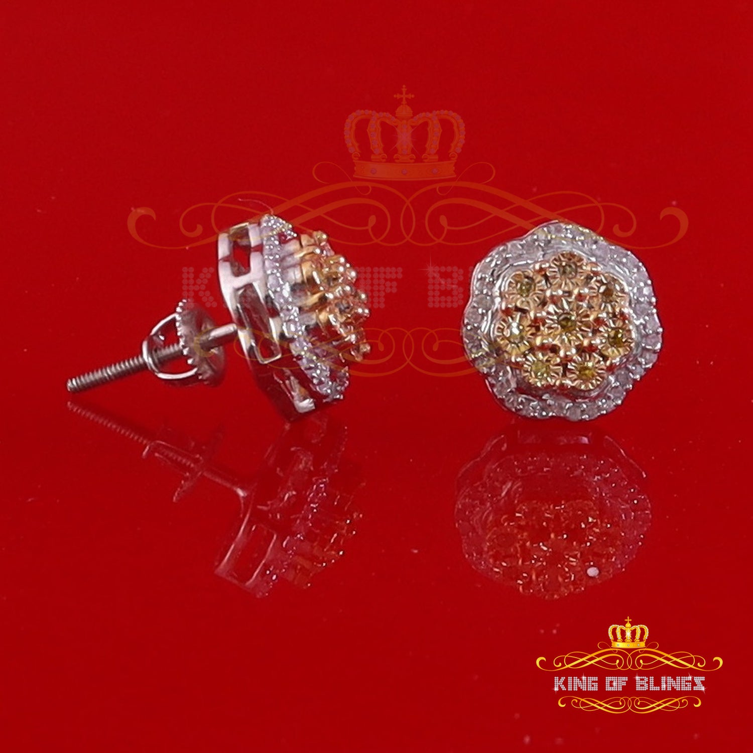 King Of Bling's 925 Sterling White Silver Flower Shape Miracle Plate 0.15ct Real Diamond Earring
