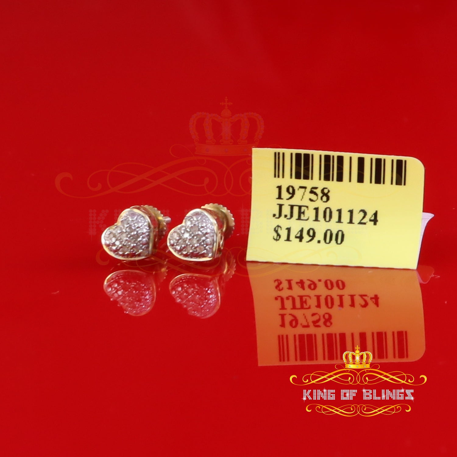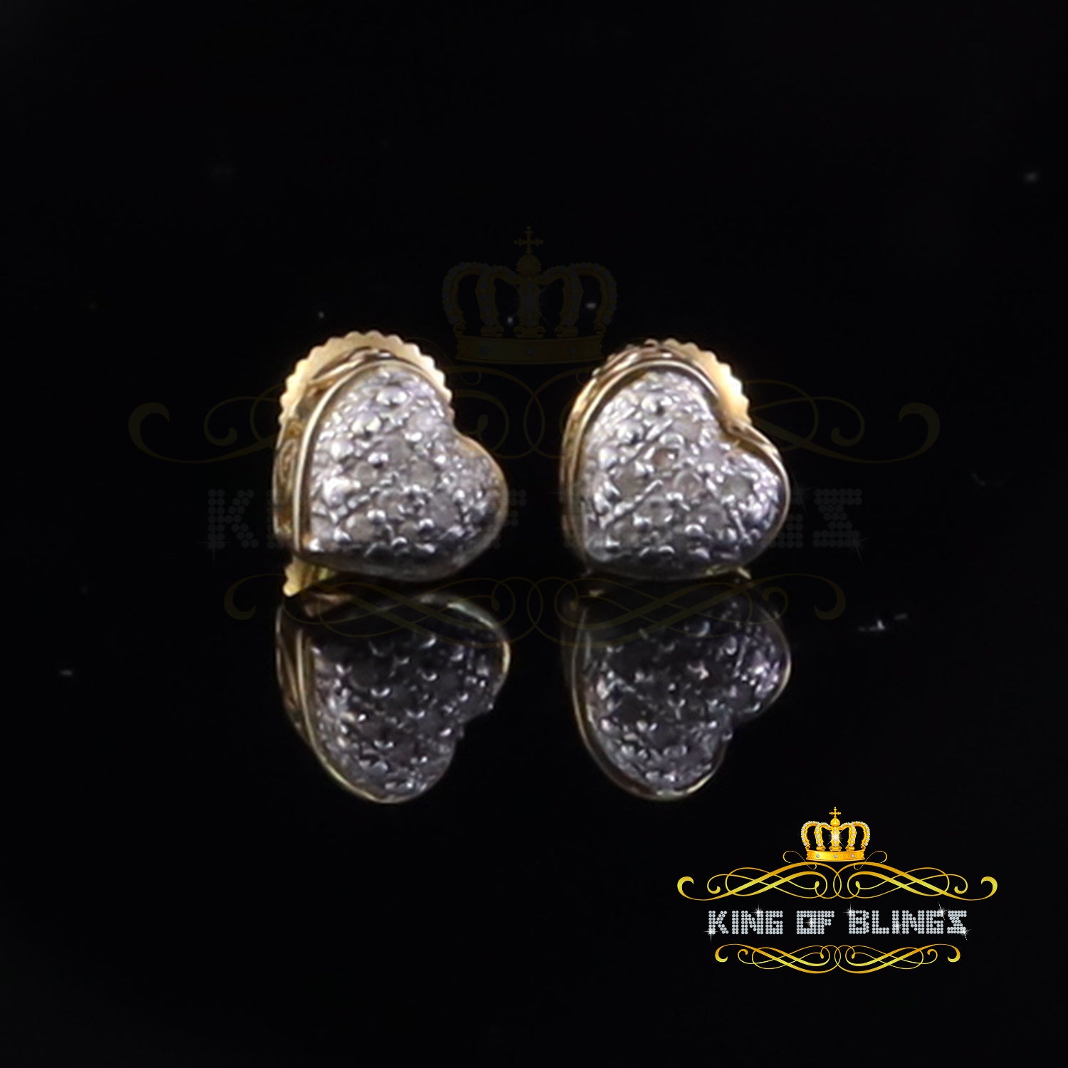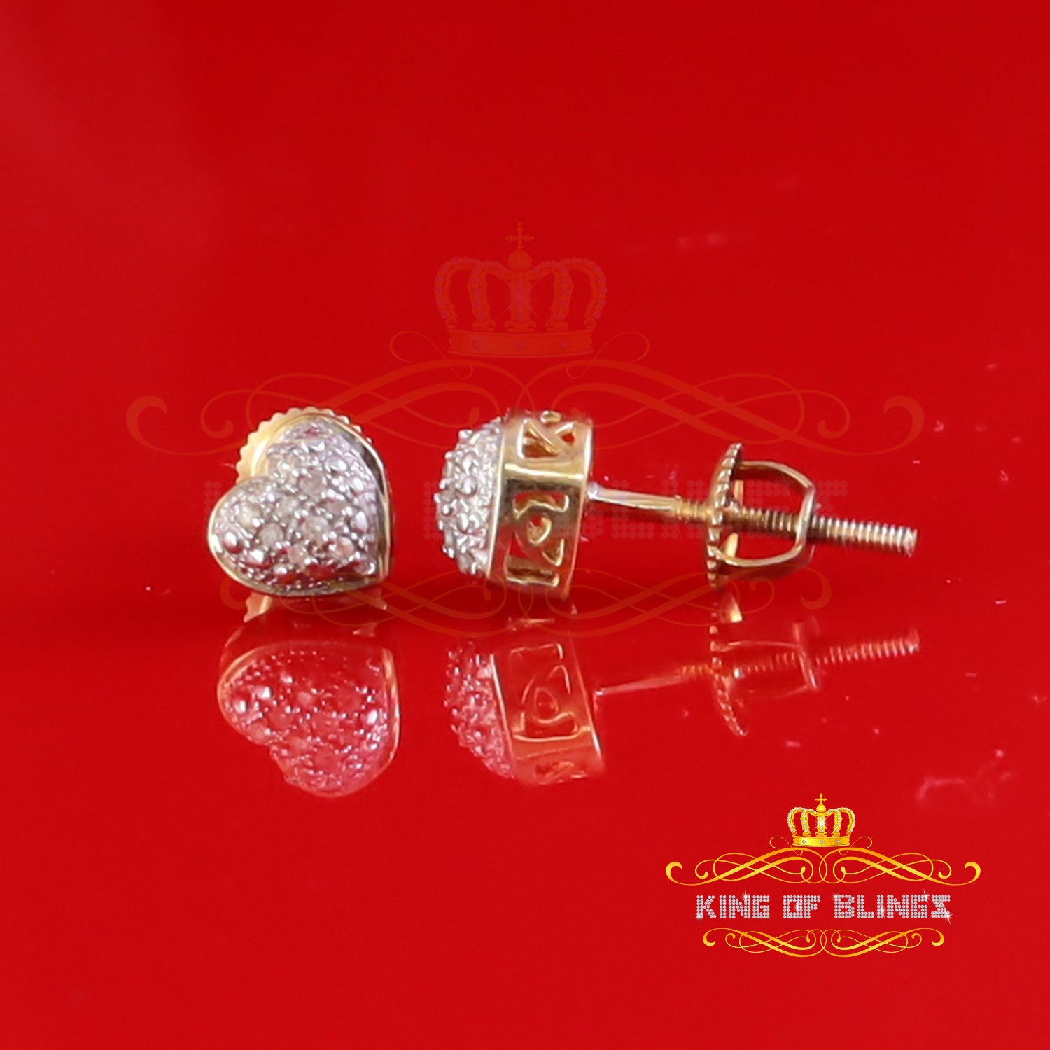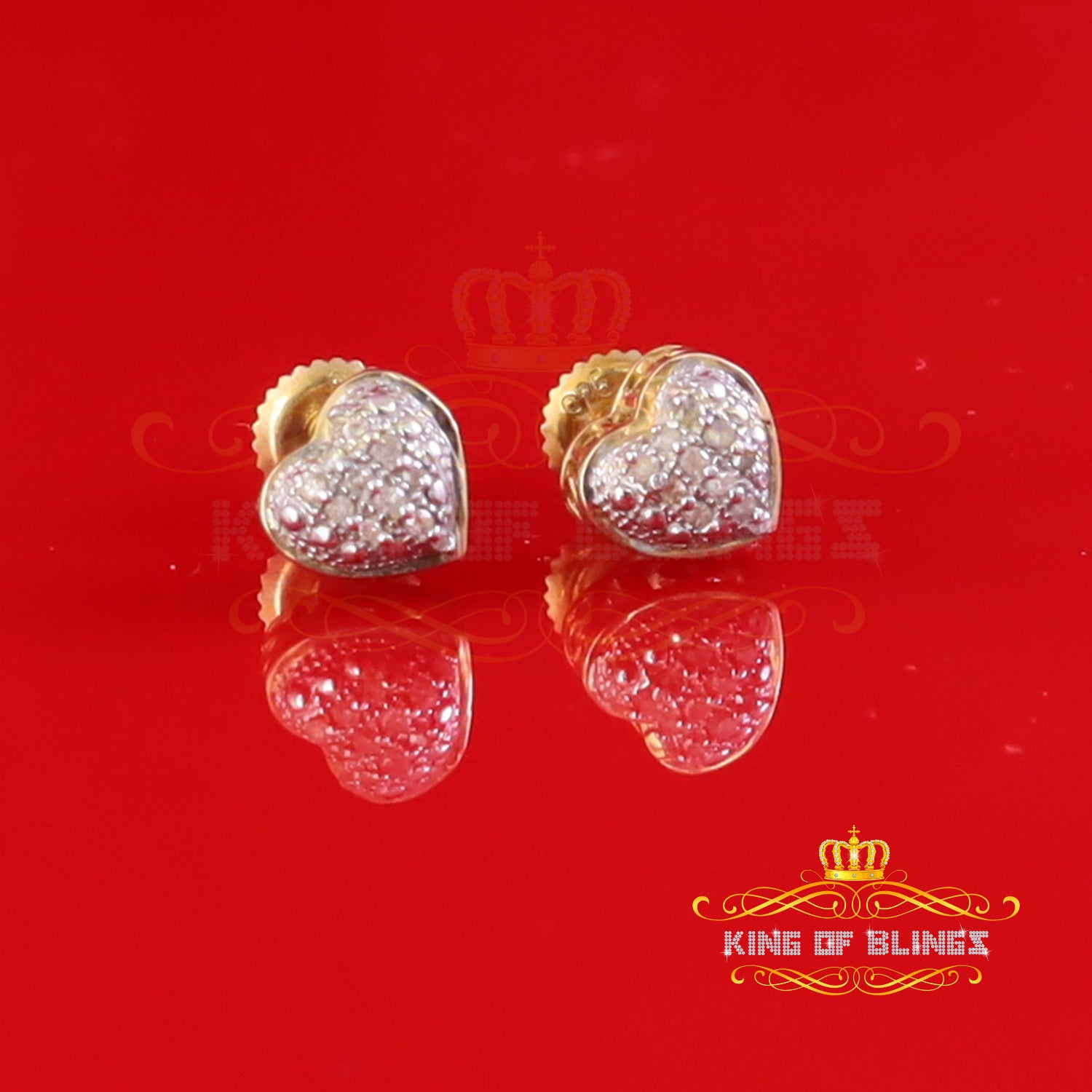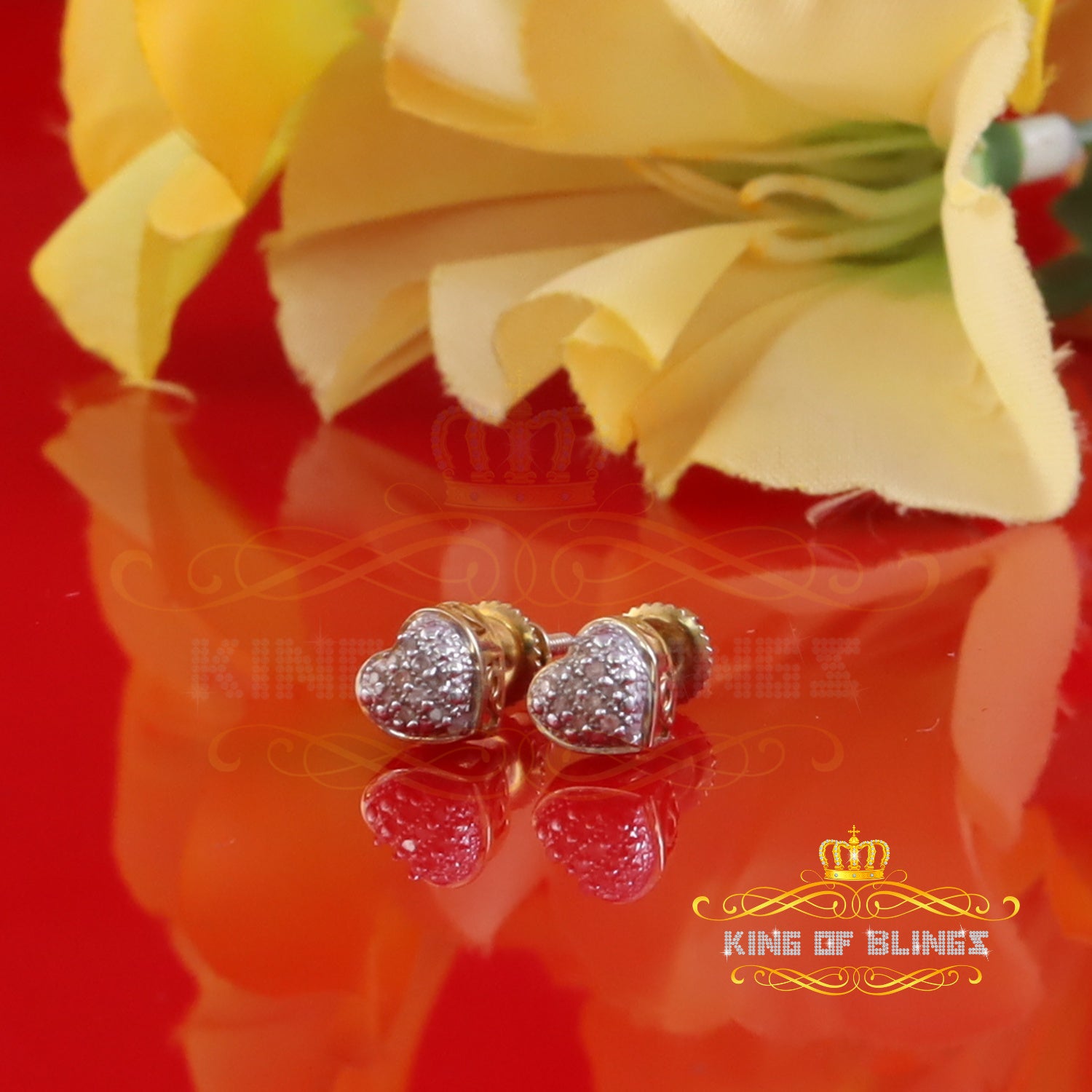 King of Blings-925 Sterling Yellow 0.05cts Silver Heart Shape Stud Earrings Diamond For Women's