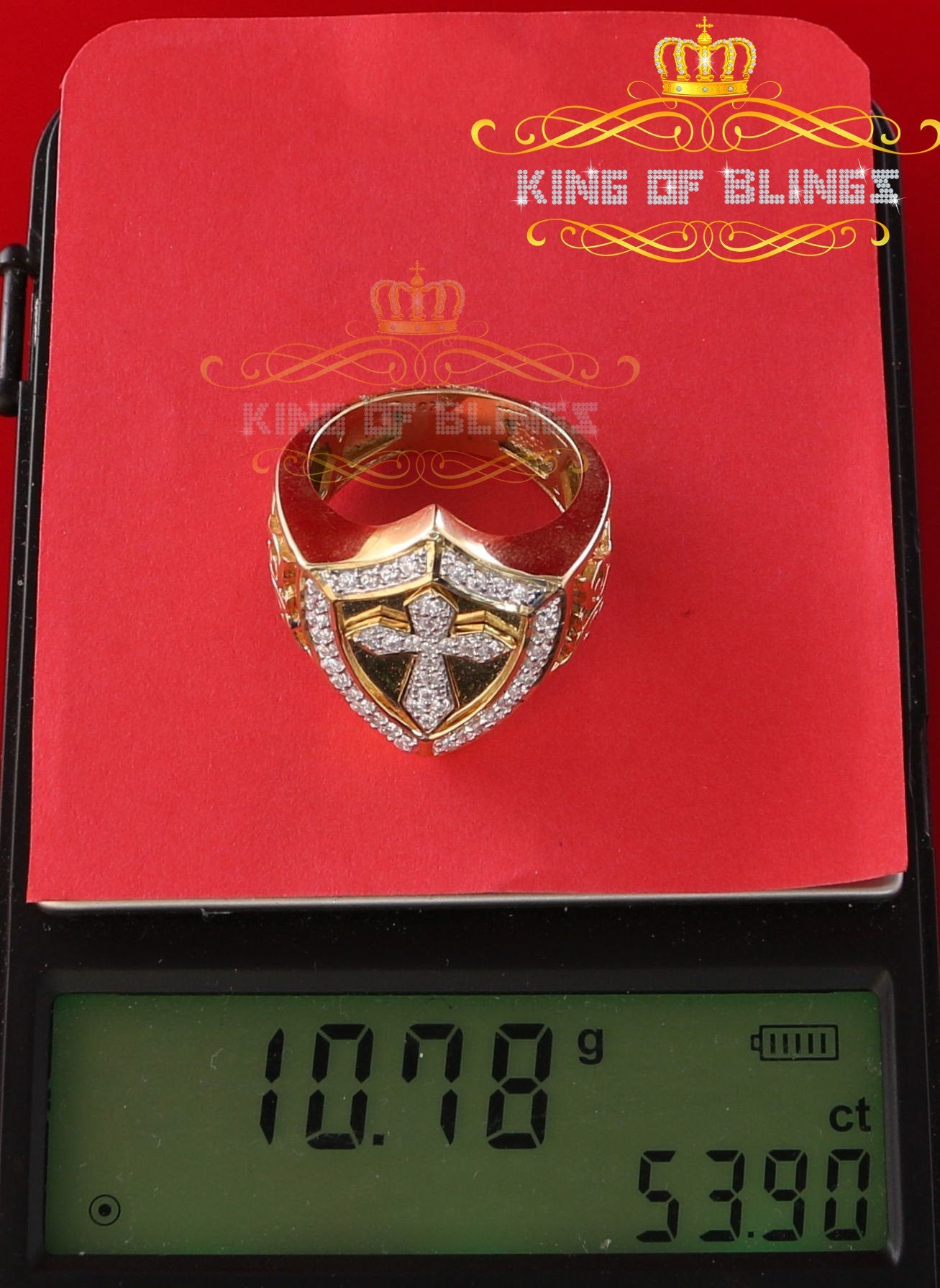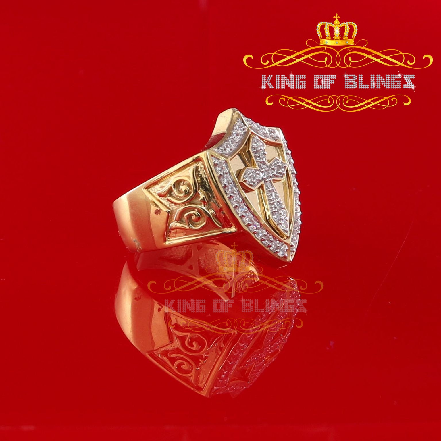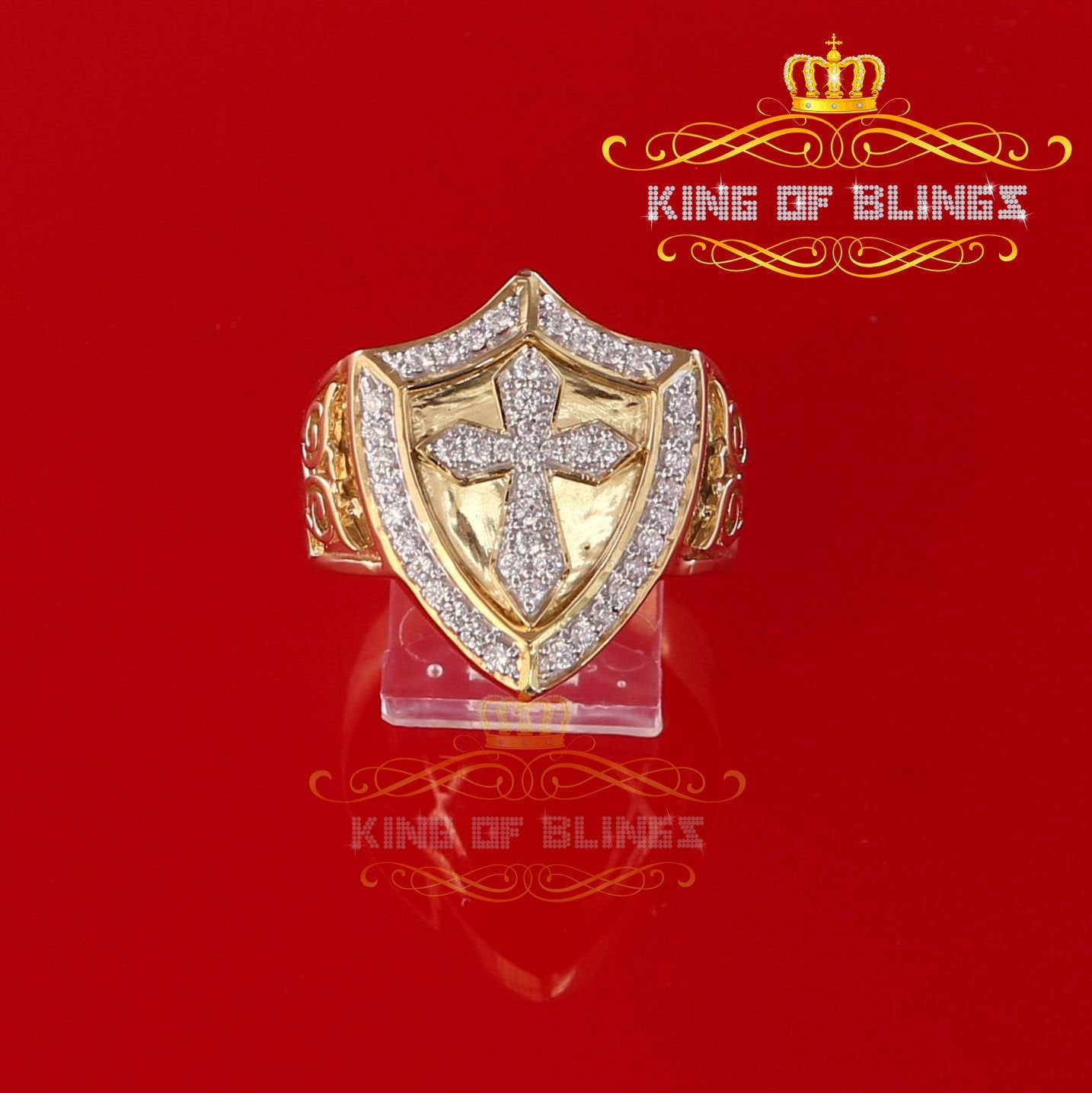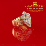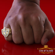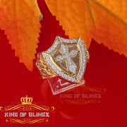 King Of Bling's 925 Sterling Yellow 0.92ct Cubic Zirconia Silver Shield Cross Men's Ring Size 9