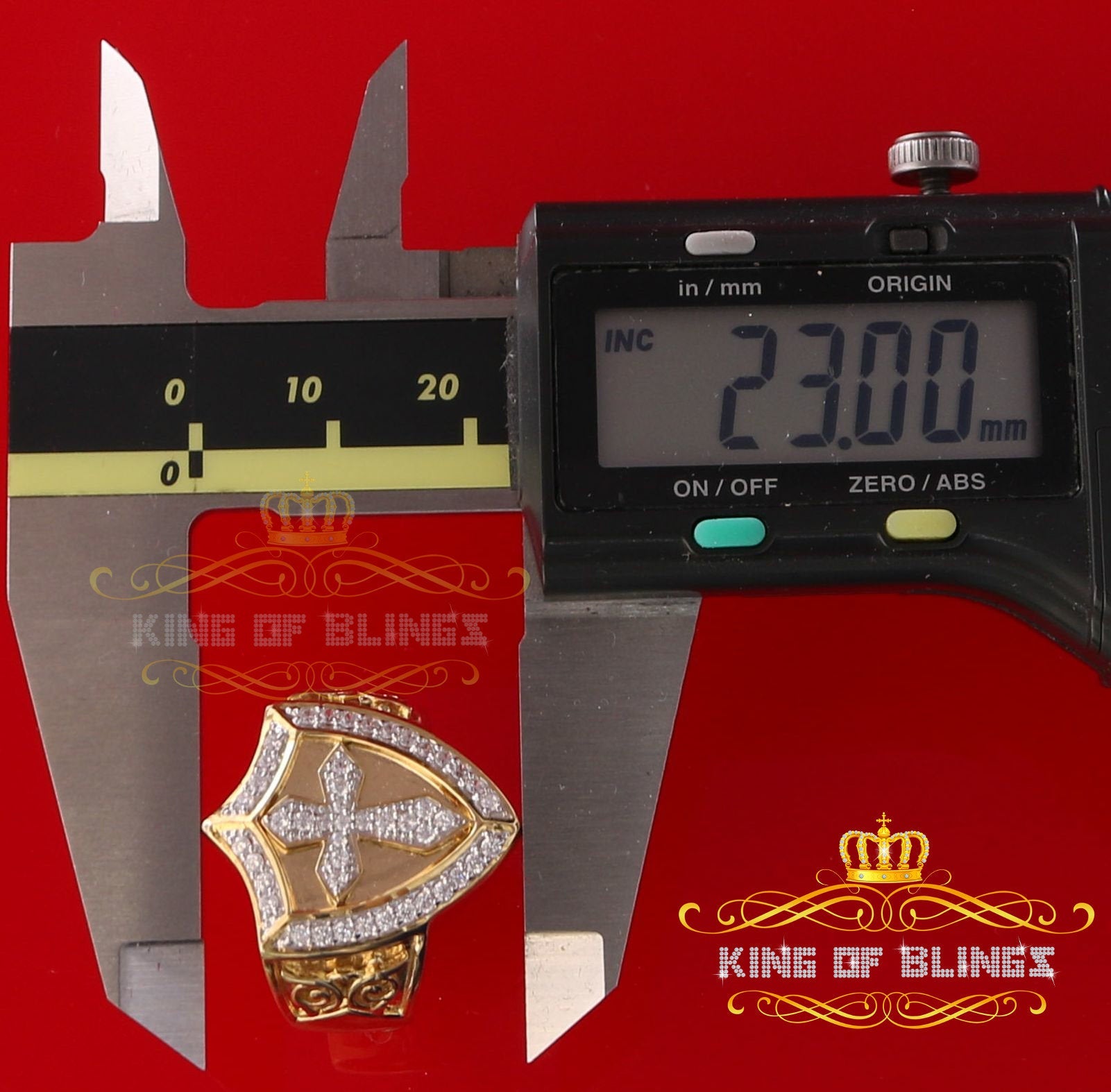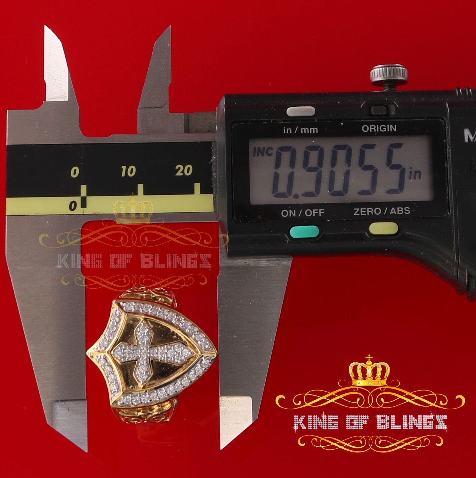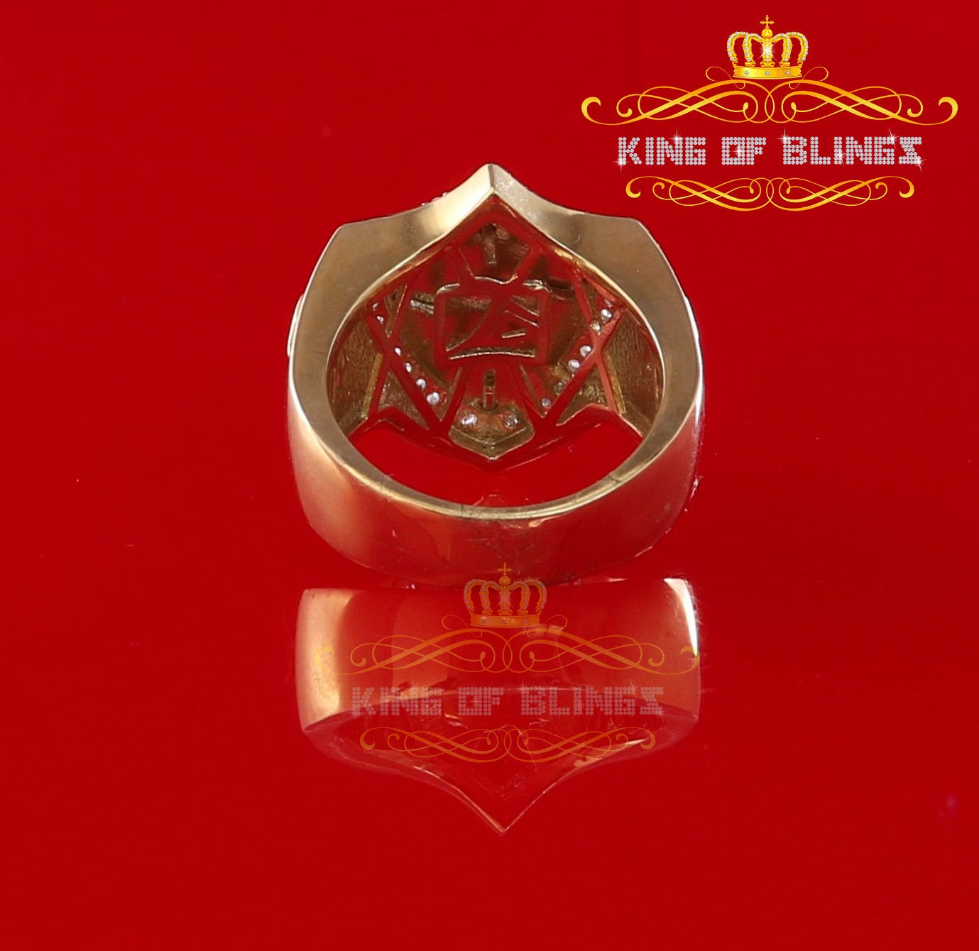 King Of Bling's 925 Sterling Yellow 0.92ct Cubic Zirconia Silver Shield Cross Men's Ring Size 9