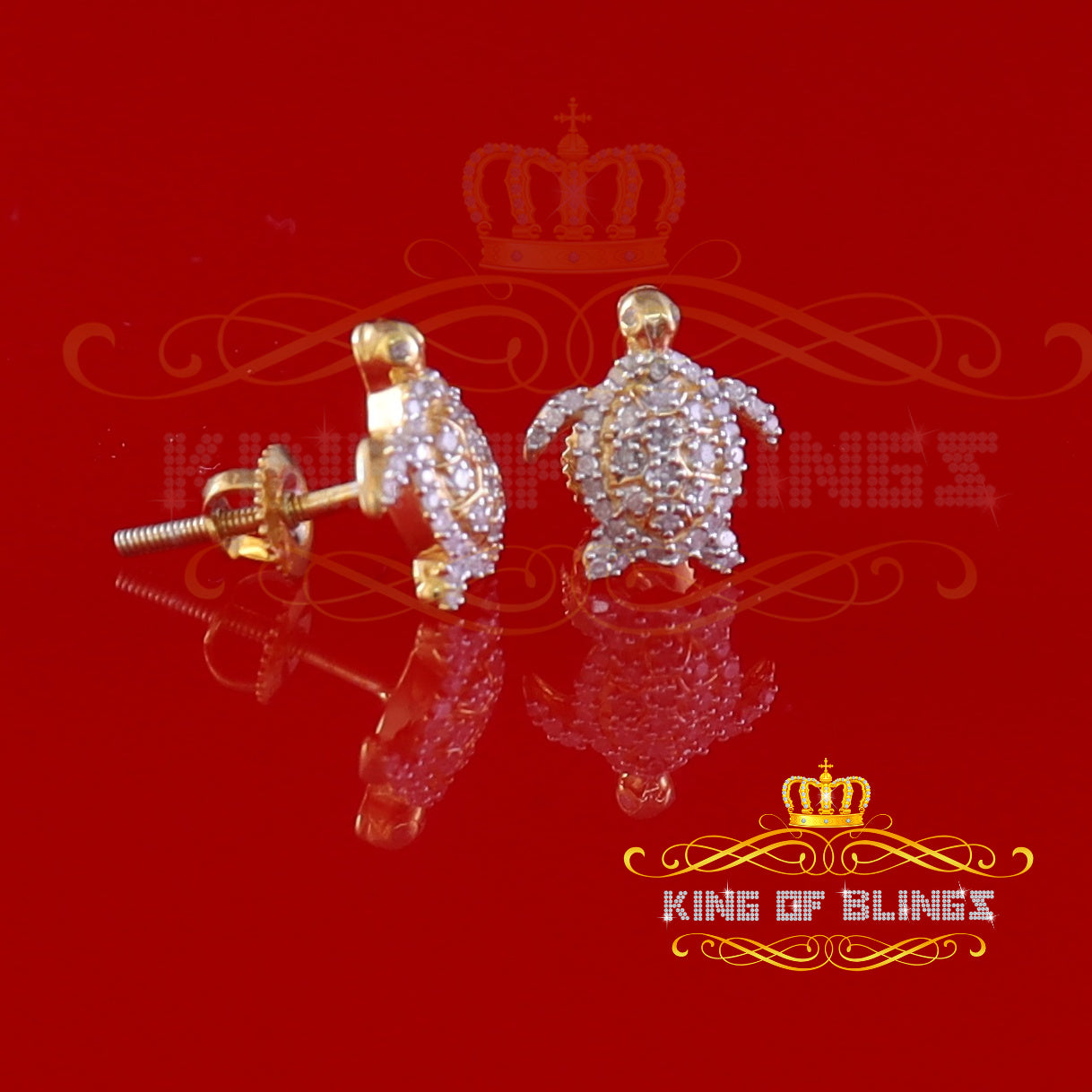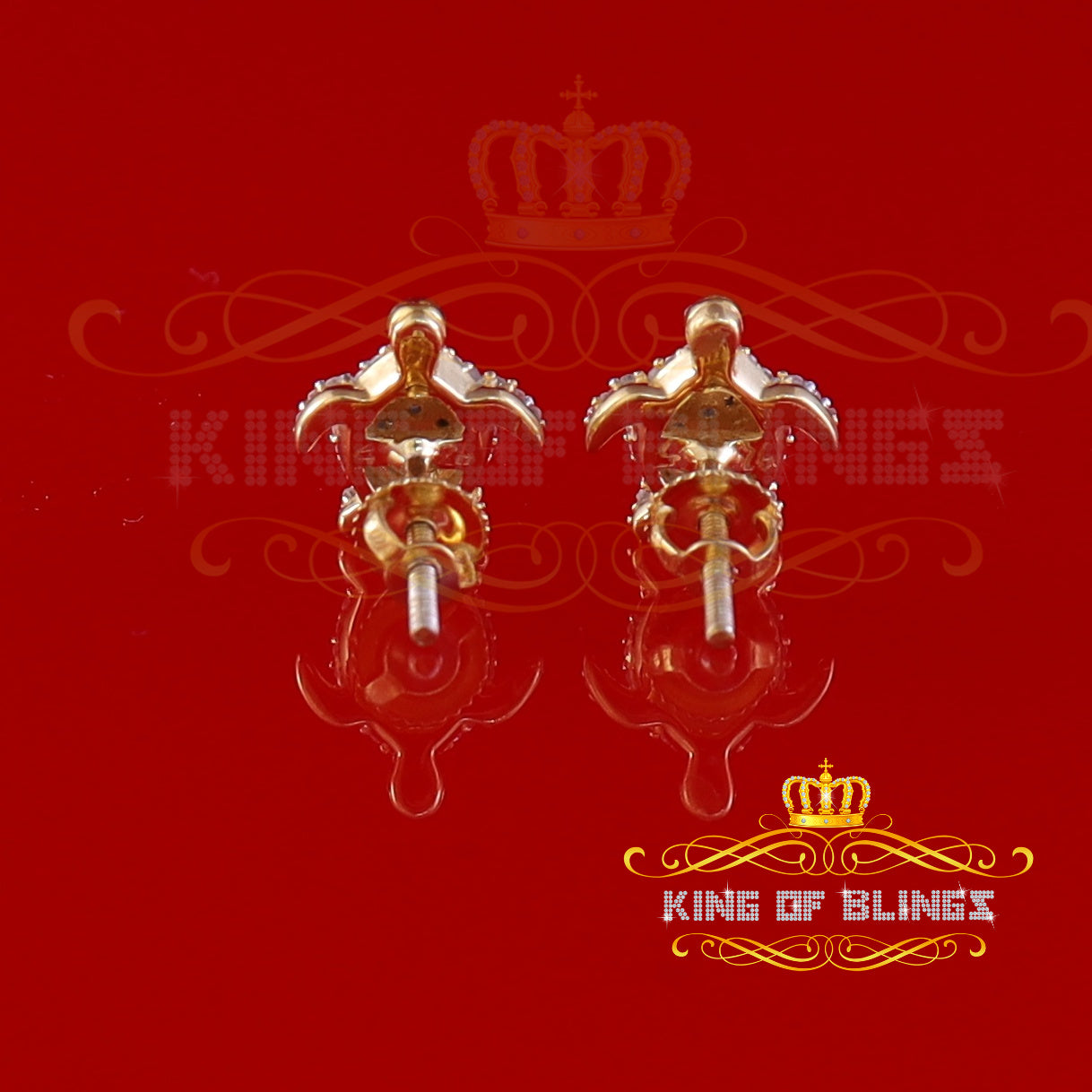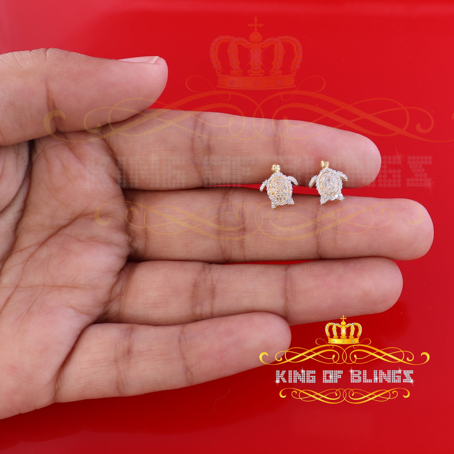 King of Blings-925 Sterling Yellow Silver 0.25ct Diamond Turtle Earrings For Women's & Men's