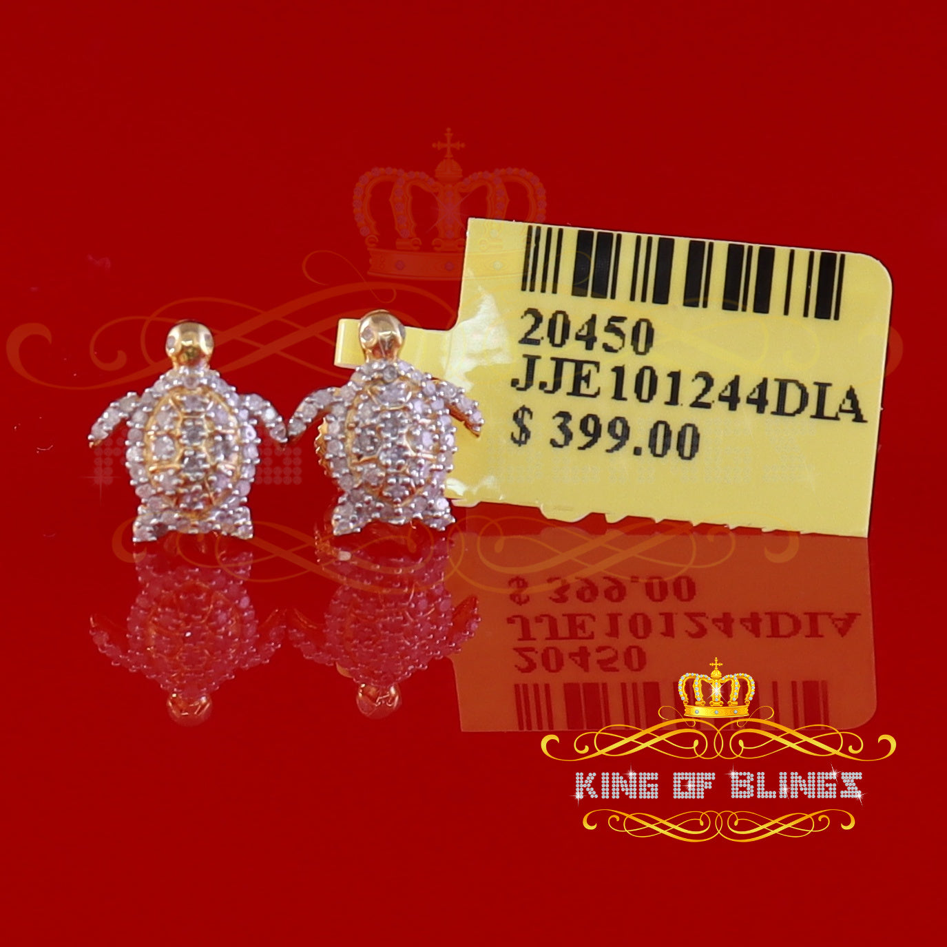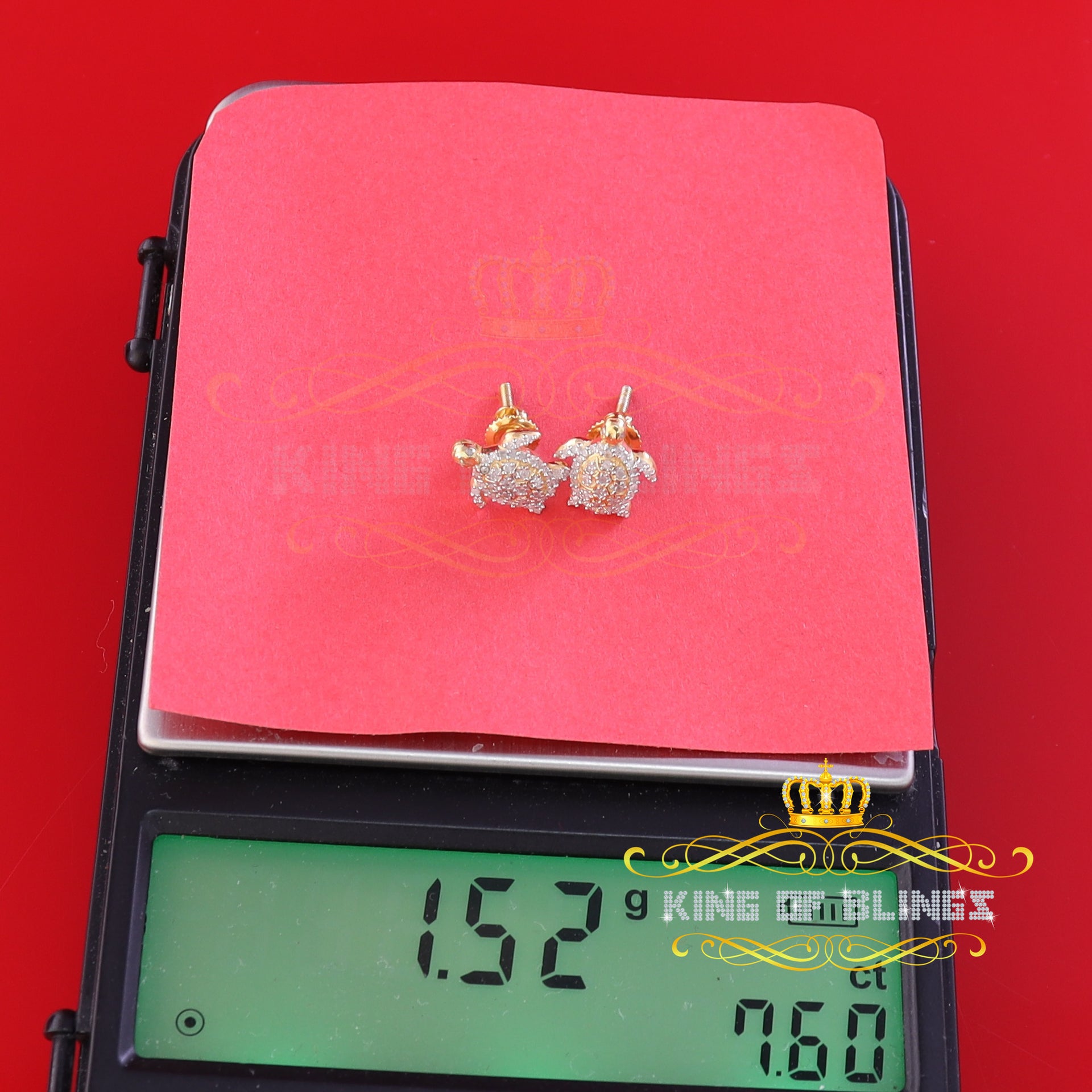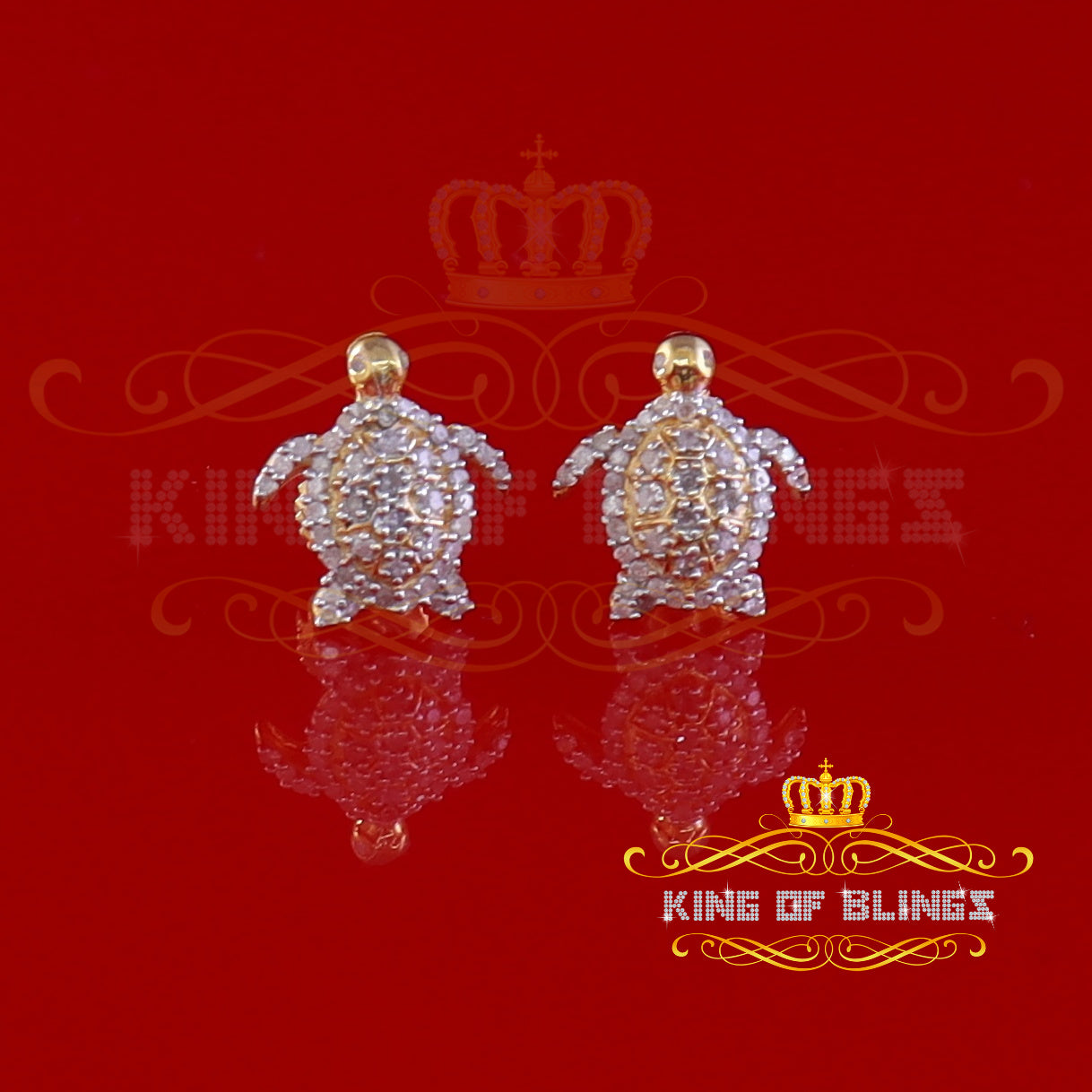 King of Blings-925 Sterling Yellow Silver 0.25ct Diamond Turtle Earrings For Women's & Men's