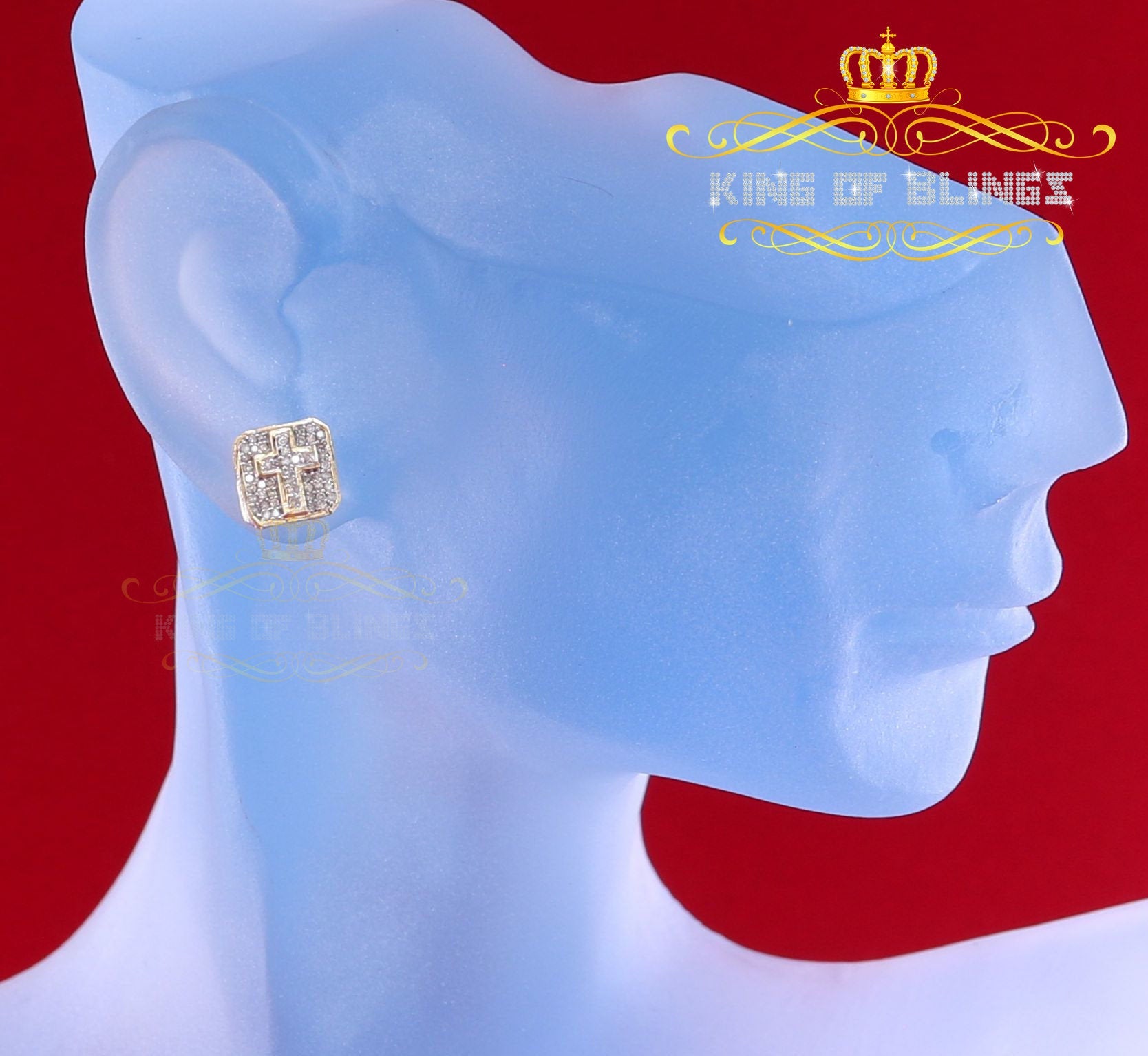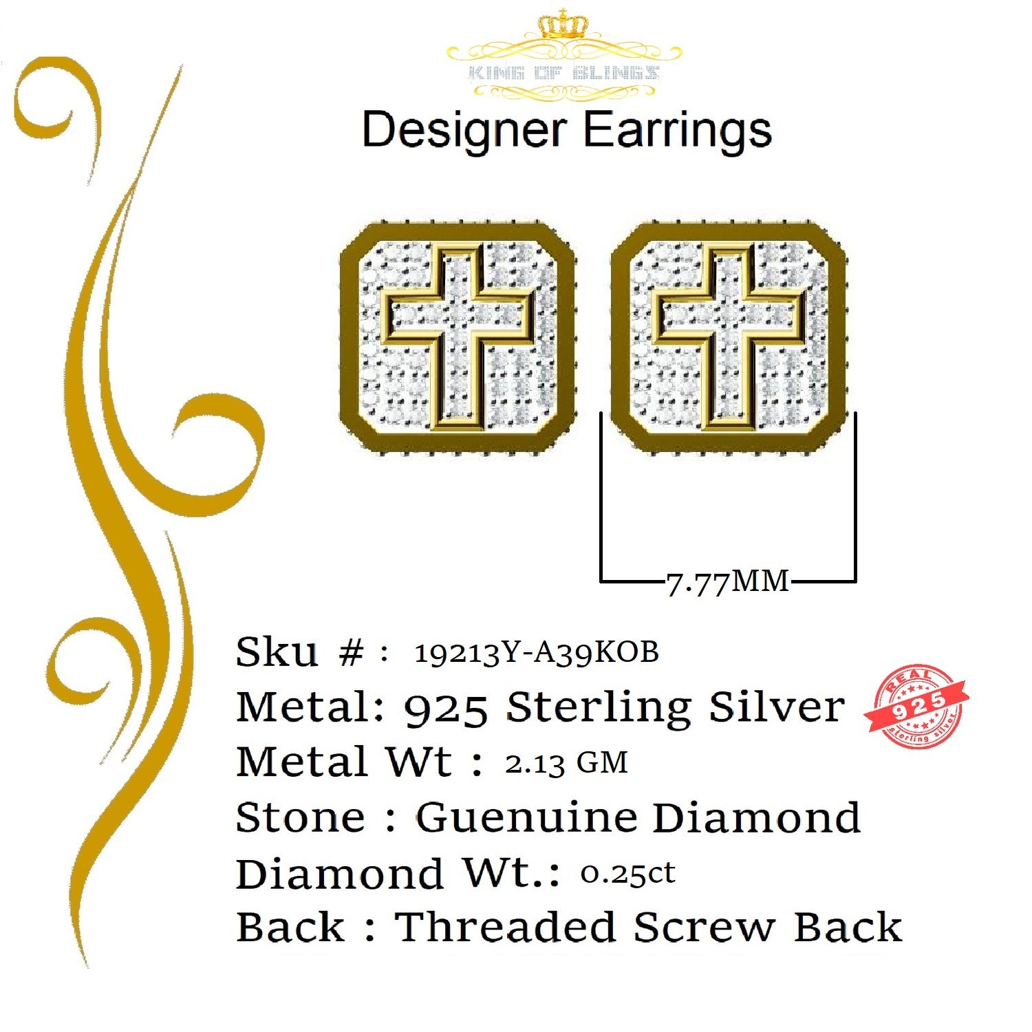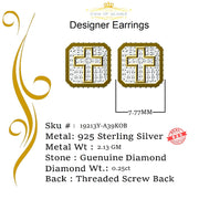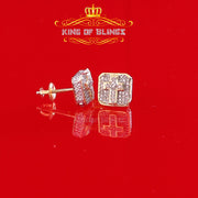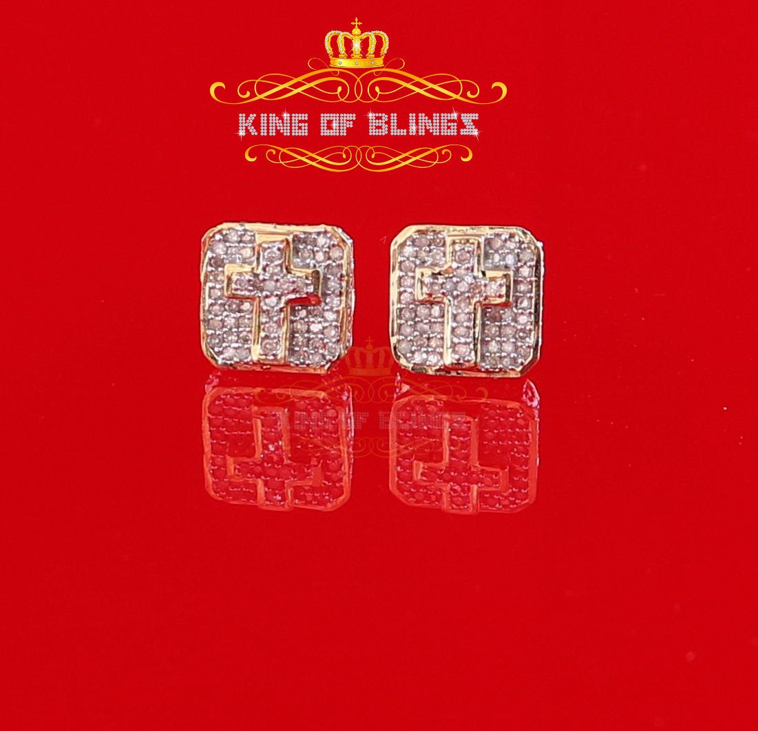 King of Blings-925 Sterling Yellow Silver 0.25ct Real Diamond Women's & Men 's Square Earrings