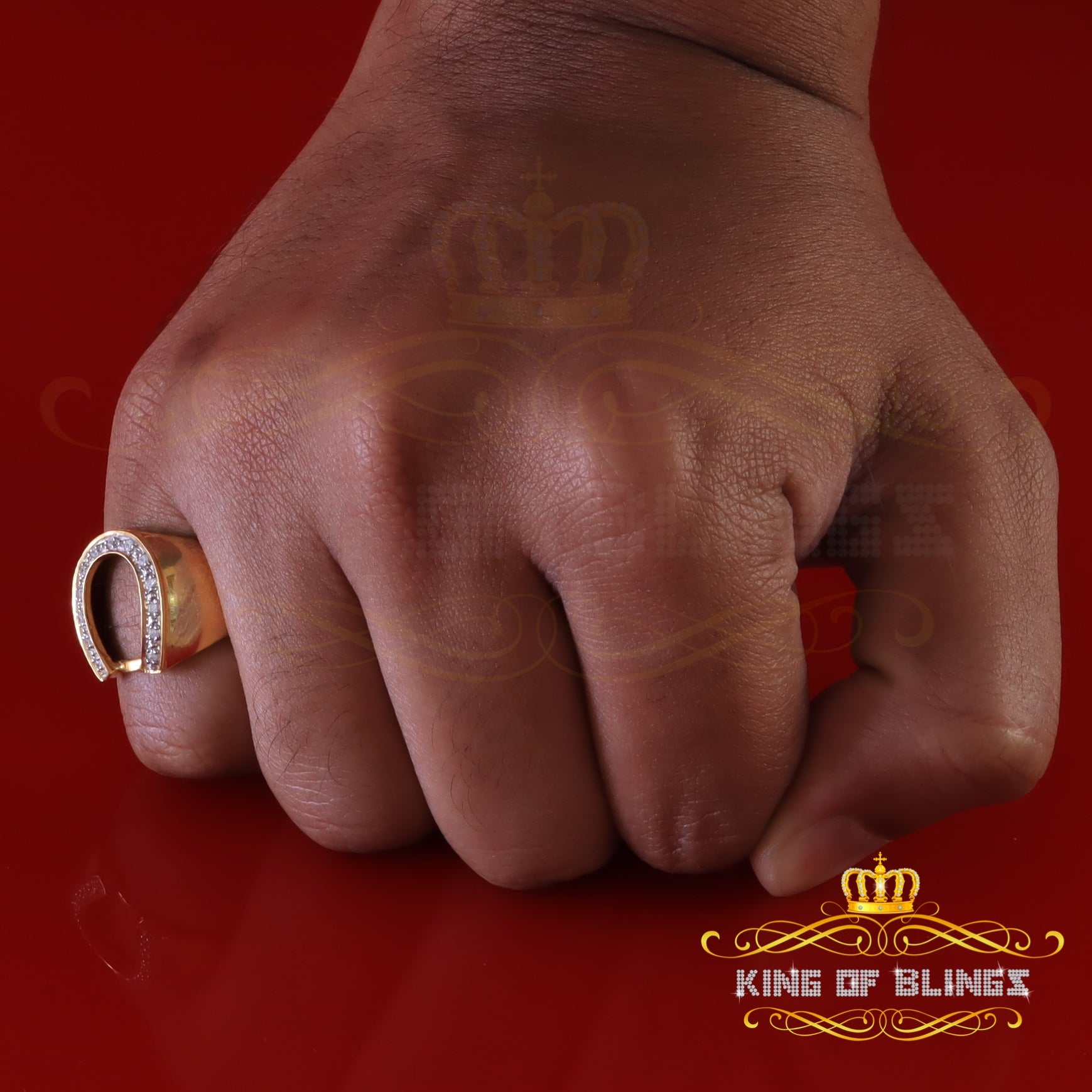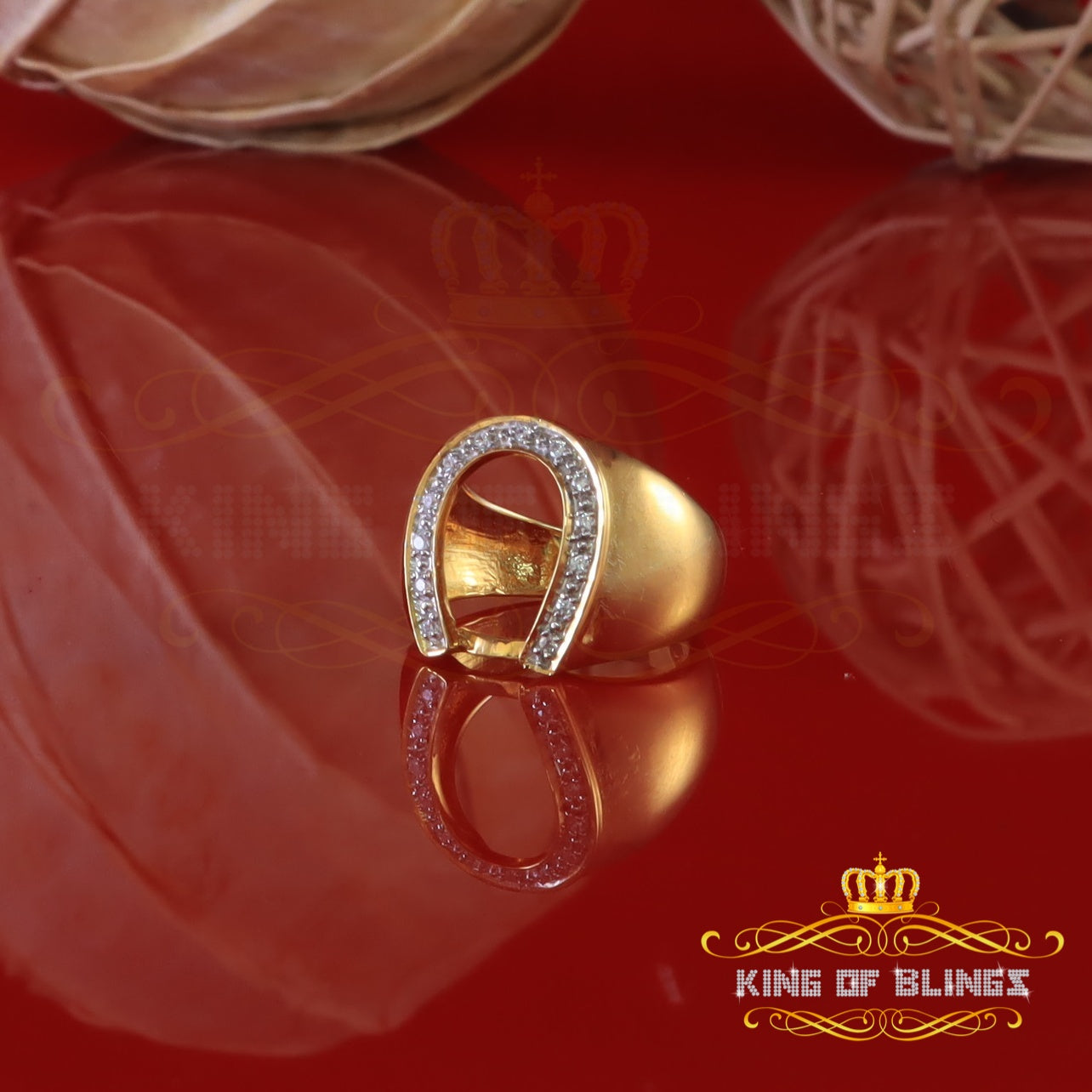 King Of Bling's 925 Yellow Silver Cubic Zirconia 0.26ct Horseshoe Men's/Women's Ring SZ 7.5