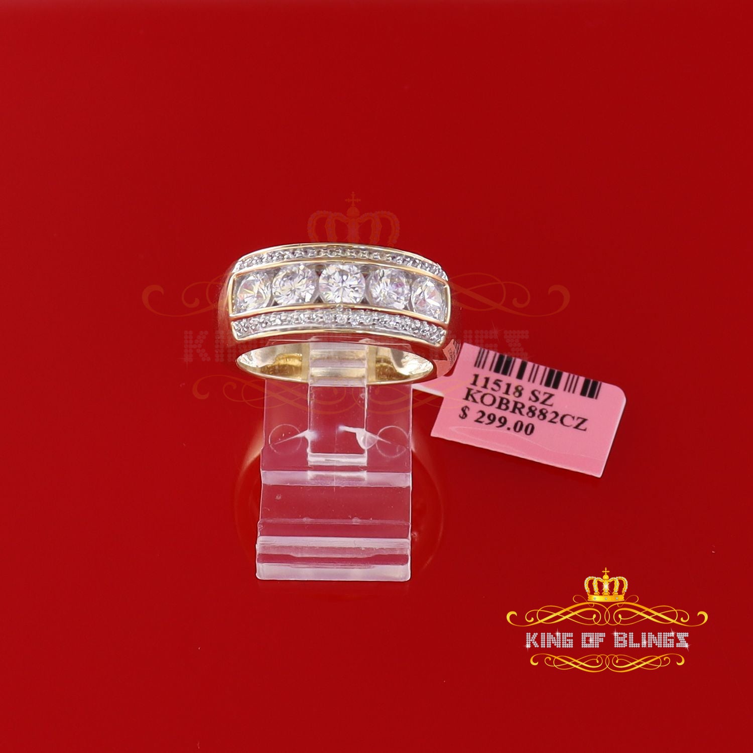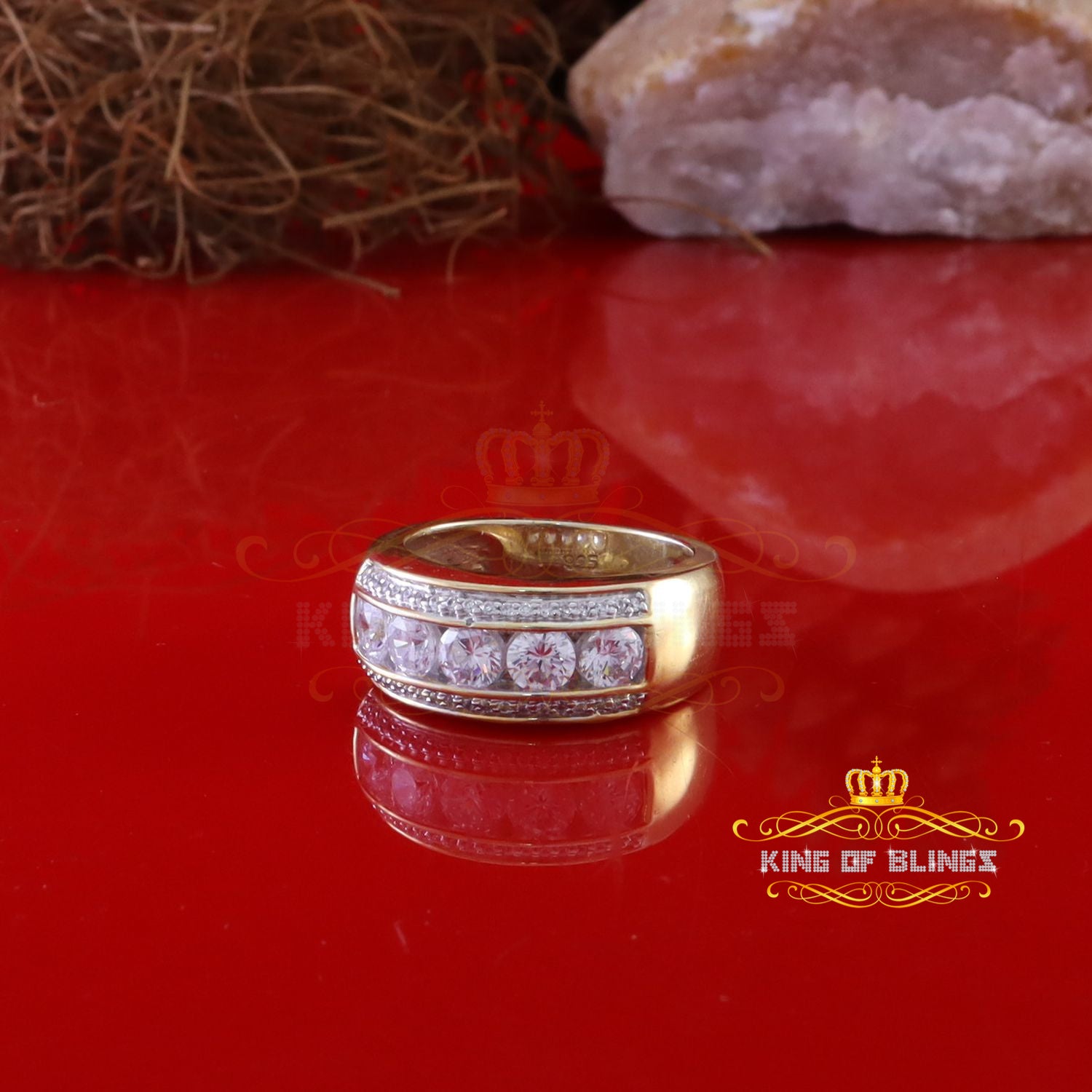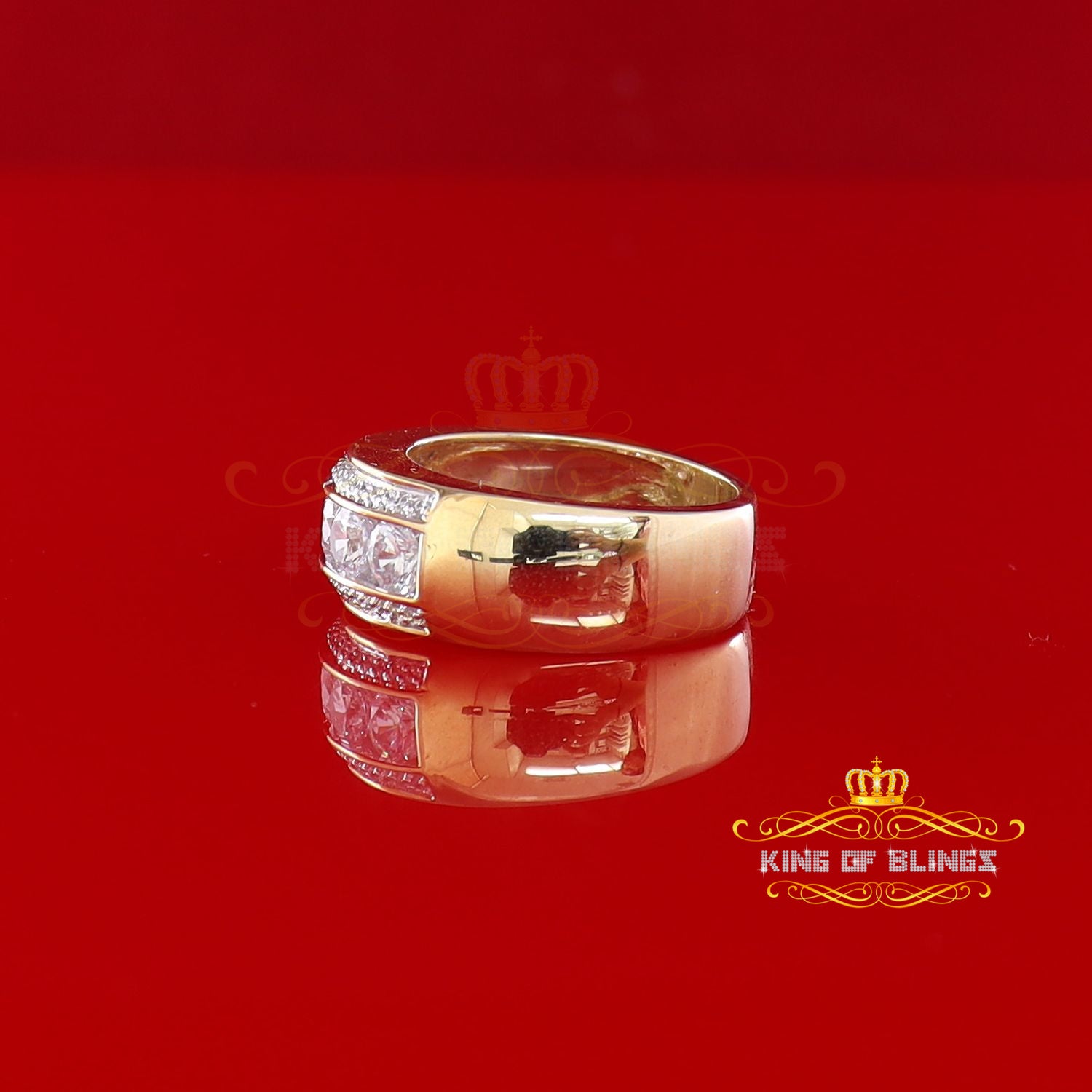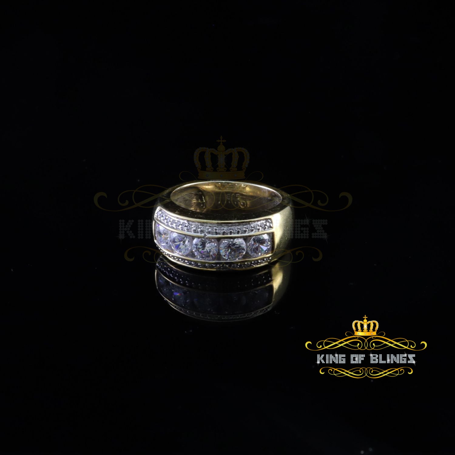 King Of Bling's 925 Sterling Yellow Silver Round 4.00CT CZ Men Ring Gifts For Him Ring Size 10
