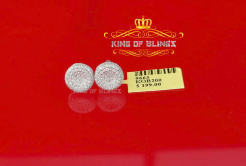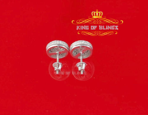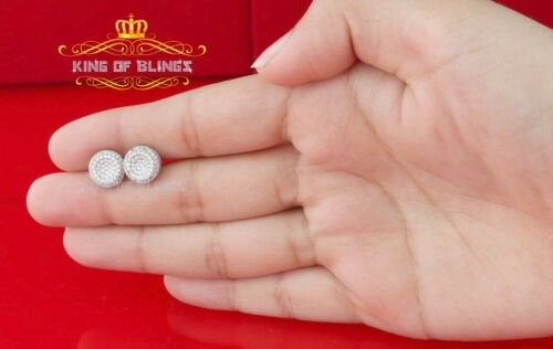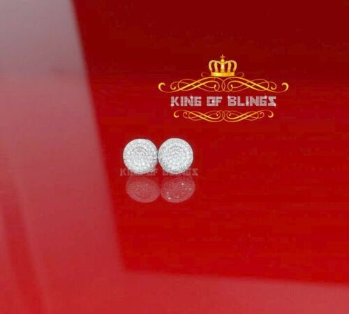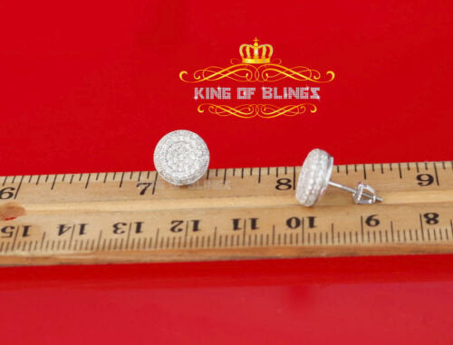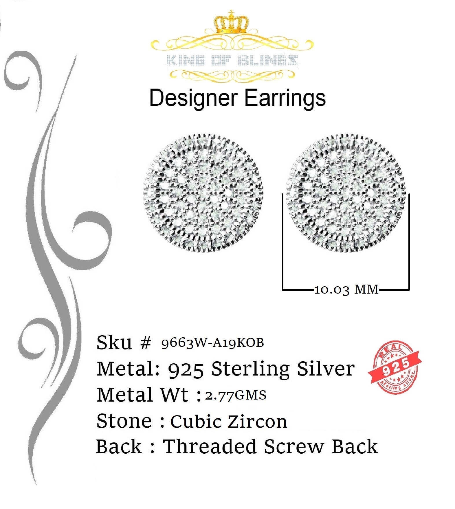 King of Bling's 925 White 1.74ct Silver Aretes Para Hombre Women's Cubic Zirconia Round Earrings