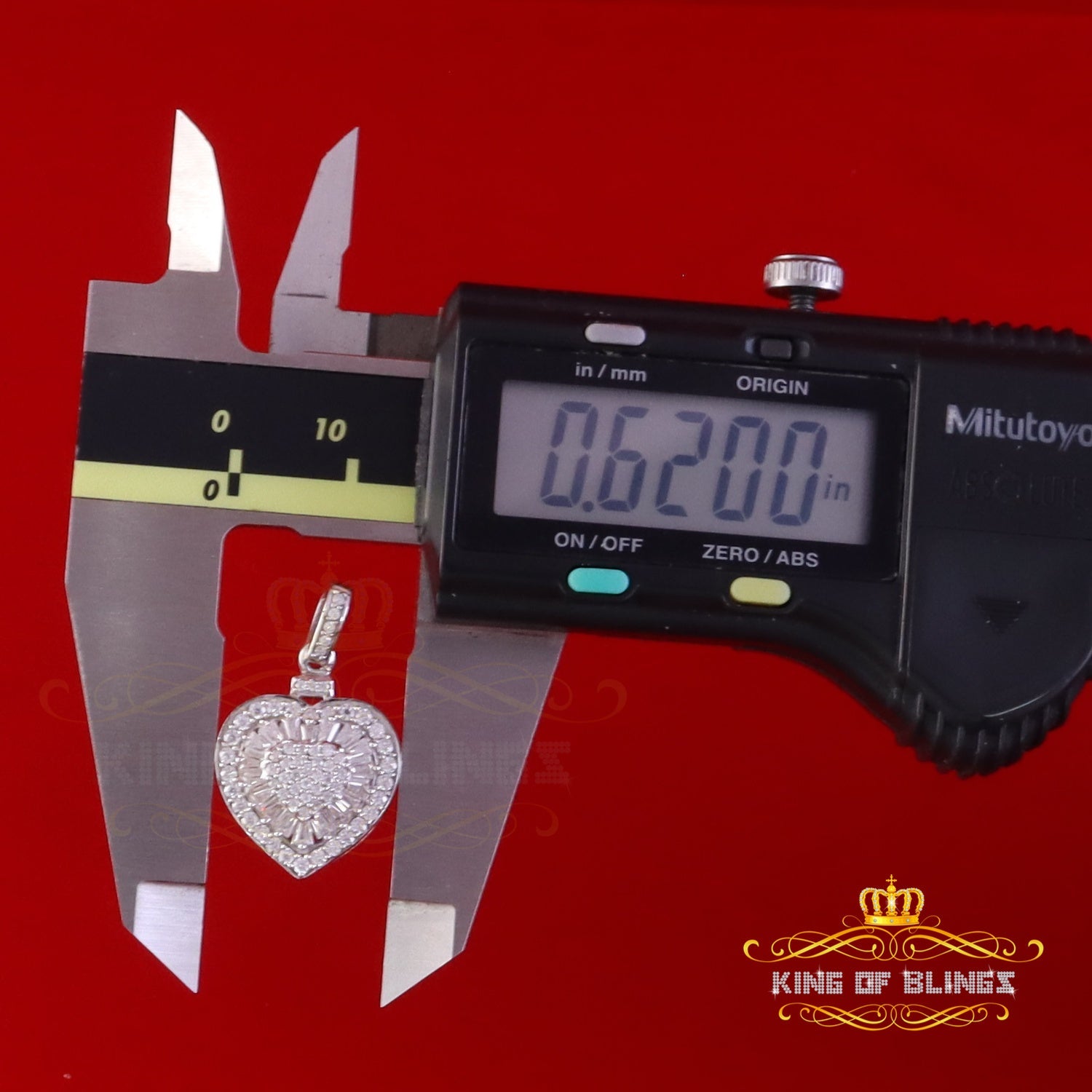 King Of Bling's Heart Pendant for Women's 925 White Silver 1.00ct Moissanite Baguette & Round