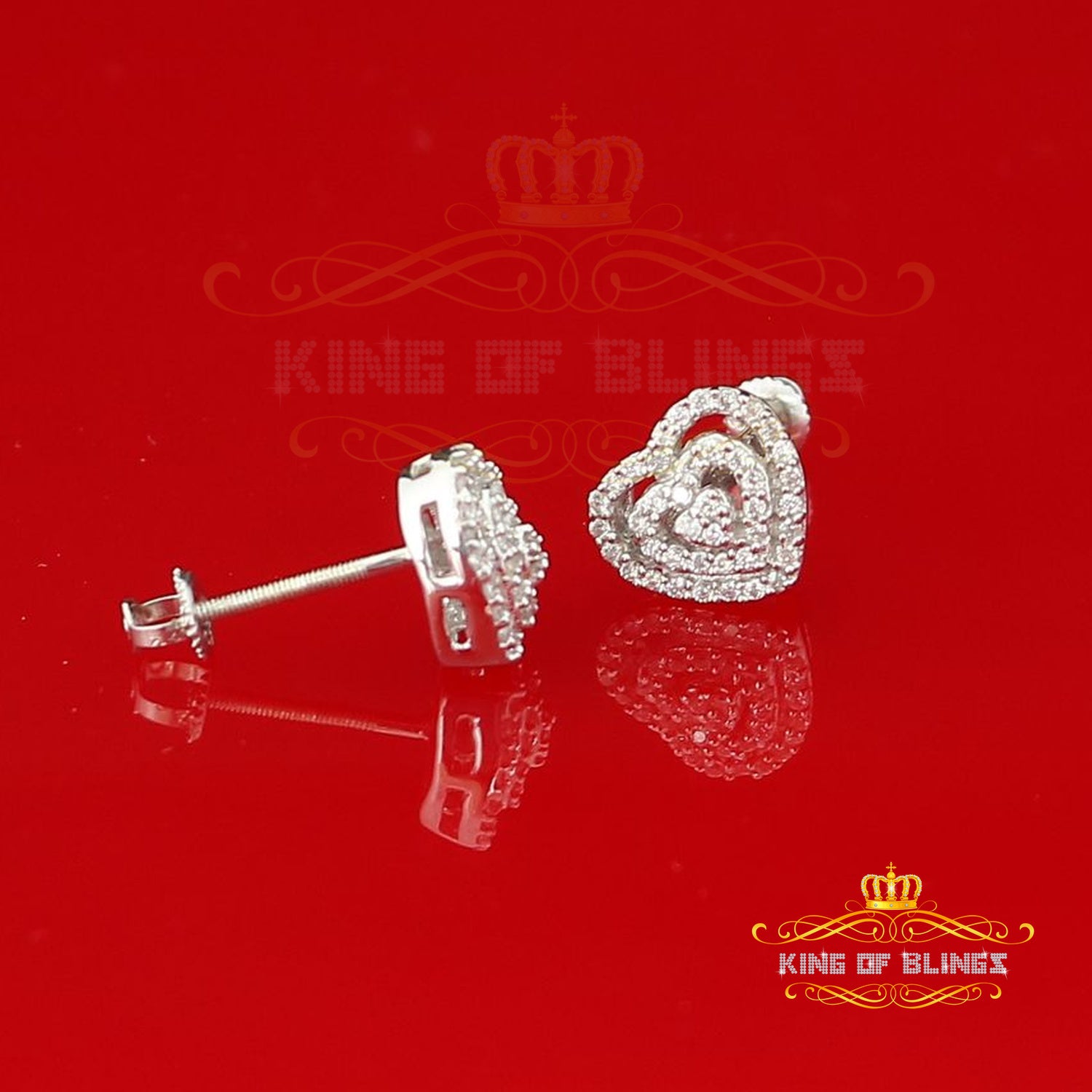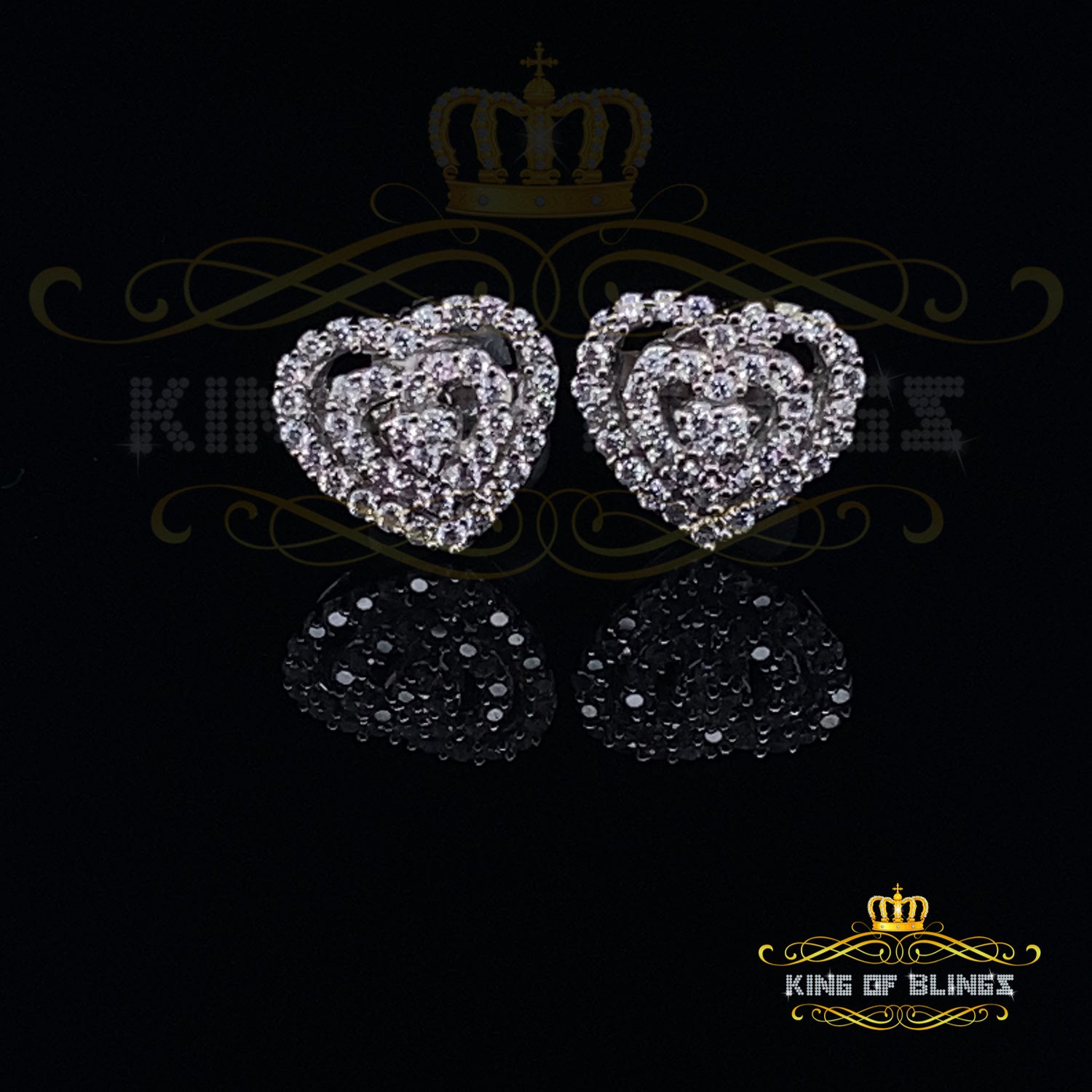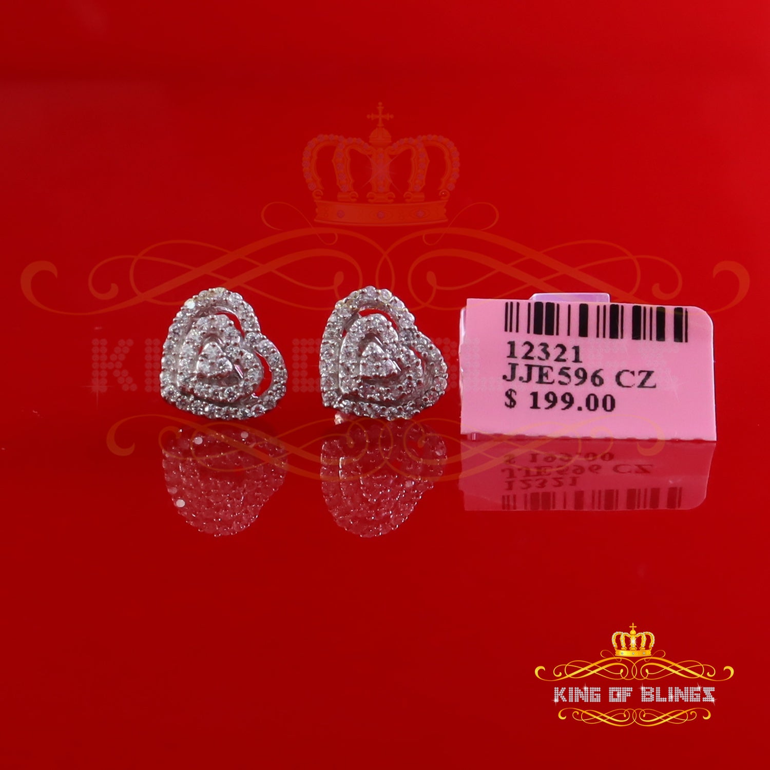 King of Blings- 925 White Silver 1.07ct Cubic Zirconia Women's & Men's Hip Hop Heart Earrings