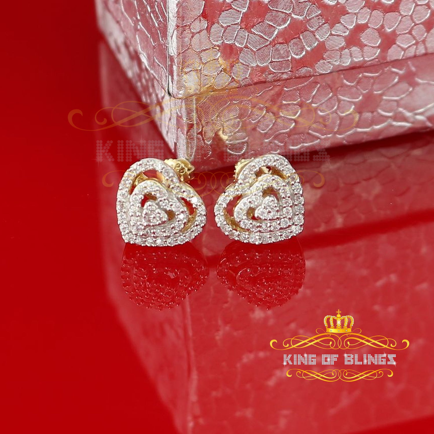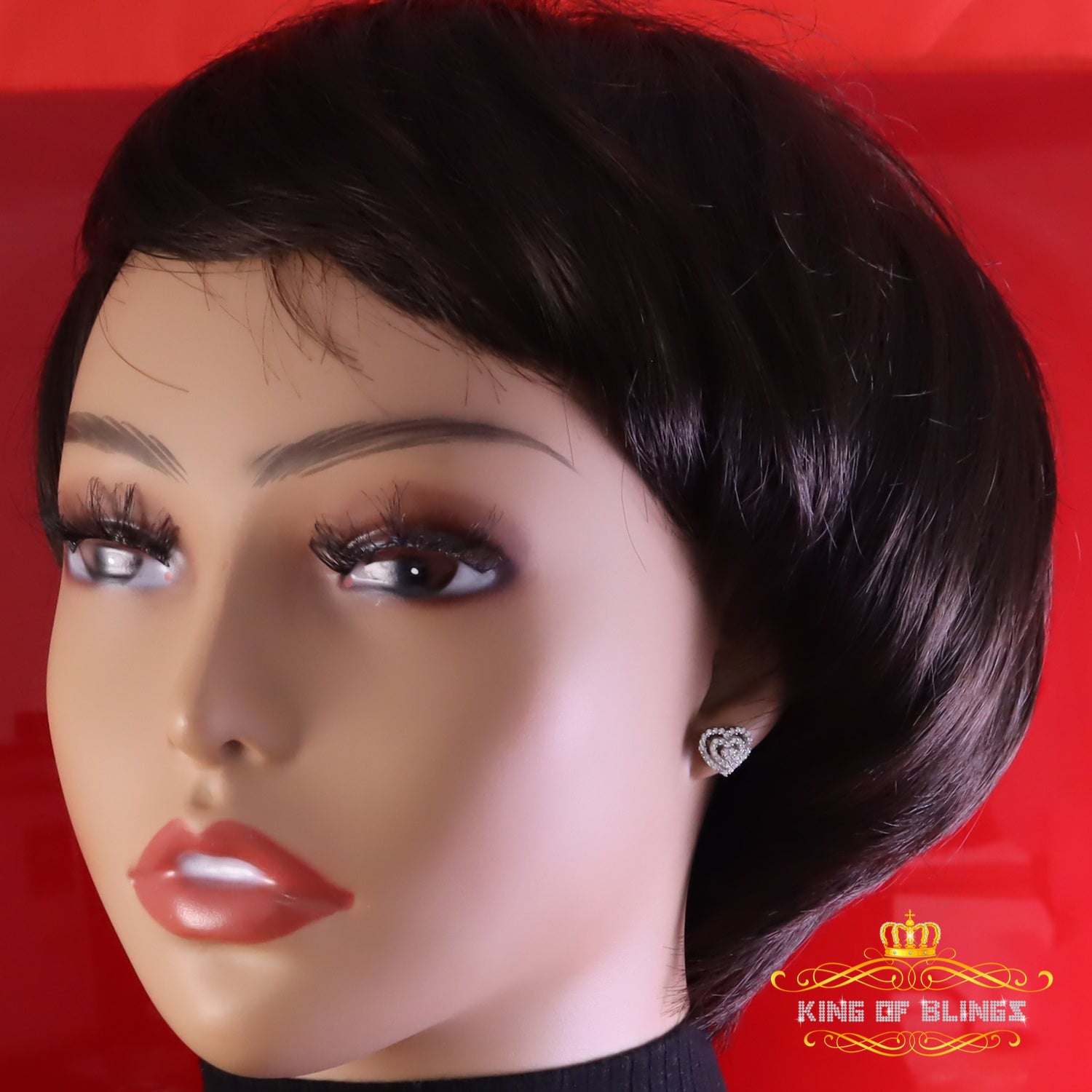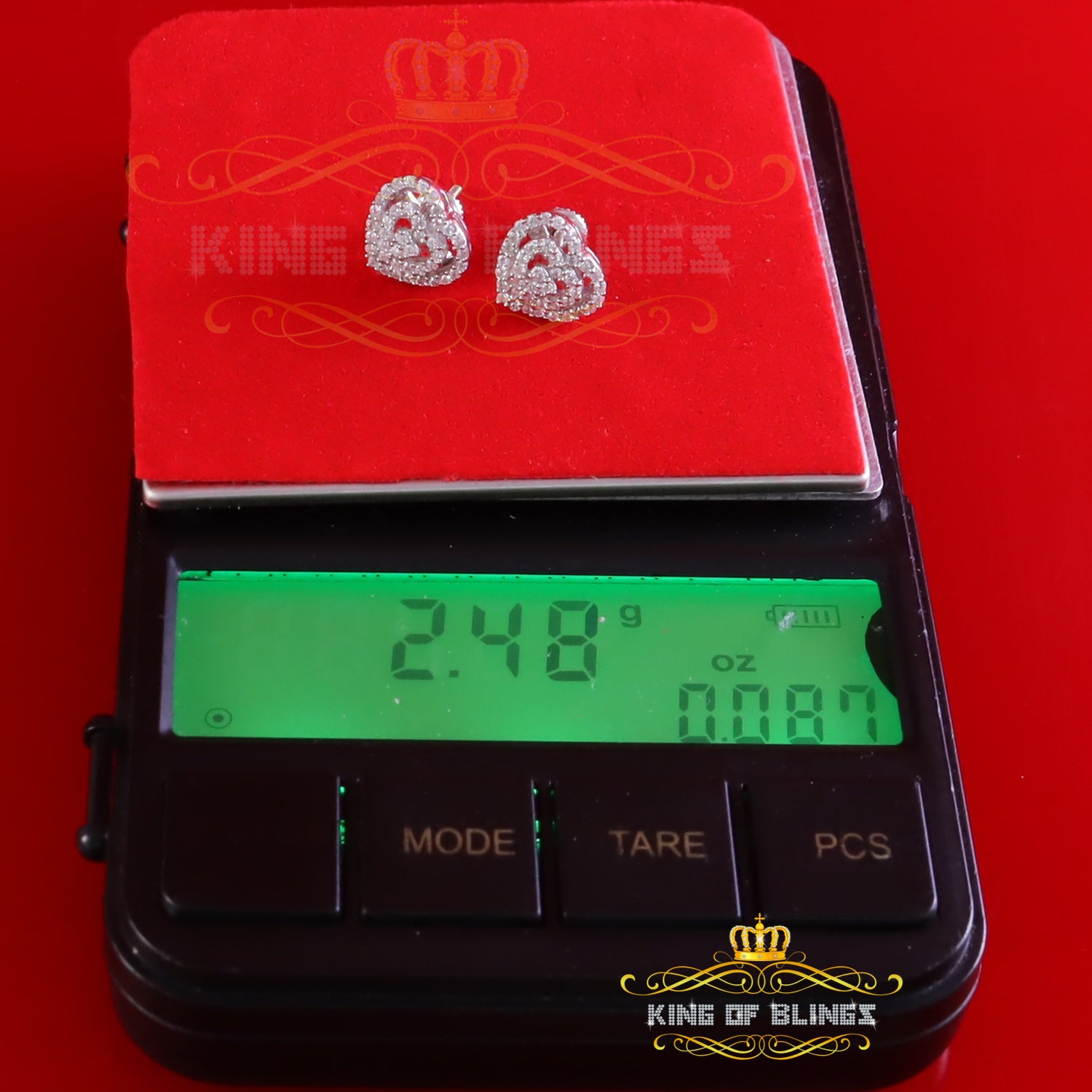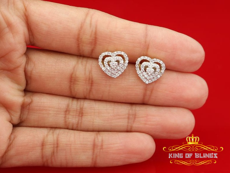 King of Blings- 925 White Silver 1.07ct Cubic Zirconia Women's & Men's Hip Hop Heart Earrings