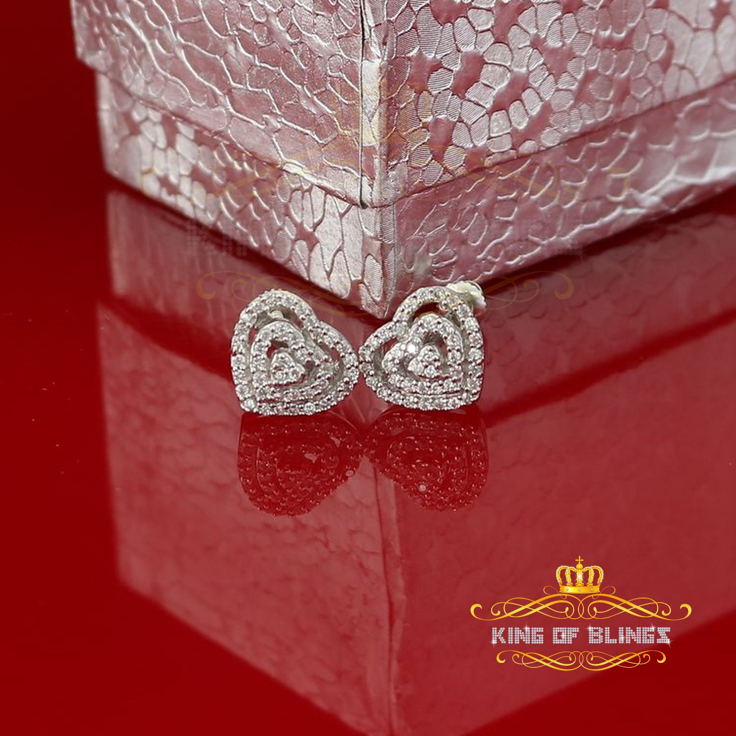 King of Bling's 925 White Silver 1.07ct Cubic Zirconia Women's & Men's Hip Hop Heart Earrings