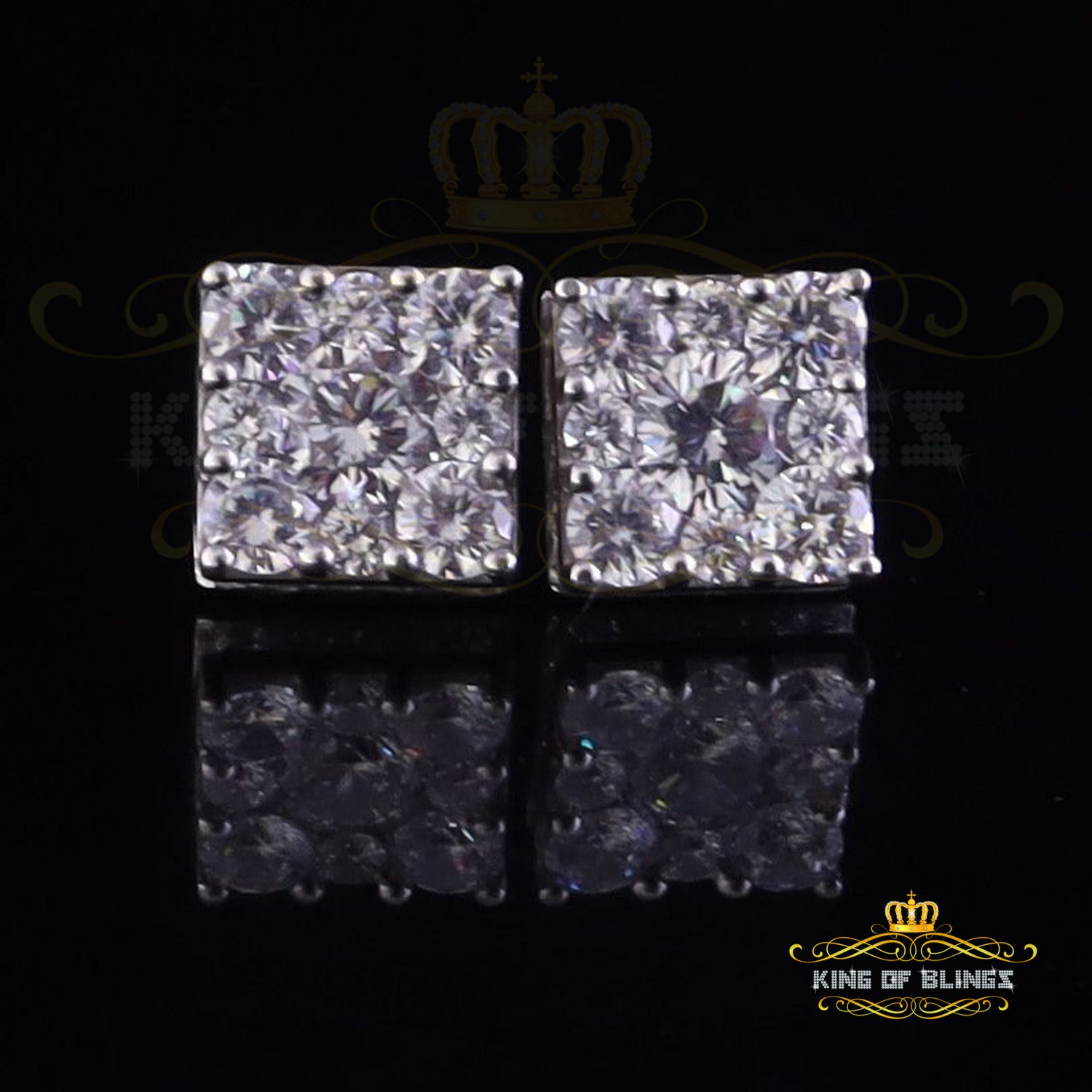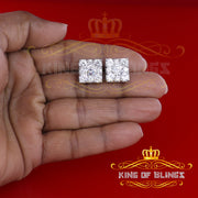 King of Blings- 925 White Silver 11.28ct Cubic Zirconia Women's & Men's Hip Hop Square Earrings