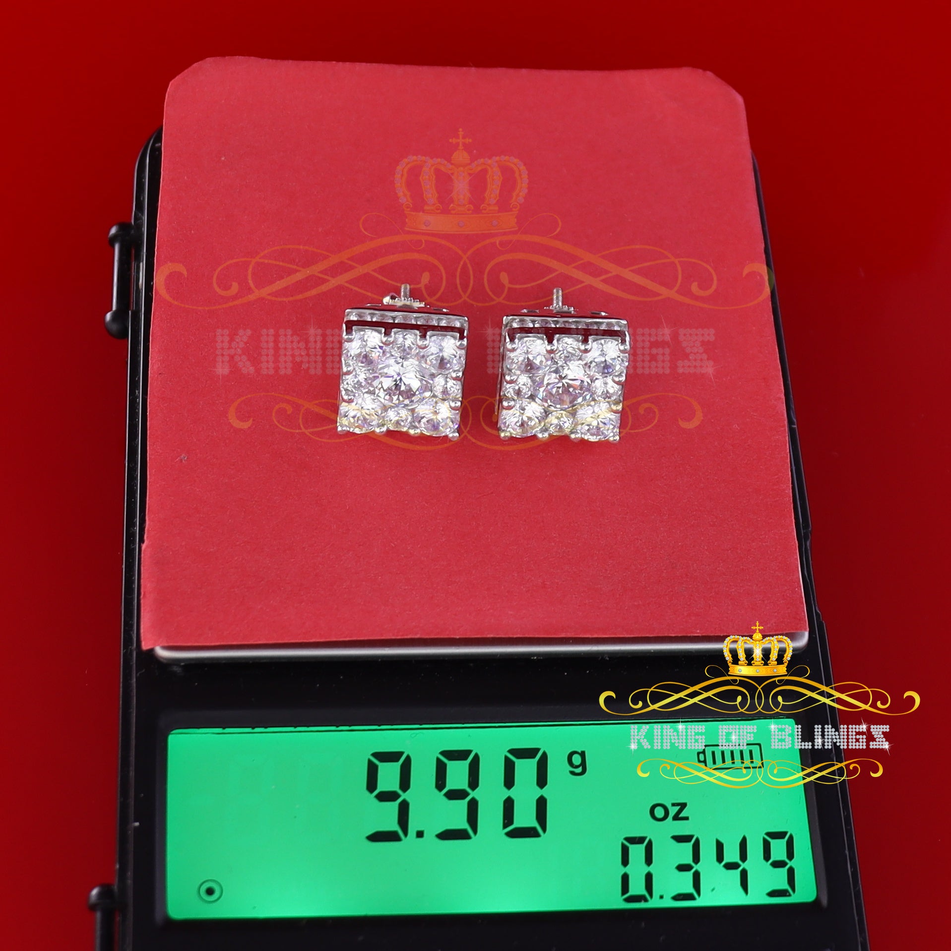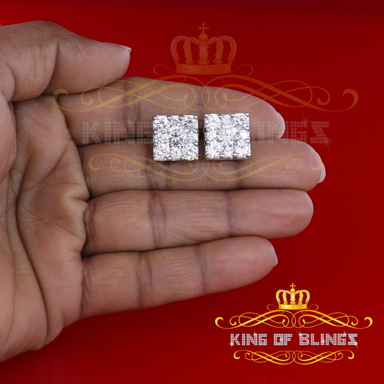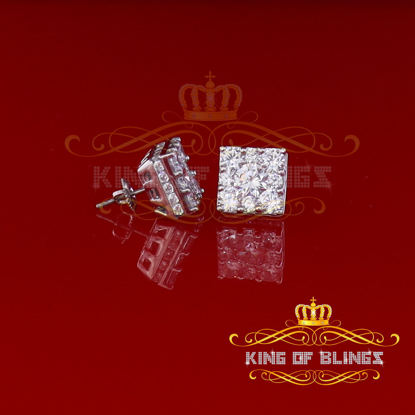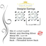 Step into a world of King Of Blings dazzling elegance and allure with our exclusive collection of Square Cubic Zirconia stud earrings featuring secure screw backs. Indulge yourself or surprise a loved one with these exquisite earrings crafted from premium 925 sterling silver with metal weight 9.90gm and CZ weight of 11.2ct, boasting a lustrous White metal color that exudes sophistication. The real show-stoppers, however, are the meticulously chosen AAA Grade and 'D' Color Cubic Zircon stones. Radiating luxury and brilliance, these stones are carefully graded for clarity and color, ensuring a mesmerizing sparkle that rivals even the most precious diamonds.