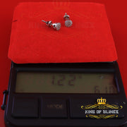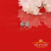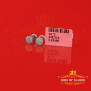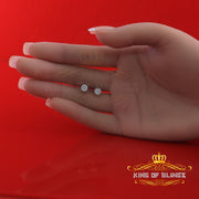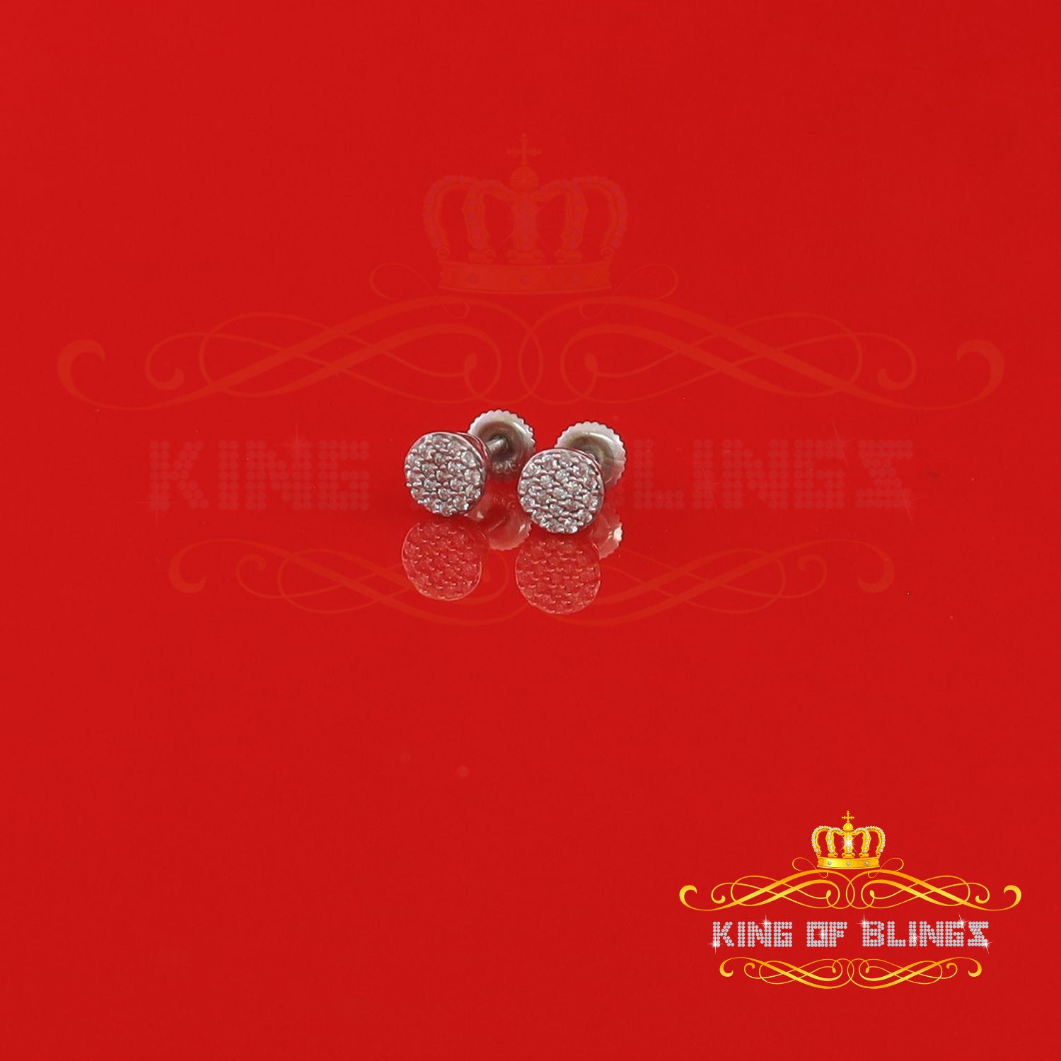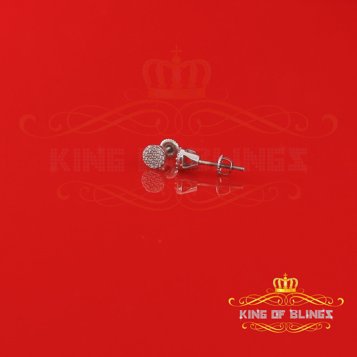 King of Bling's 925 White Silver Aretes Para Hombre 0.30ct Cubic Zirconia Women's Round Earrings